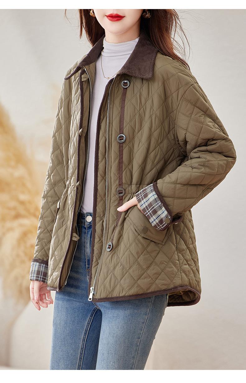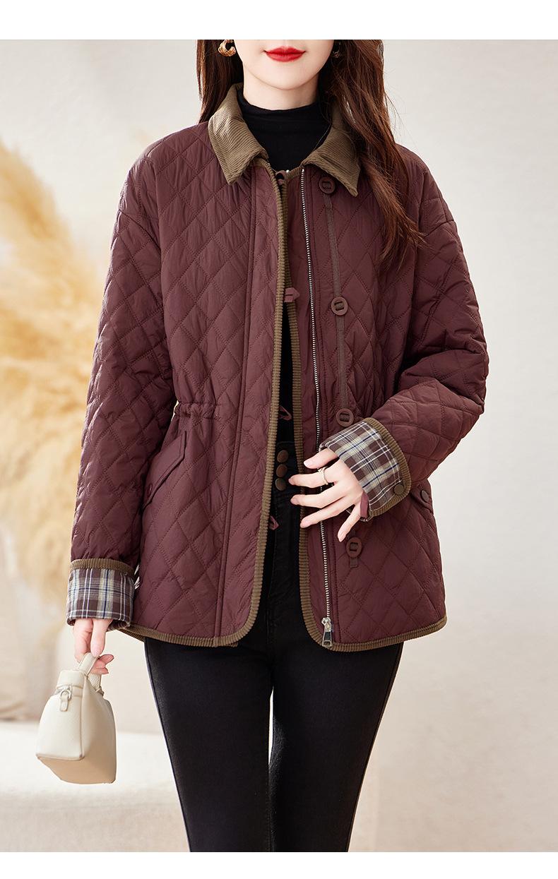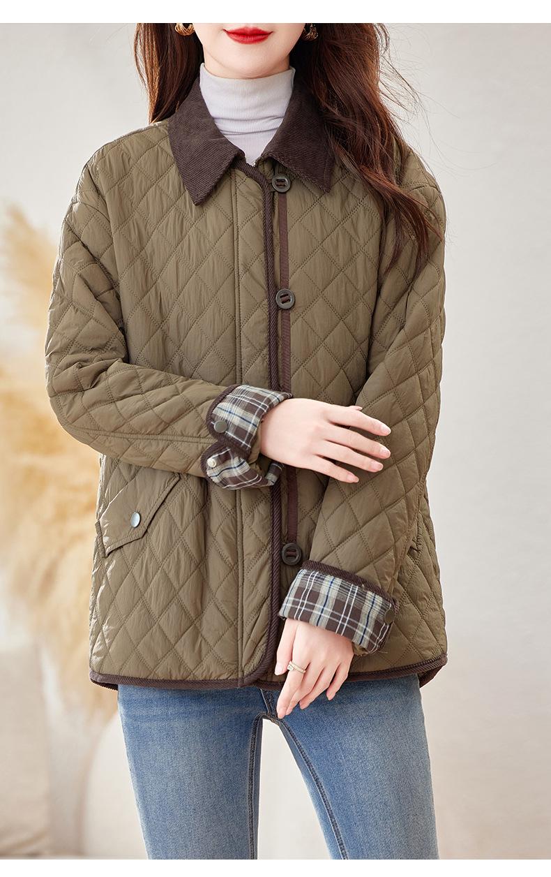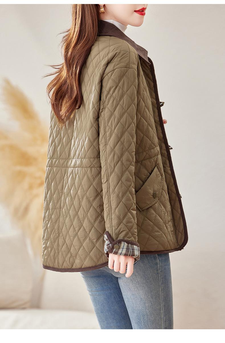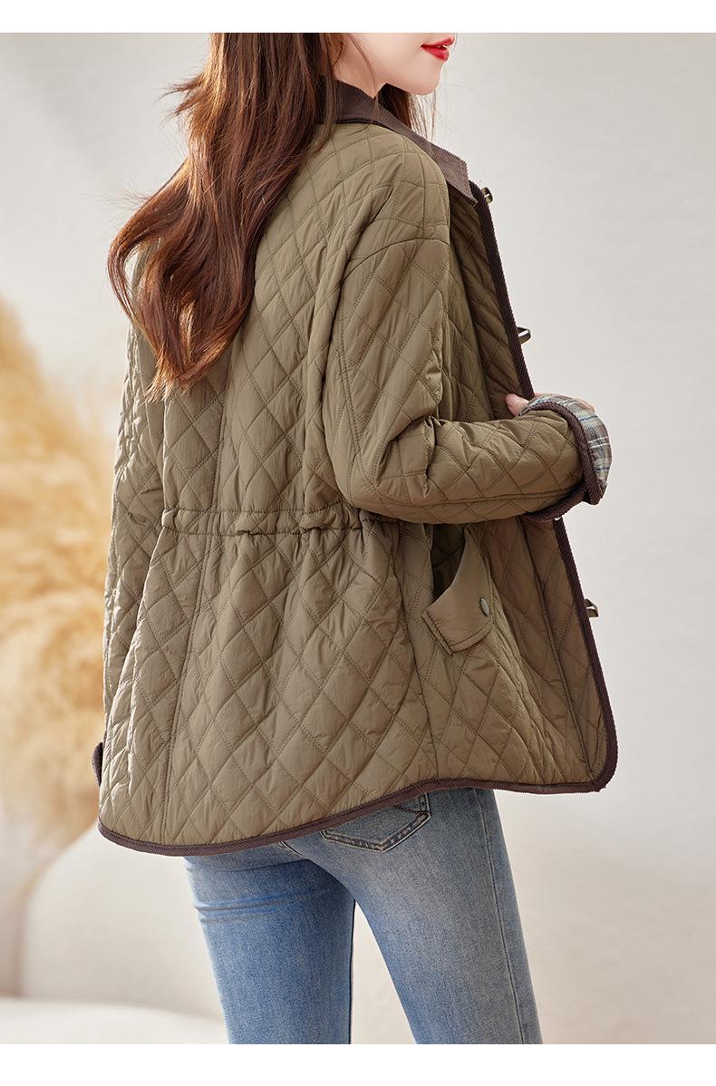 Abrigo acolchado de algodón rómbico estilo Chanel pequeño con costuras de moda para mujer 2024 invierno nuevo estilo abrigo ligero para hombres pequeños