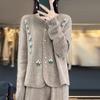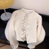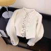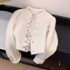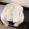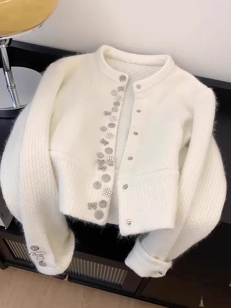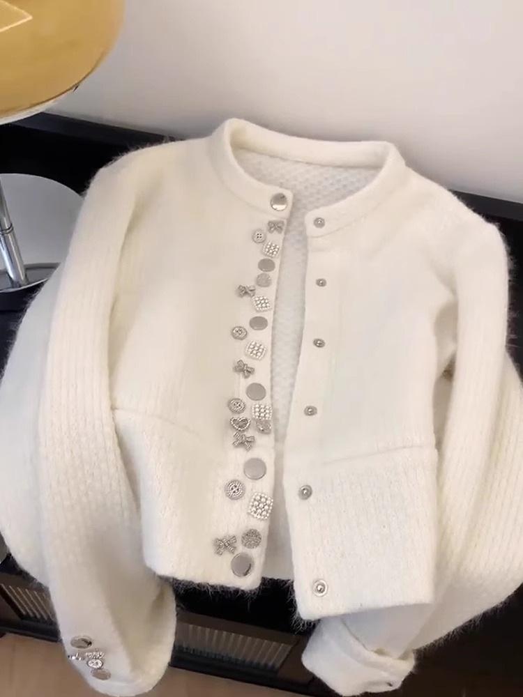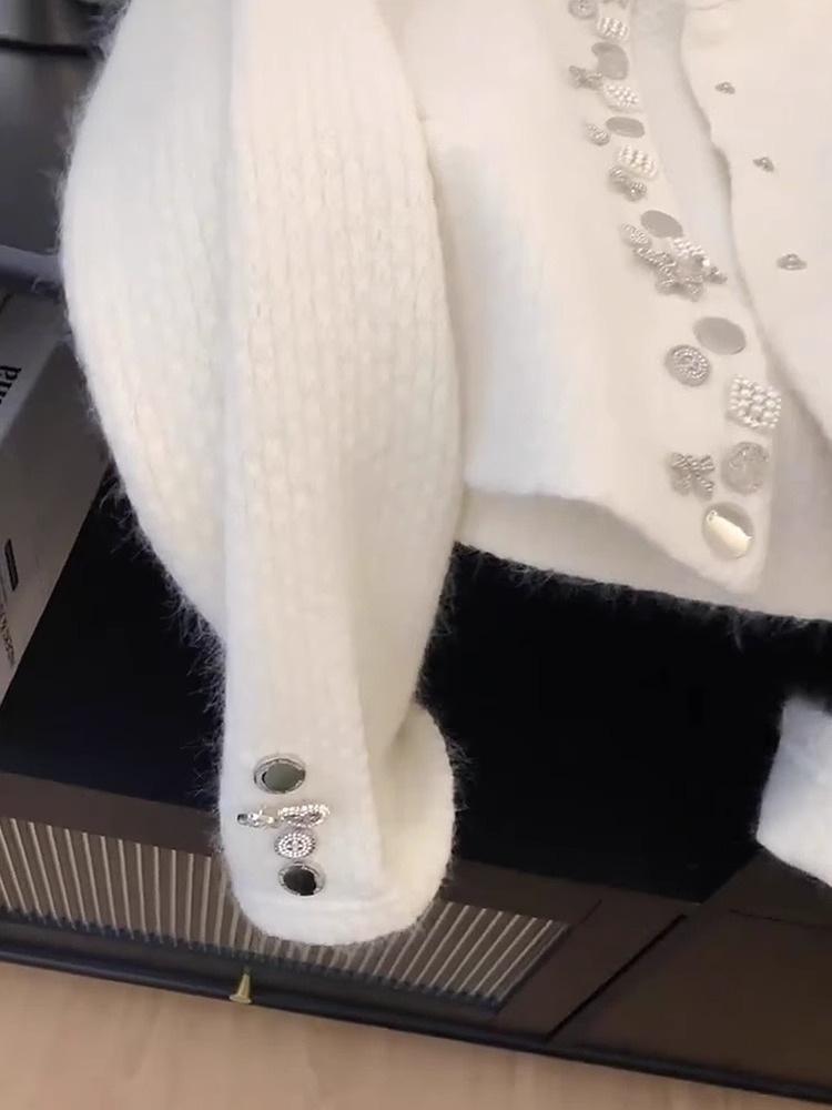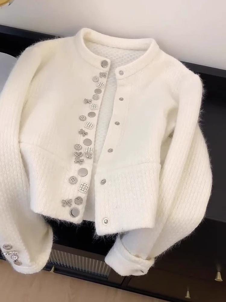 Abrigo Suéter de Terciopelo de Mapache de Industria Pesada Blanco Xiaoxiangfeng para Mujer Otoño e Invierno 2024 Nuevo Cárdigan de Punto Peludo Top