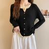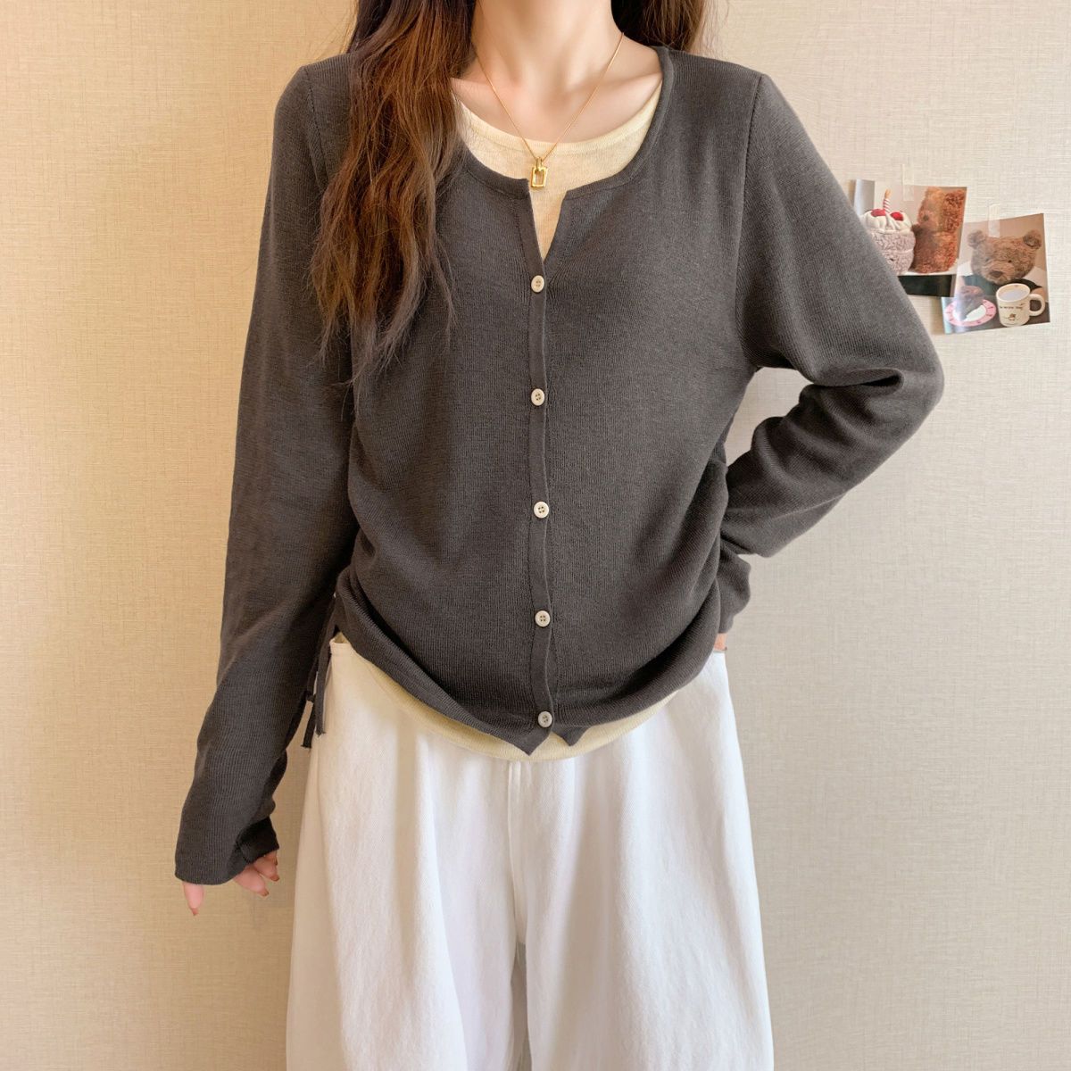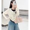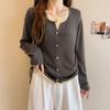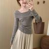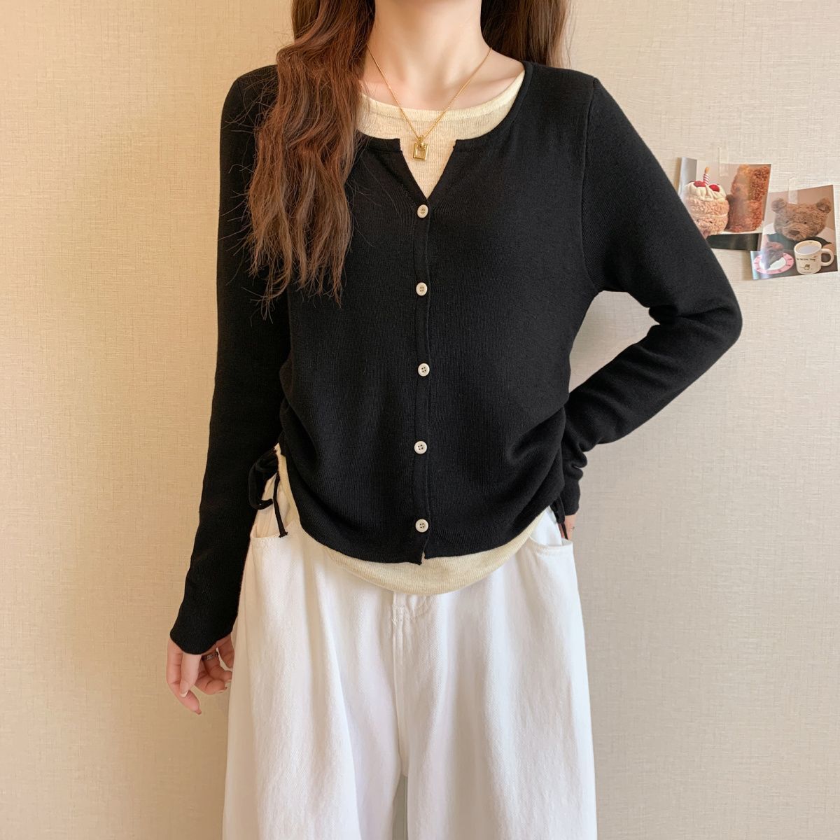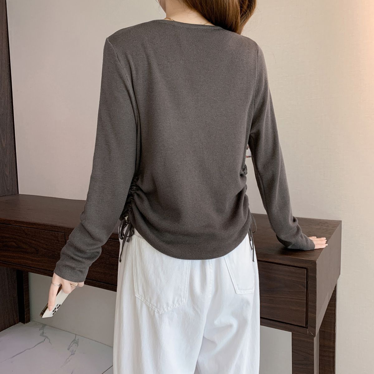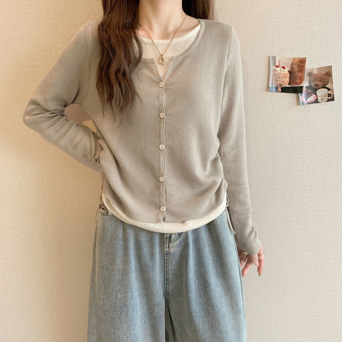 Otoño 2024 Nueva moda de estilo coreano falso de dos piezas estilo occidental suelto adelgazante hilo de punto todo fósforo top de manga larga para mujer