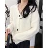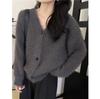 Suéter de Punto Cárdigan Chaqueta para Mujer Nuevo Estilo Europeo de Primavera y Otoño Cuello en V Súper Bonito Estilo Holgazán Top Suave y Ceroso para Mujer