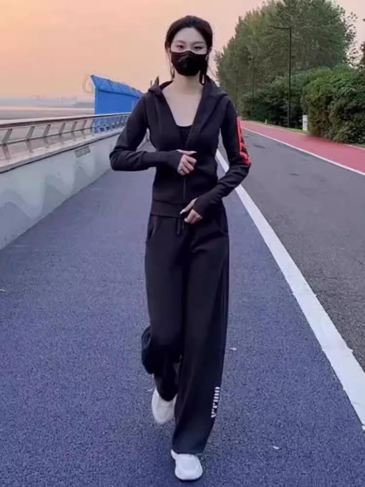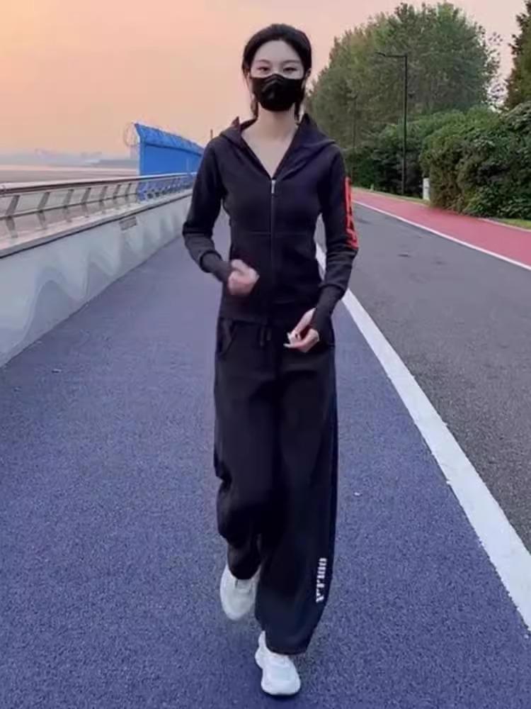 Traje deportivo de ocio para mujer, primavera y otoño 2024, nueva moda, elegante, antiedad, holgado, para correr, conjunto de dos piezas