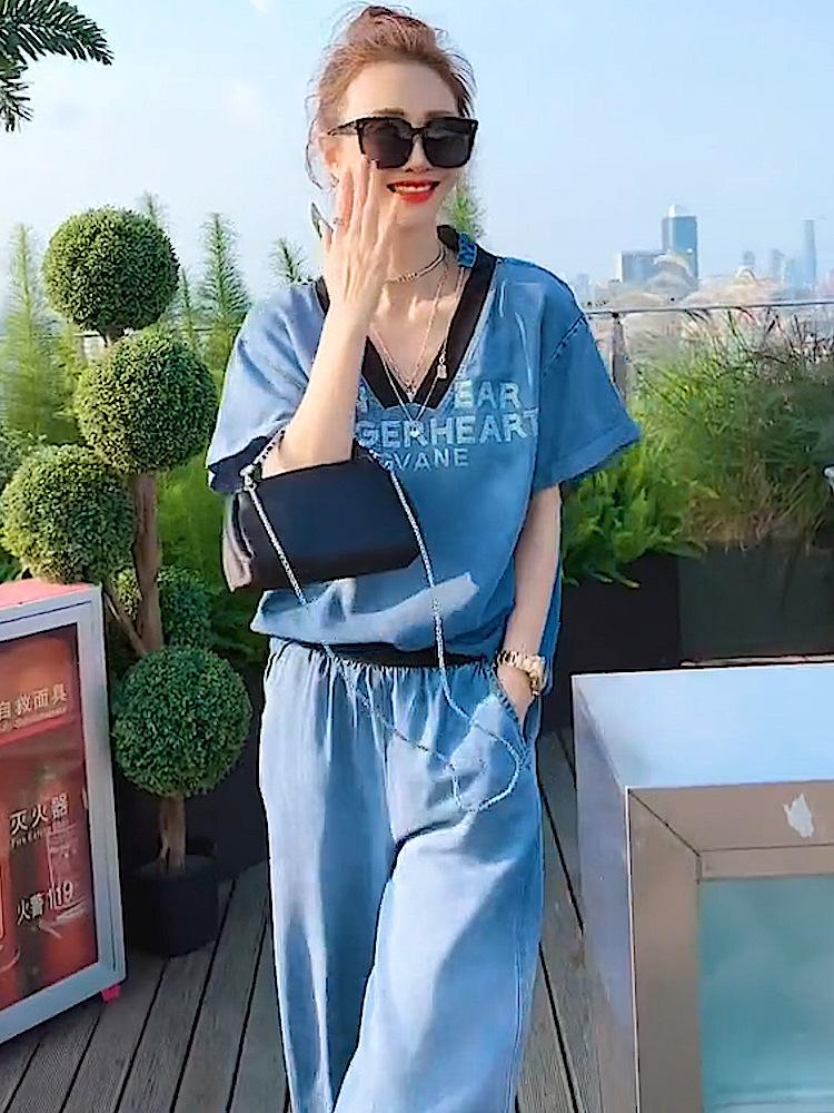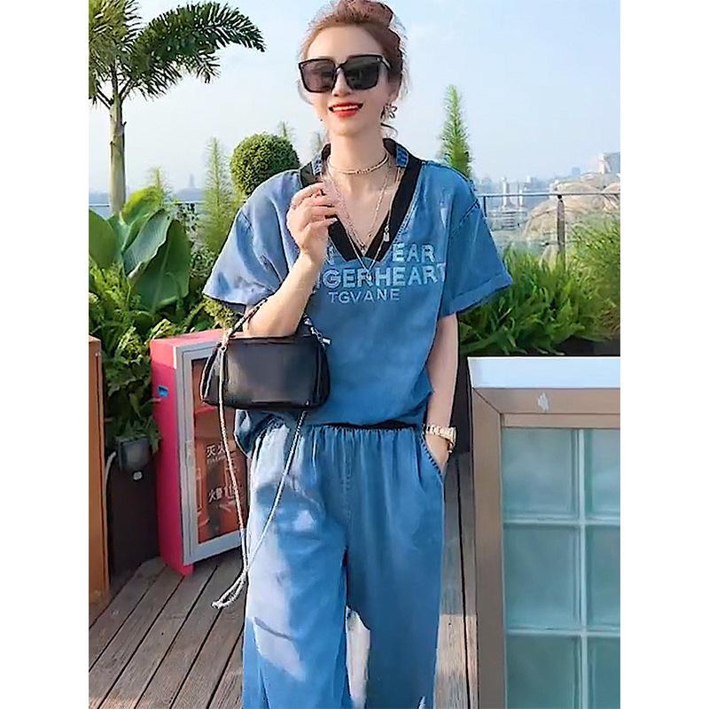 Traje de estilo occidental para mujer 2023 Nuevo Holgado Manga Corta Verano Ropa Deportiva para Correr Conjunto de Dos Piezas Delgado