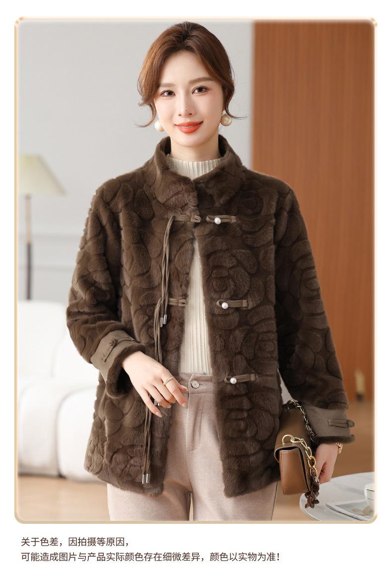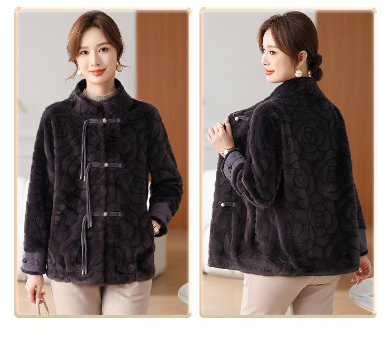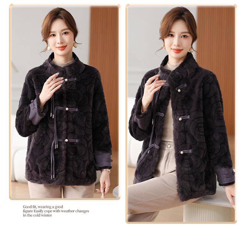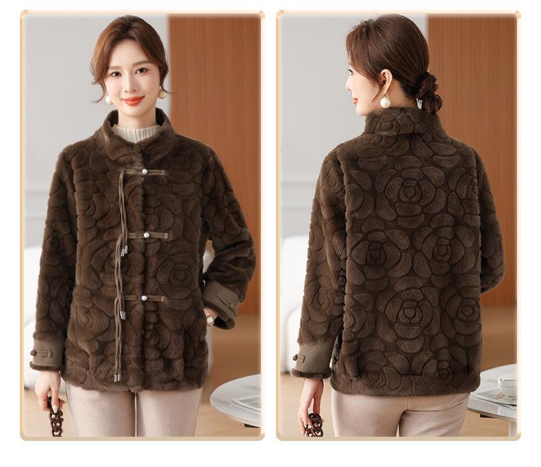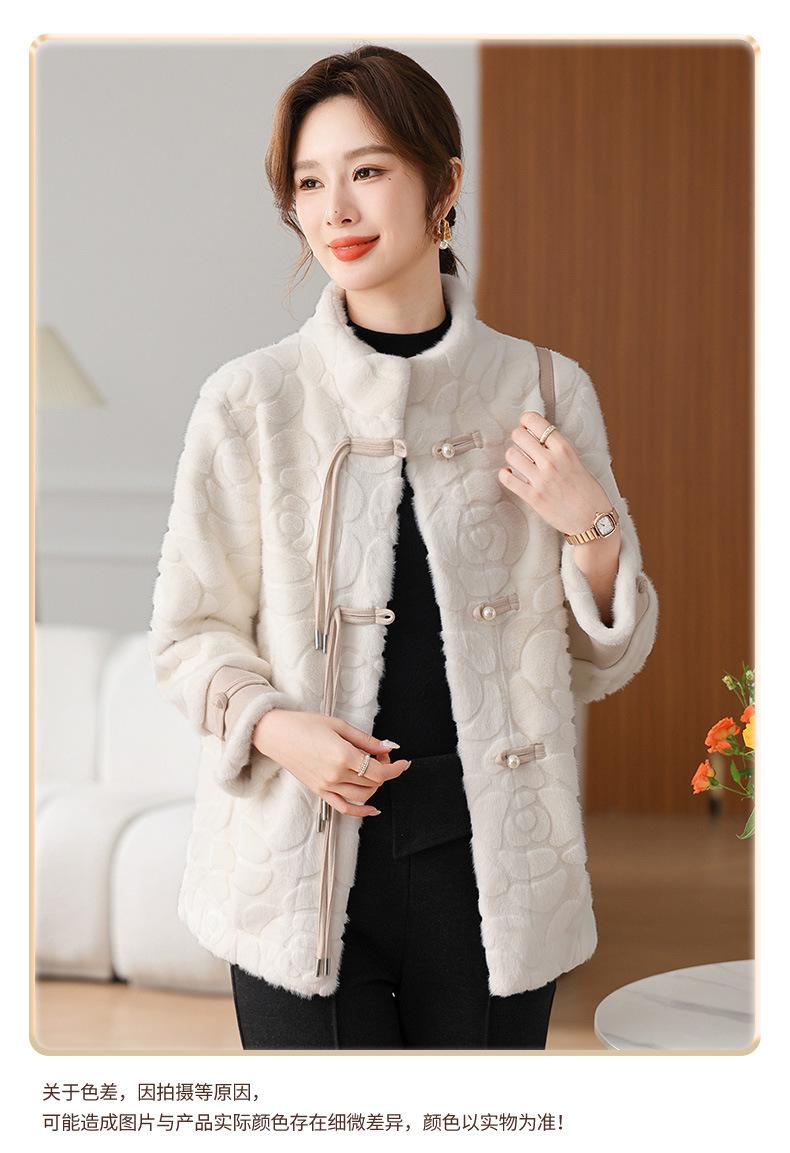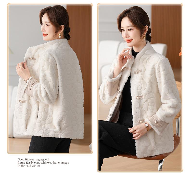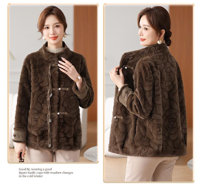 Abrigo de terciopelo de visón de invierno para madres, nuevo abrigo de lana corto de una pieza de piel sintética para otoño e invierno para mujeres de mediana edad y mayores.