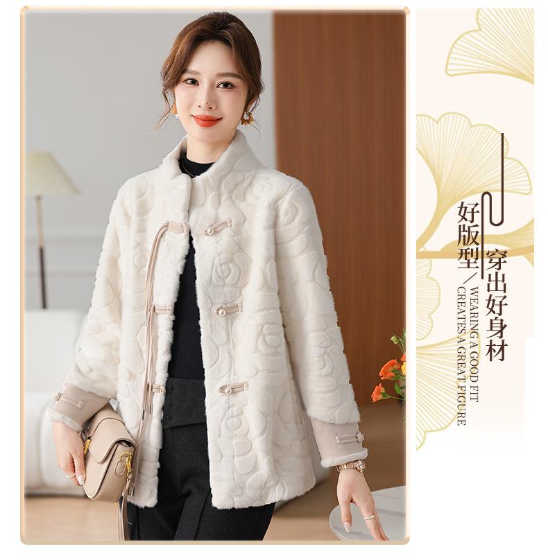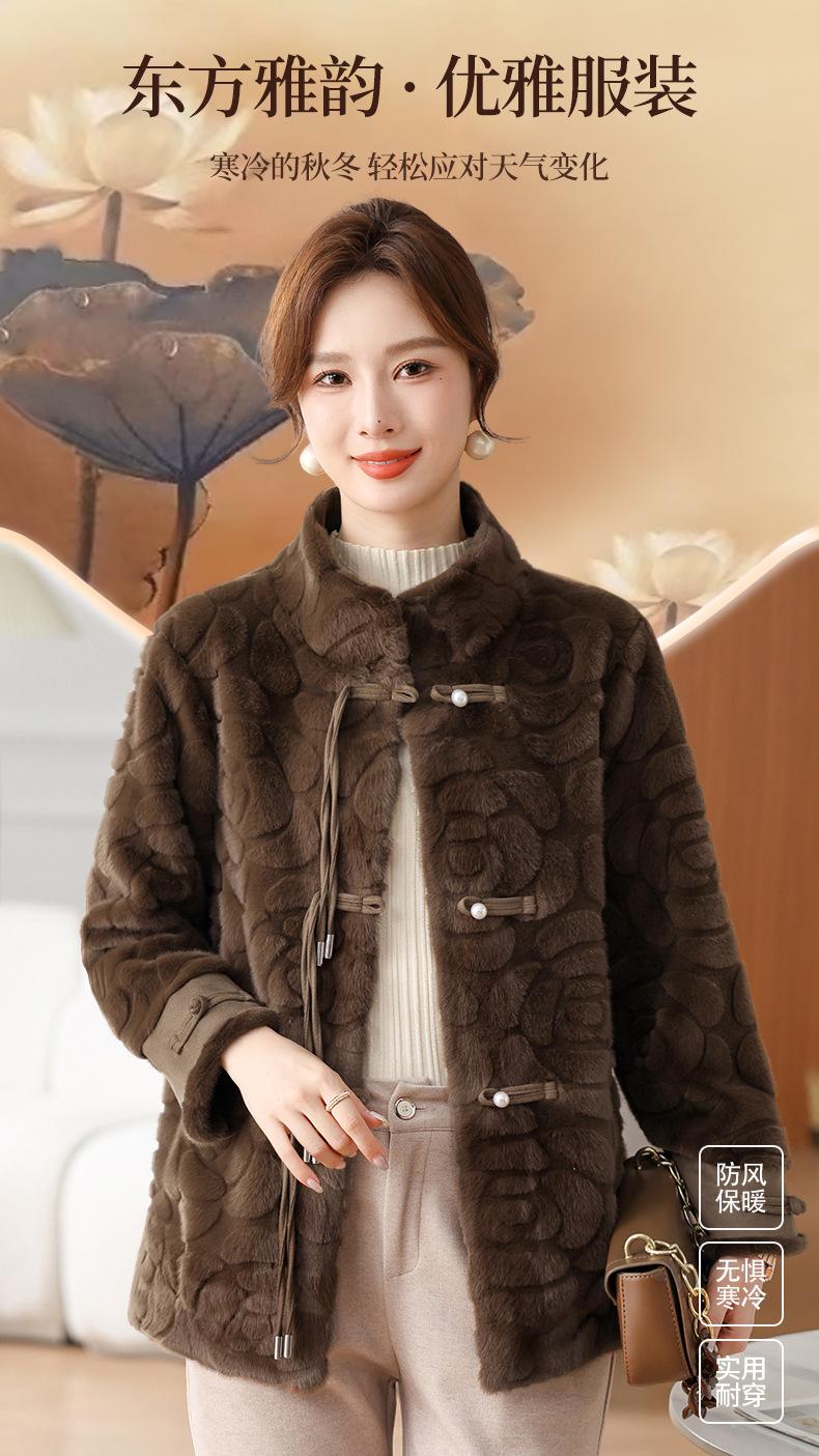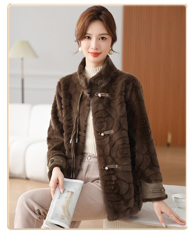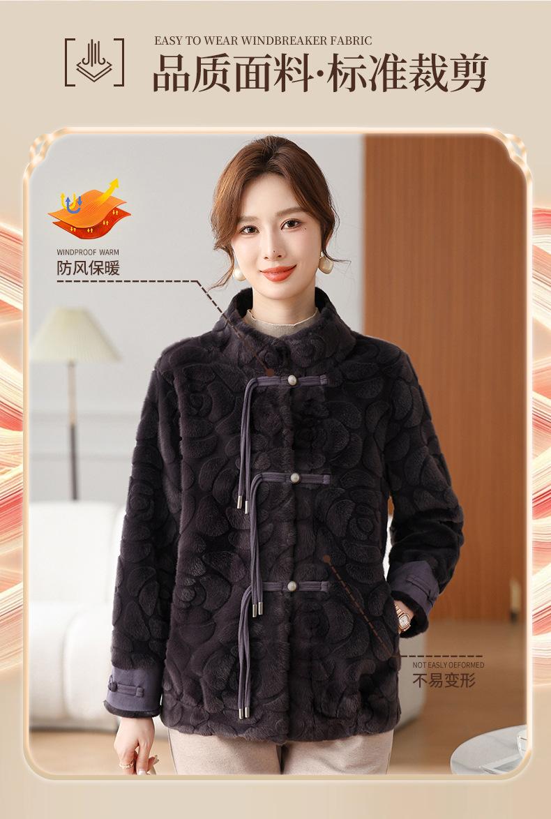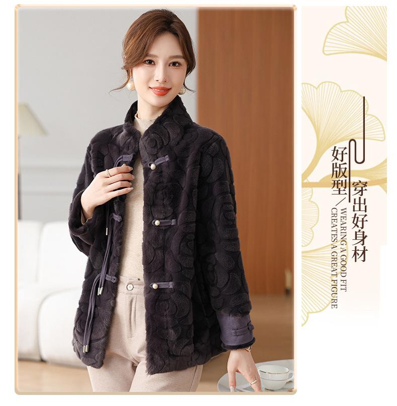 Abrigo de terciopelo de visón de invierno para madres, nuevo abrigo de lana corto de una pieza de piel sintética para otoño e invierno para mujeres de mediana edad y mayores.