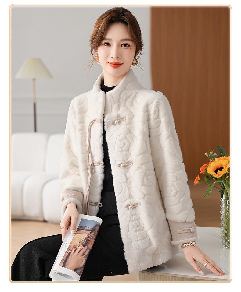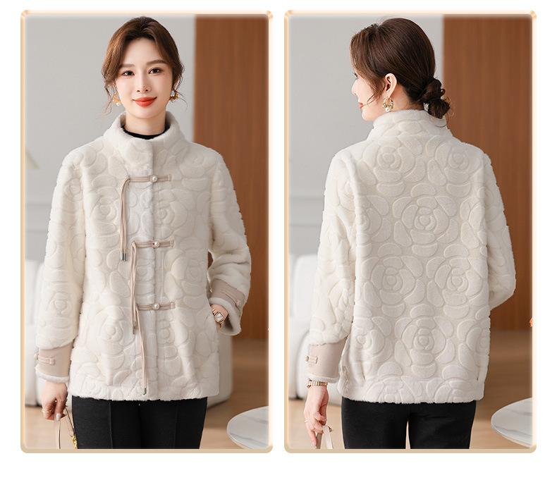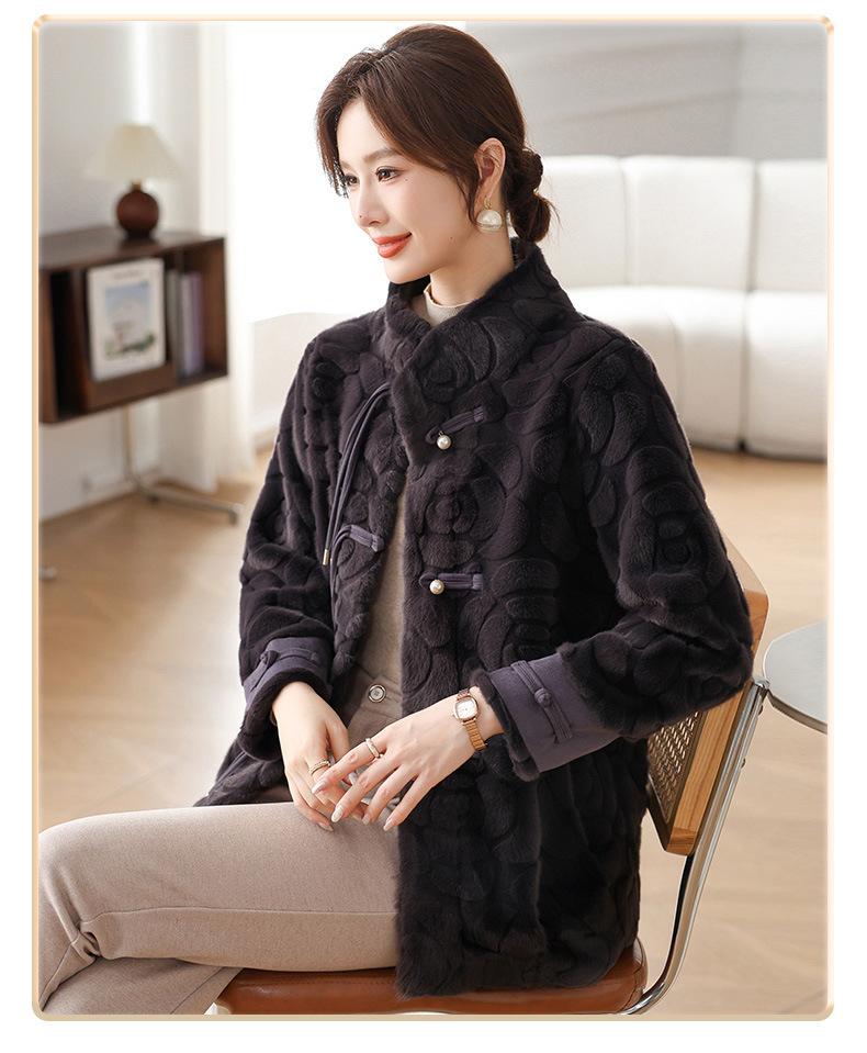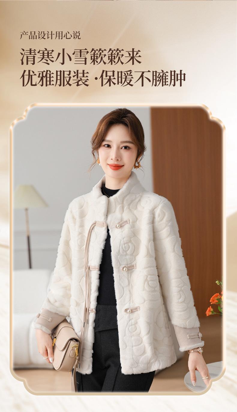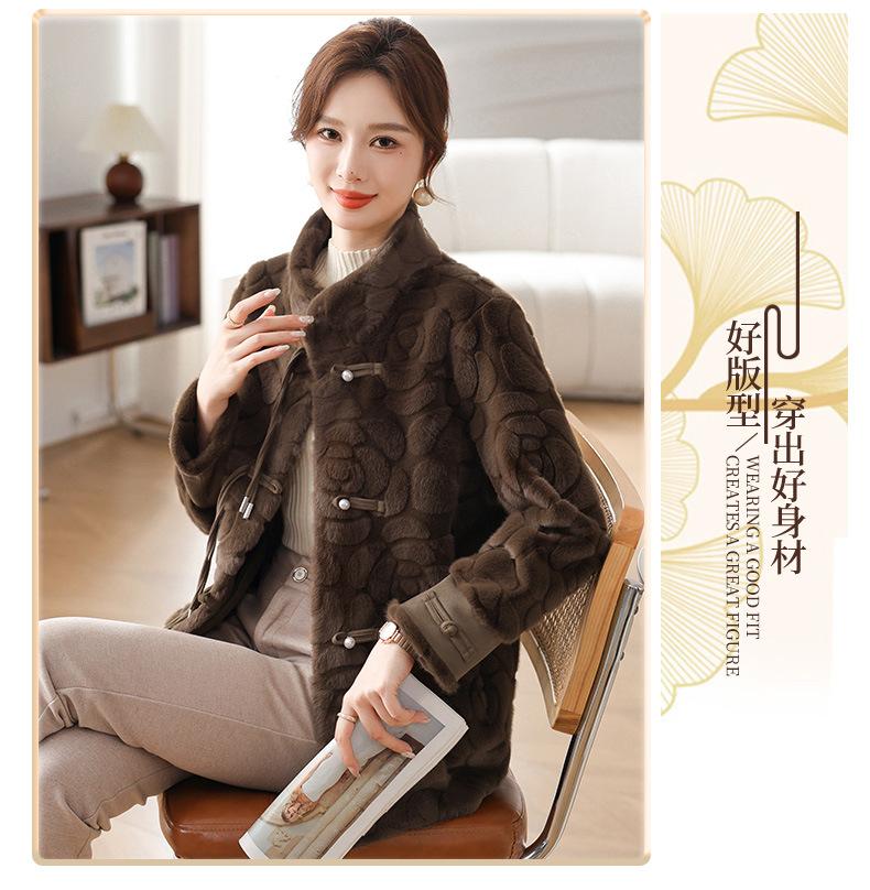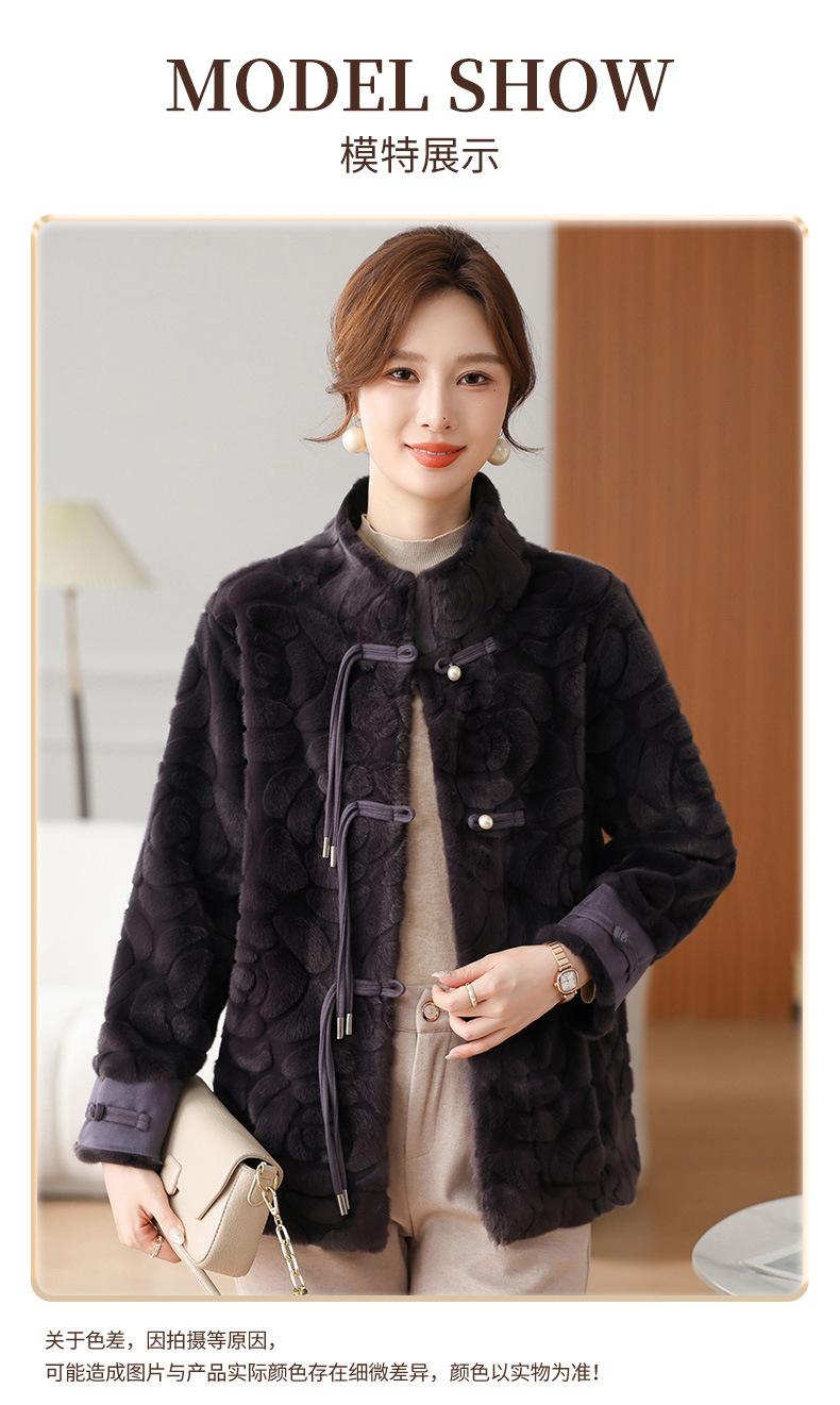 Abrigo de terciopelo de visón de invierno para madres, nuevo abrigo de lana corto de una pieza de piel sintética para otoño e invierno para mujeres de mediana edad y mayores.