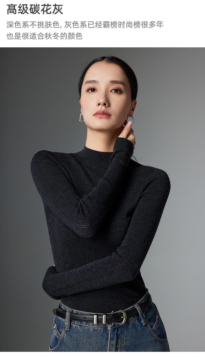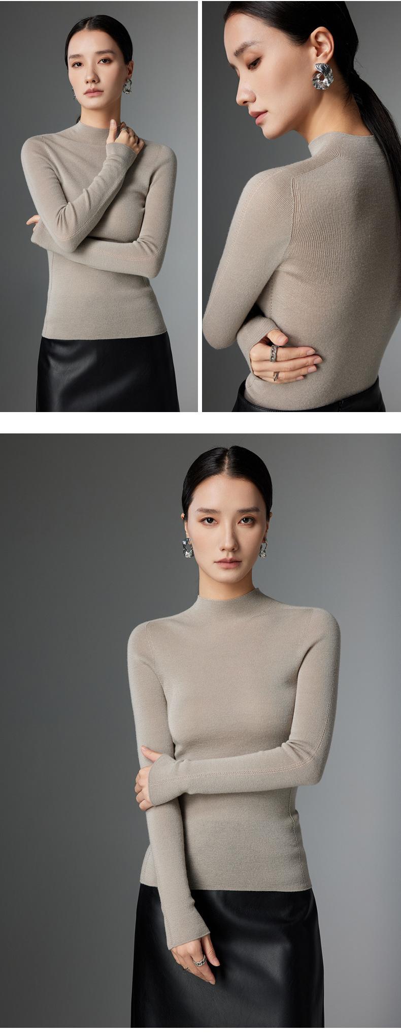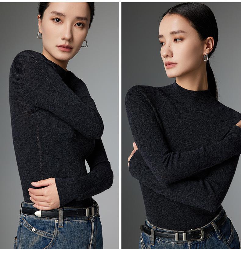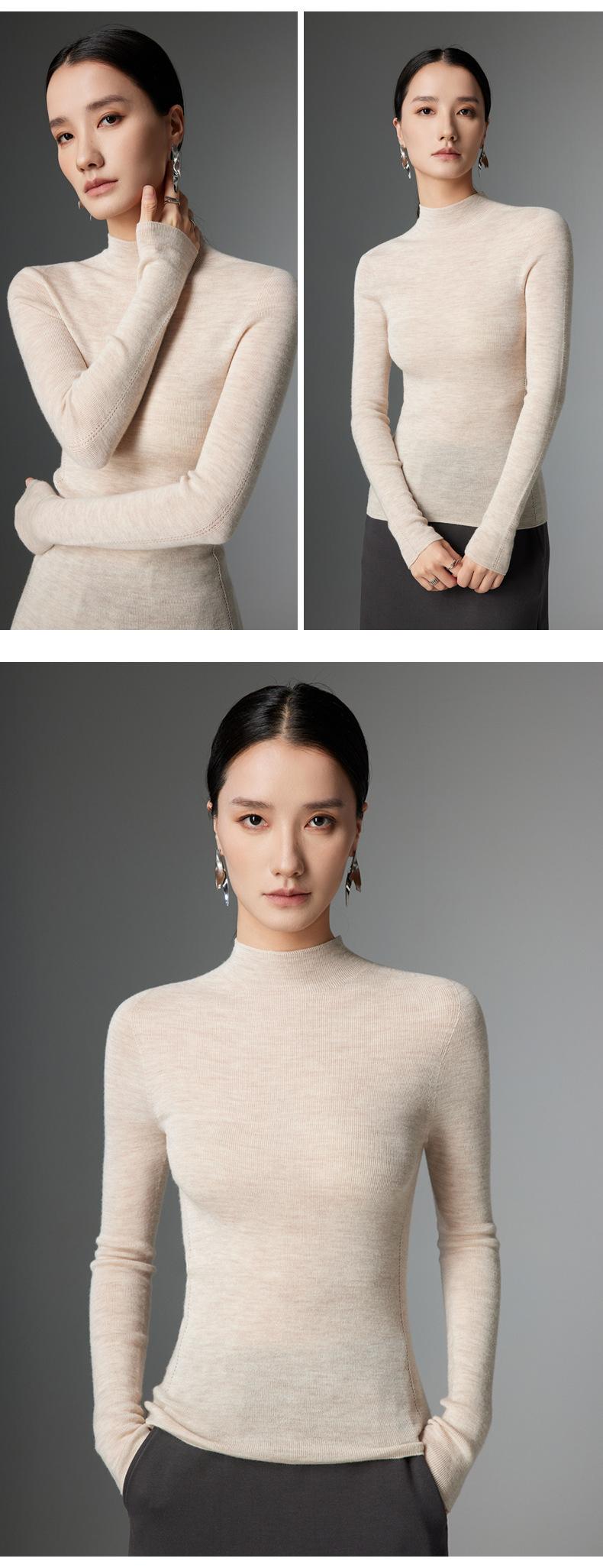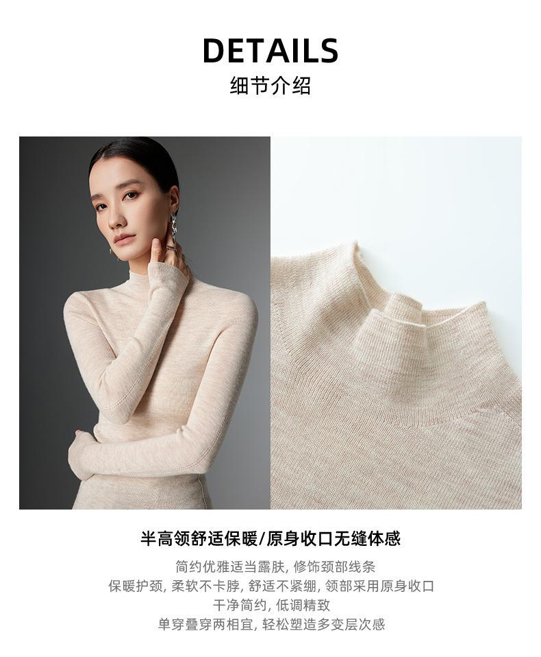 Suéter de cuello alto medio para mujer, otoño e invierno, nuevo suéter sin costuras de hilo Yangtze de 120 años, suéter de lana pura con base para viajeros