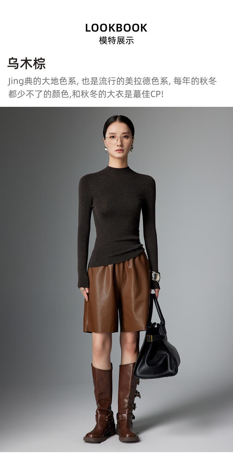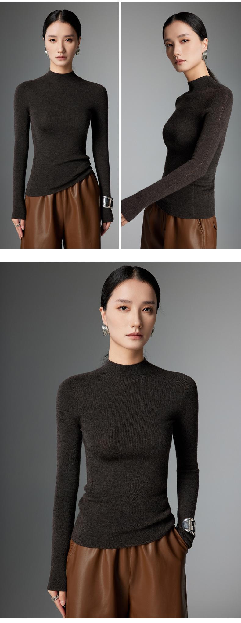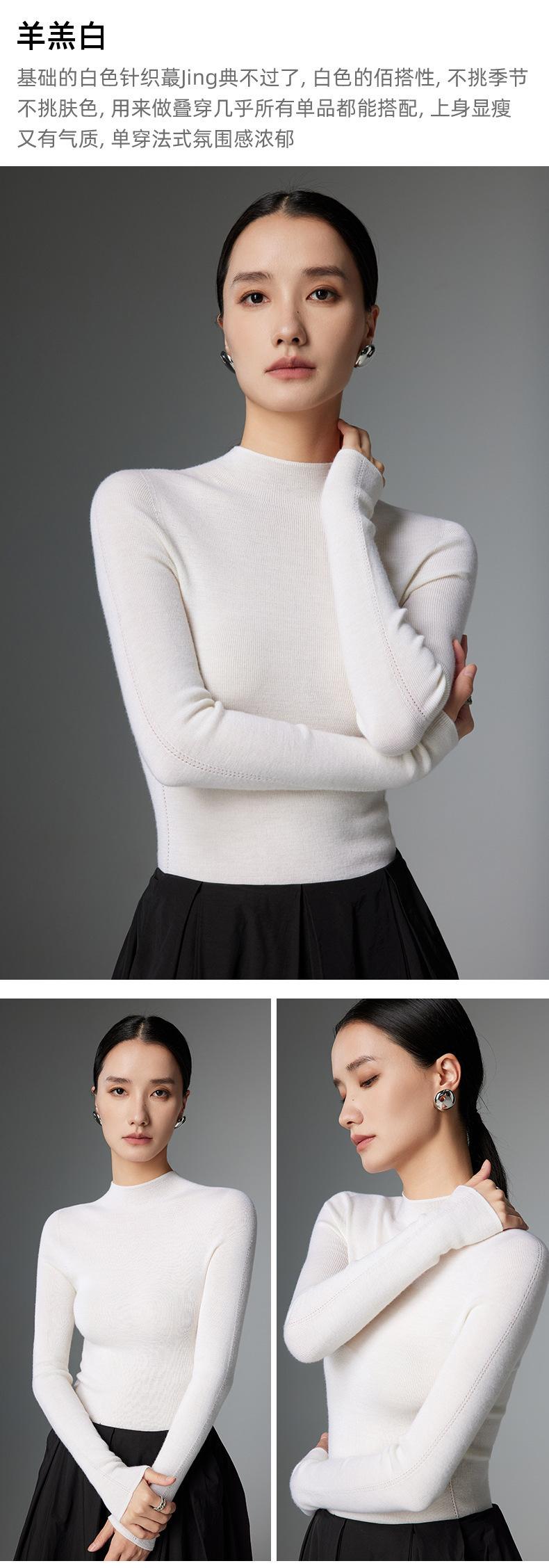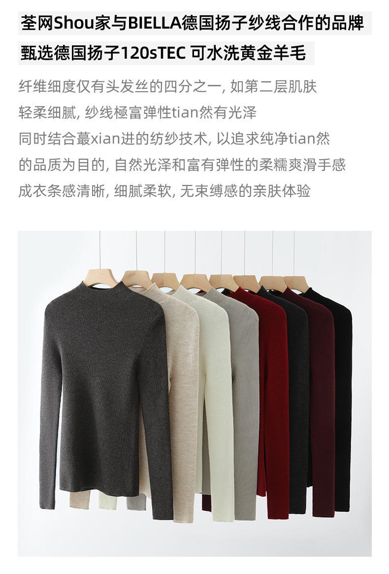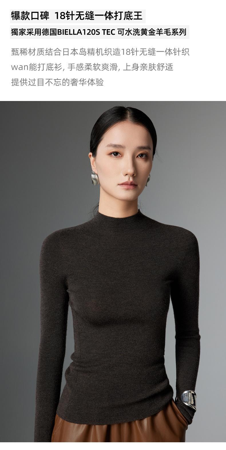 Suéter de cuello alto medio para mujer, otoño e invierno, nuevo suéter sin costuras de hilo Yangtze de 120 años, suéter de lana pura con base para viajeros