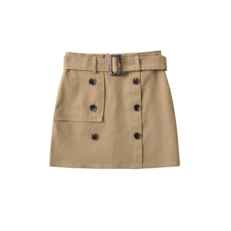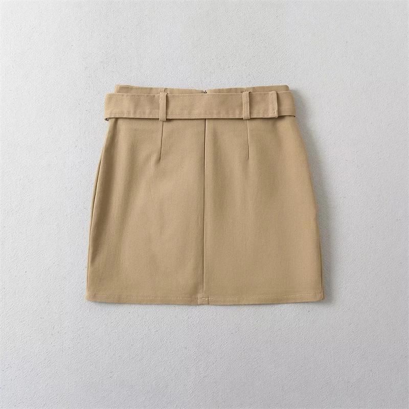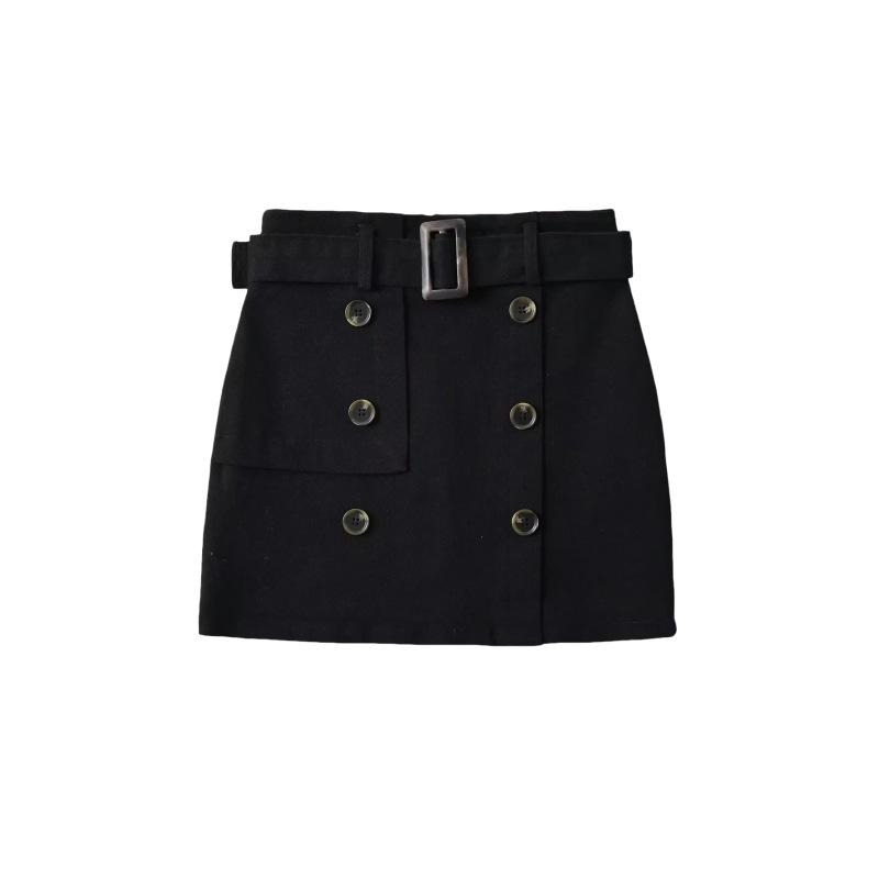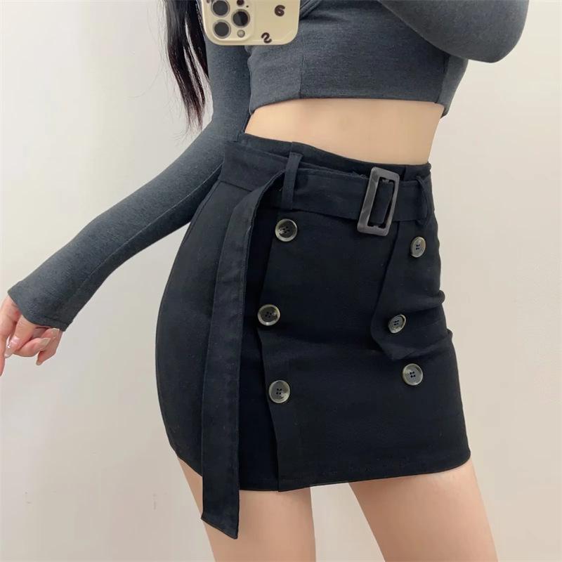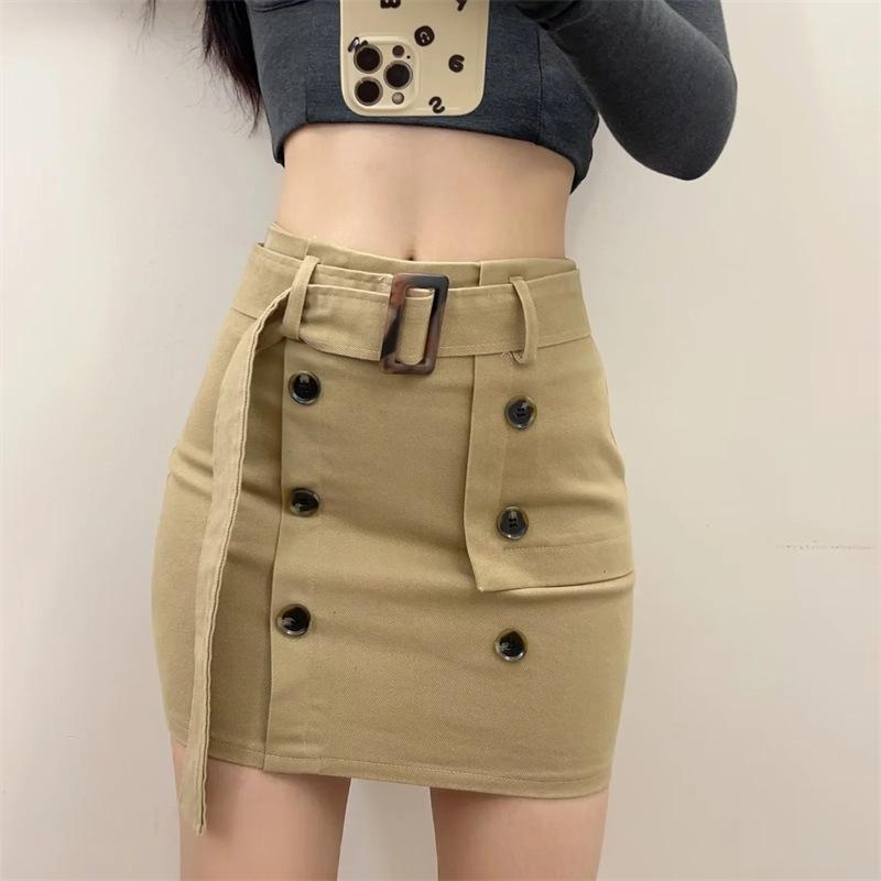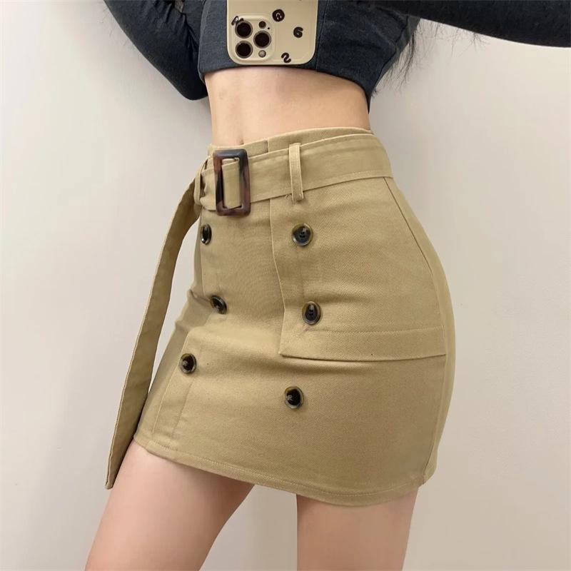 Falda con cinturón de cintura alta estilo retro americano, diseño para mujer, con doble botonadura, ajustada, sexy, con cintura ajustada, falda para chica sexy
