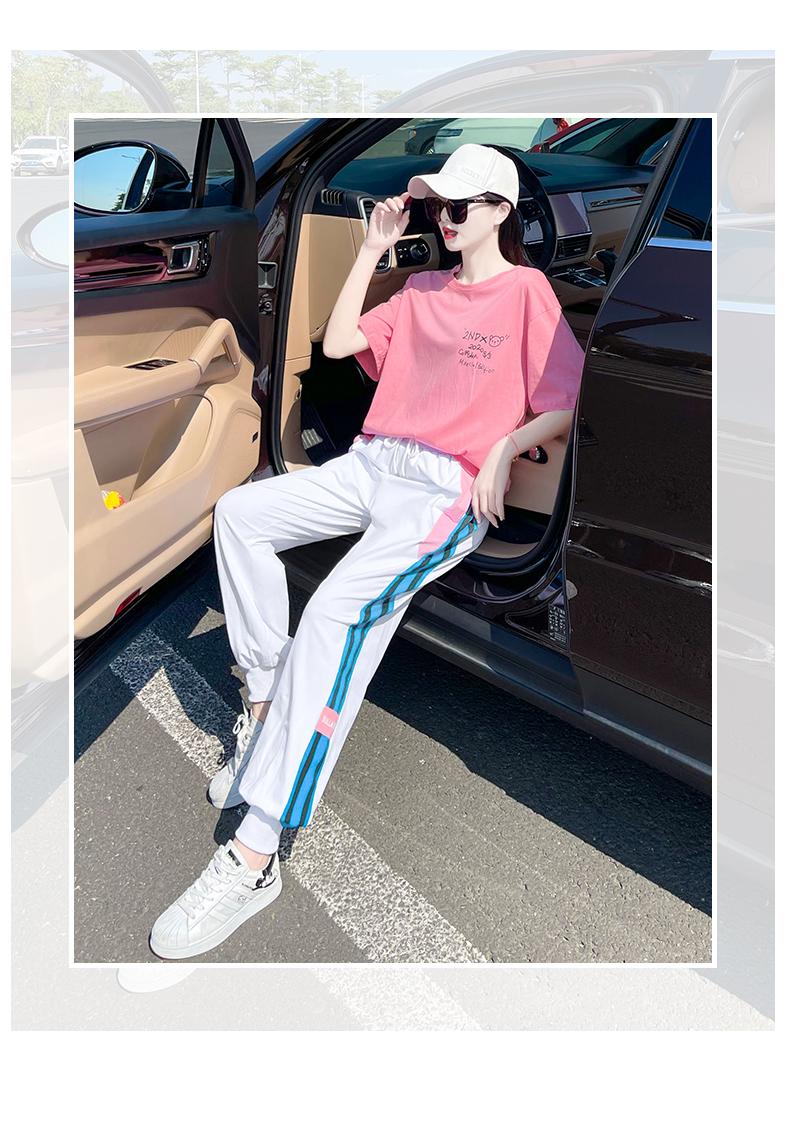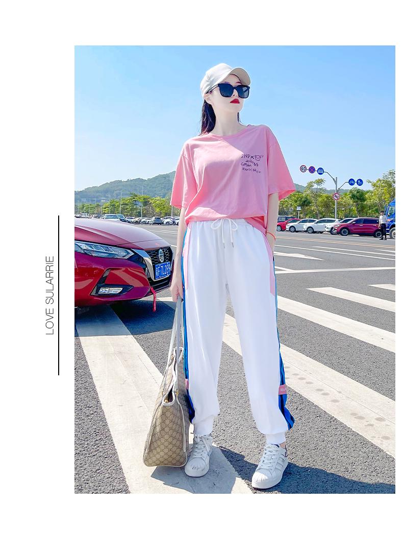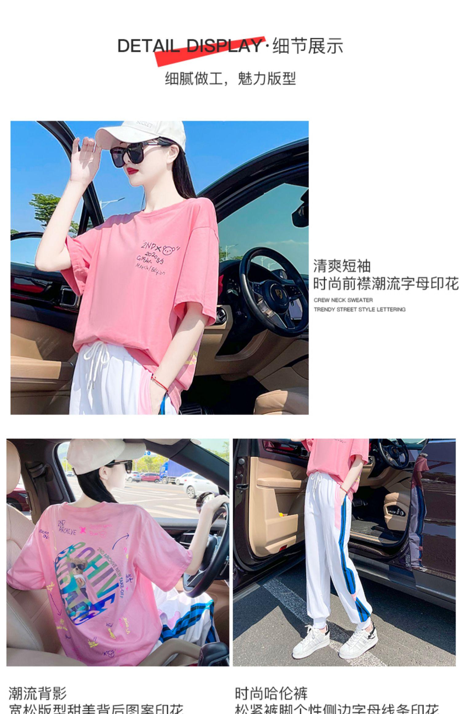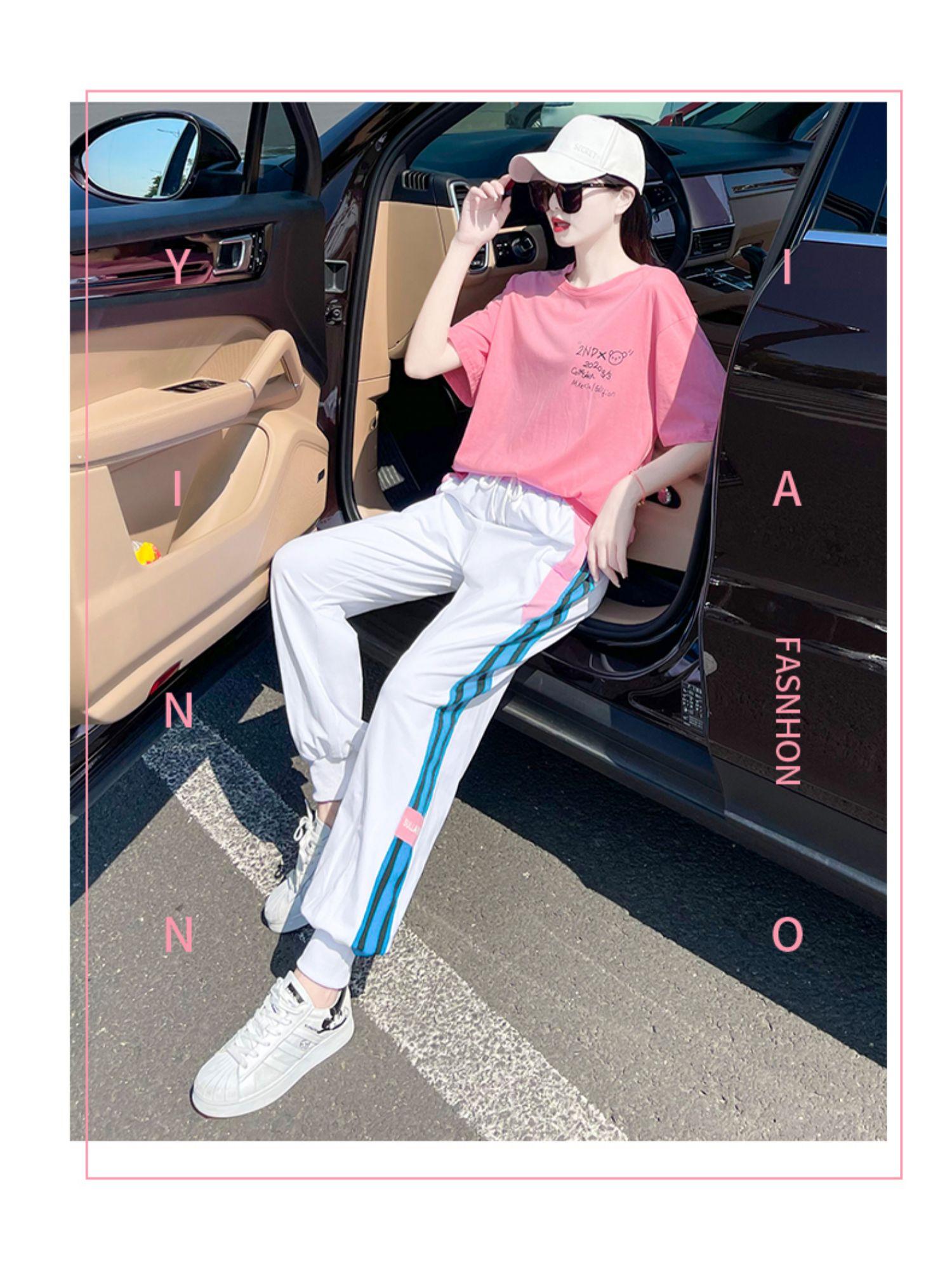 Traje deportivo para mujer, verano 2022, nueva marca de moda, moda coreana suelta, pantalones casuales de estilo extranjero, conjunto de dos piezas