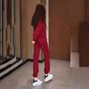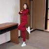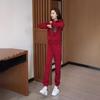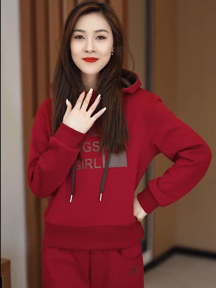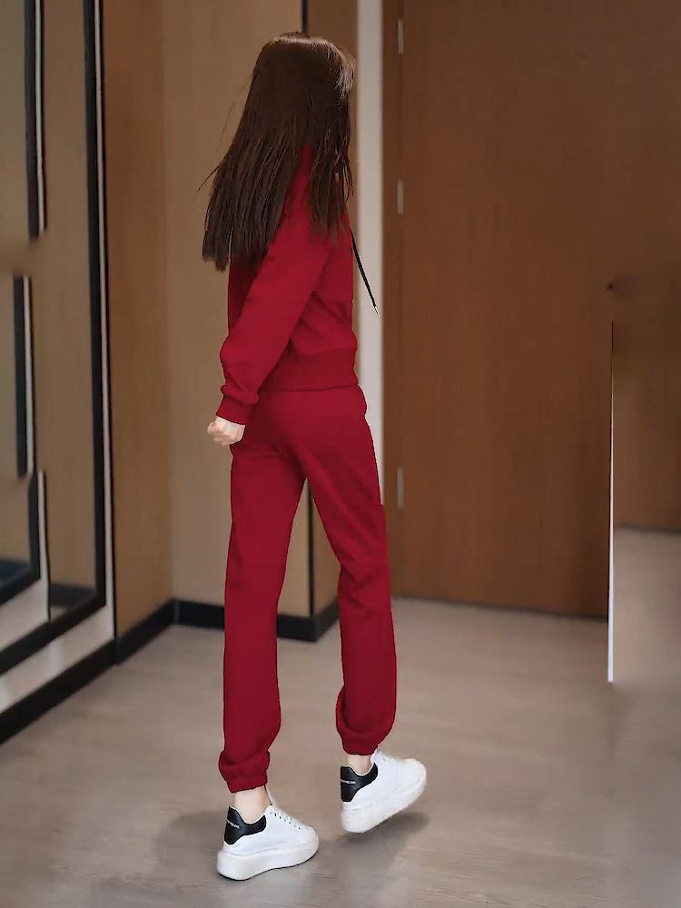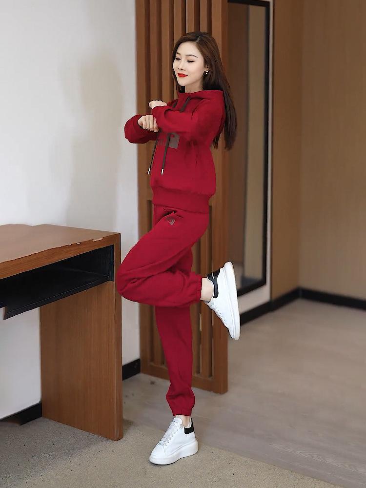Conjunto deportivo de alta gama con capucha, sudadera holgada de color rojo, para mujer, de dos piezas.