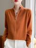 Cárdigan de punto de lana pura con aguja de osmanthus y cuello medio alto para mujer, color liso, manga larga, elegante, informal, sencillo, con doble cremallera