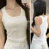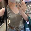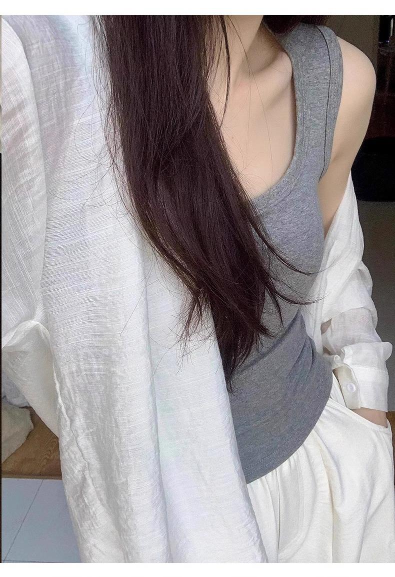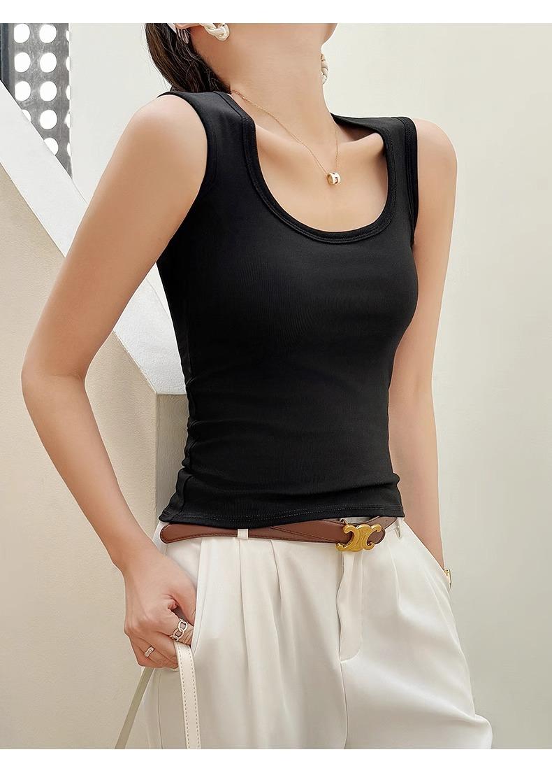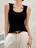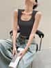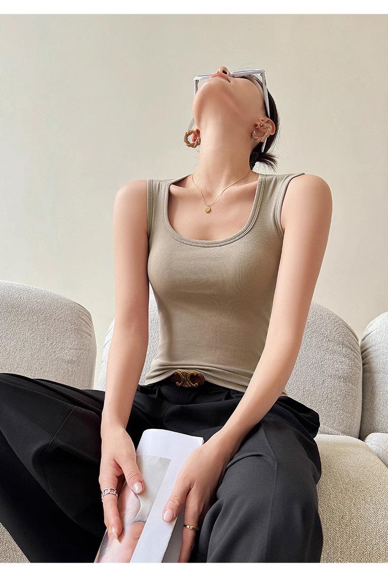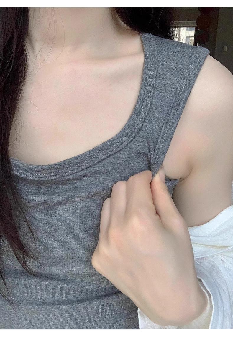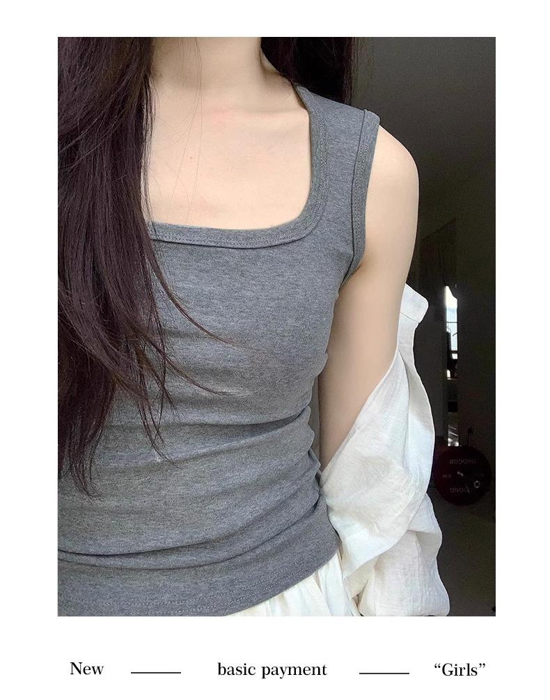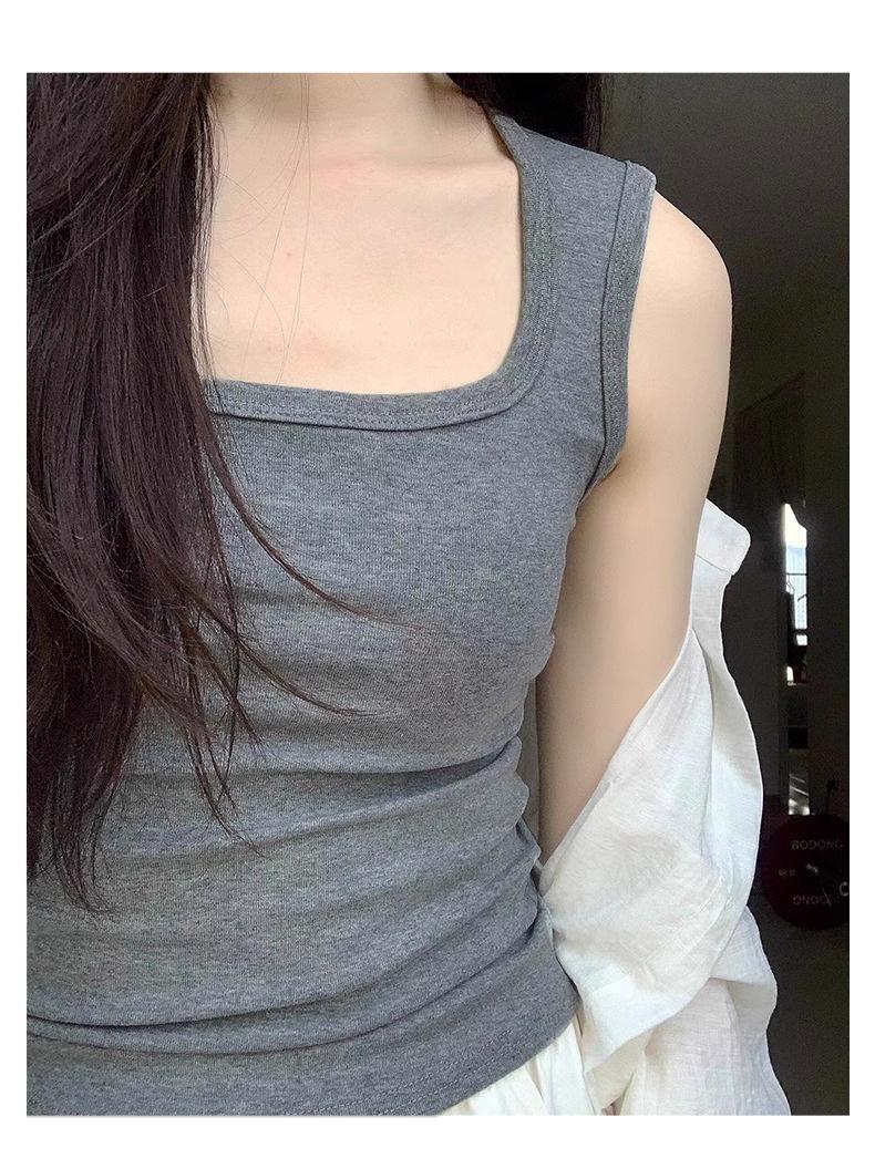 Camisola de algodón puro con cuello cuadrado para primavera y otoño y verano, corte entallado, estilo Spice Girl, sin mangas, interior y exterior, para mujer