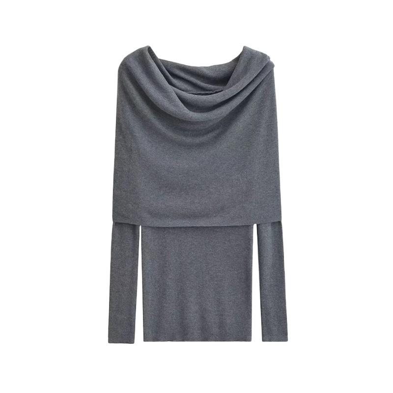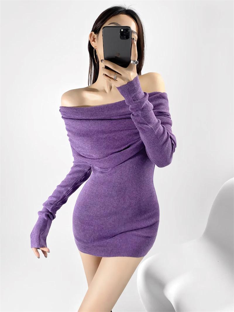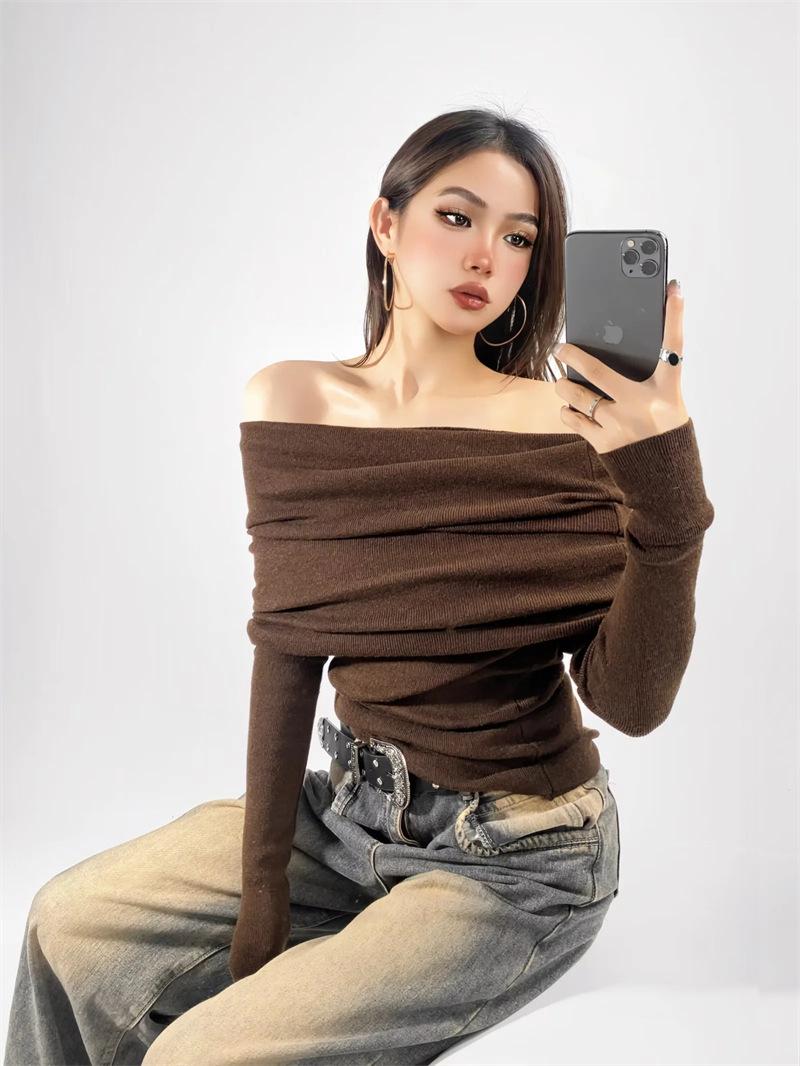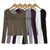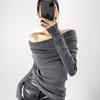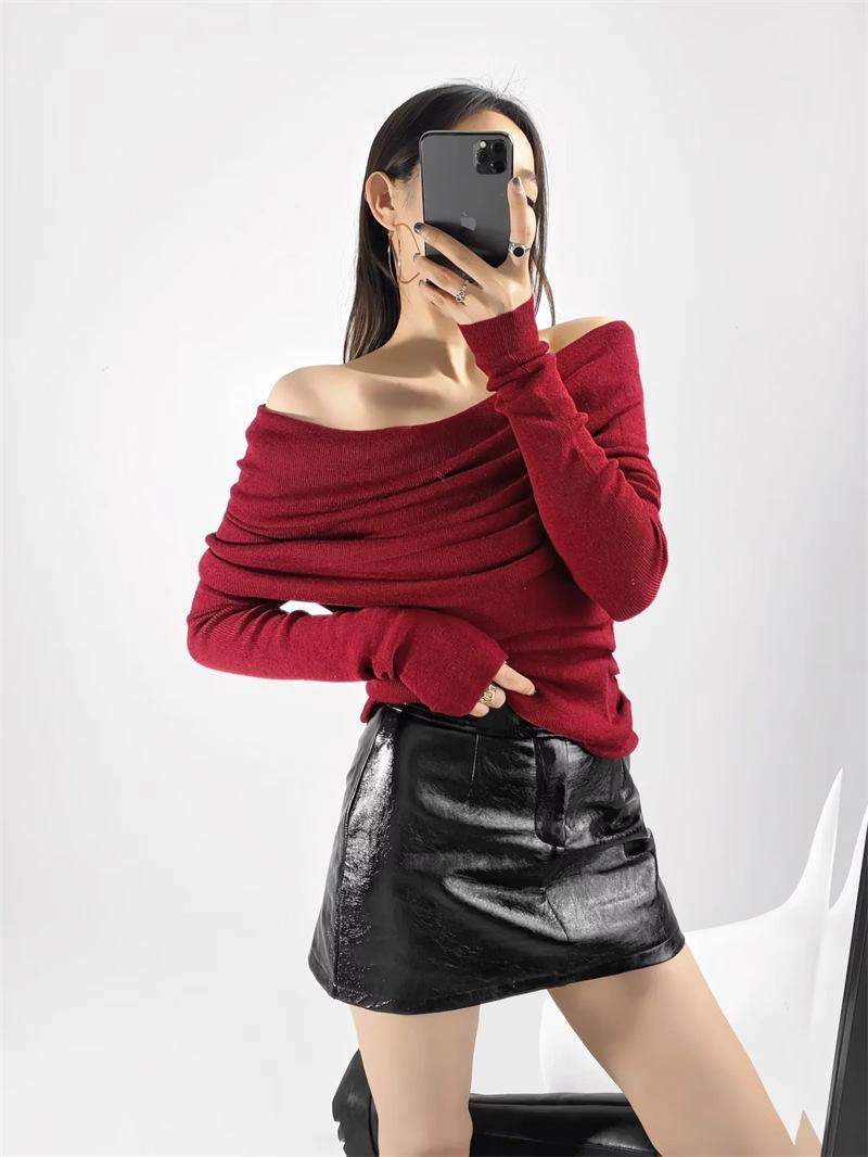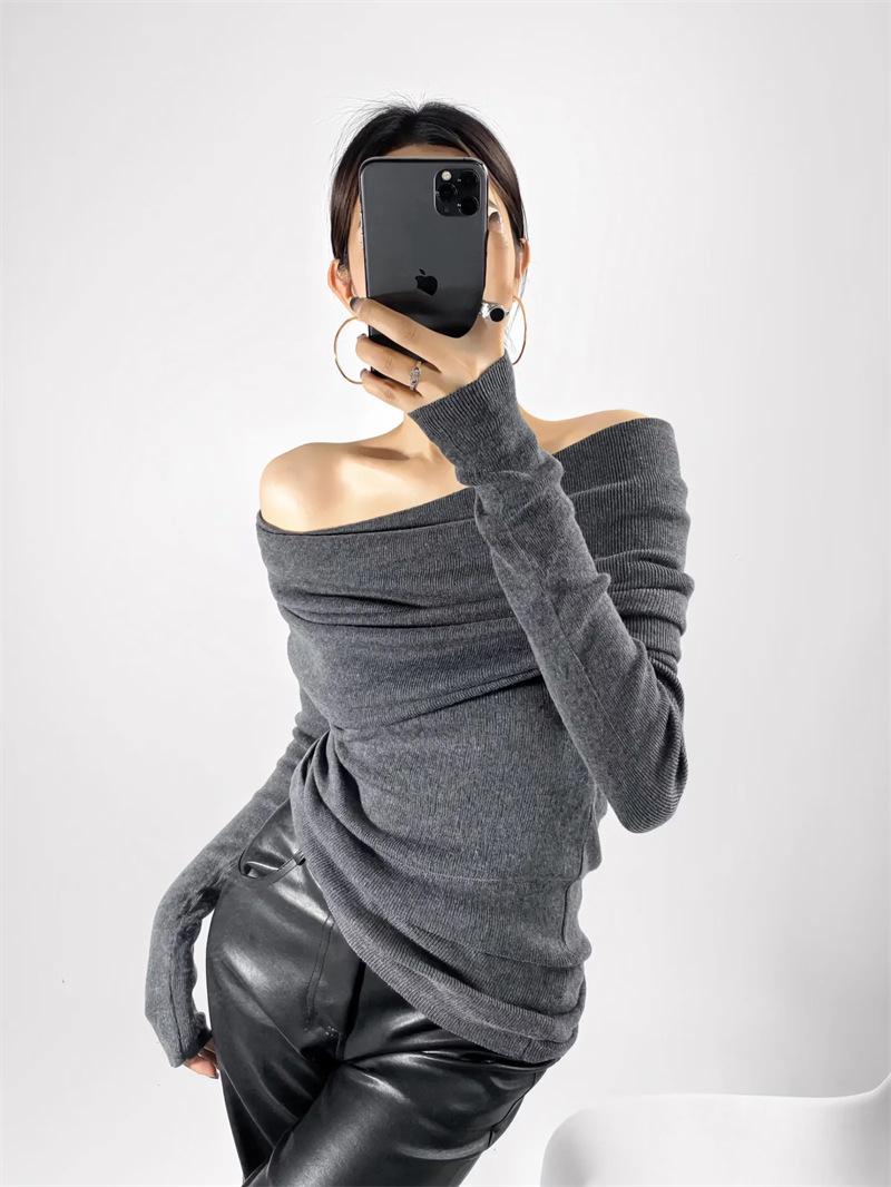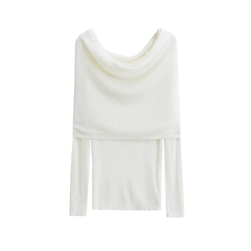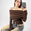 Suéter plisado con hombros descubiertos, puro y sexy, para mujer, ropa exterior sexy, top ajustado de manga larga de longitud media
