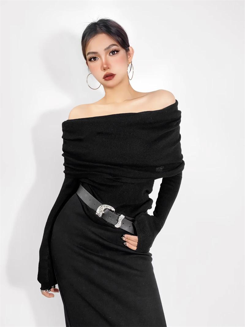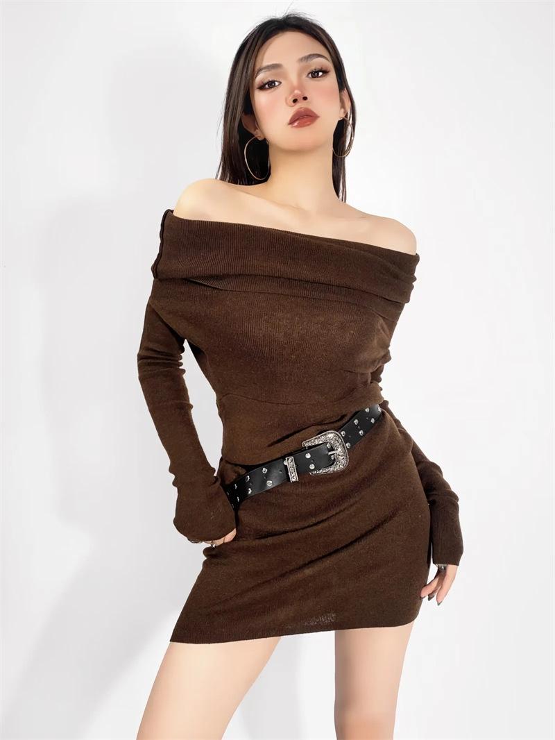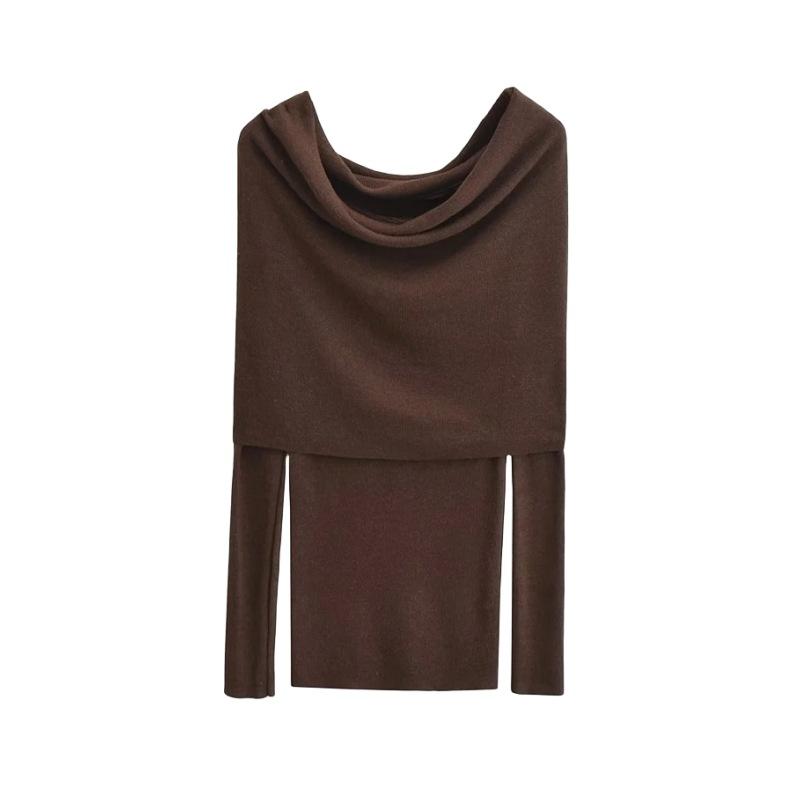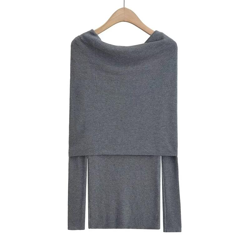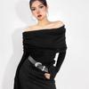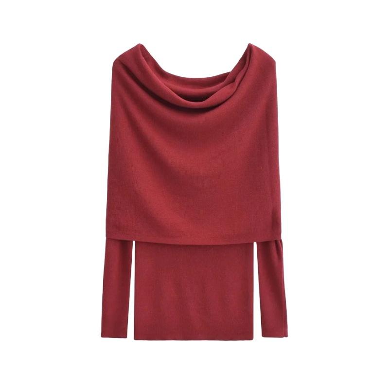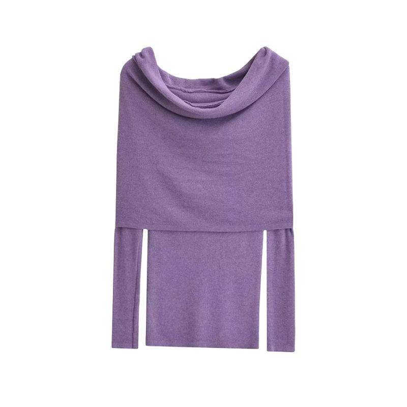Suéter plisado con hombros descubiertos, puro y sexy, para mujer, ropa exterior sexy, top ajustado de manga larga de longitud media