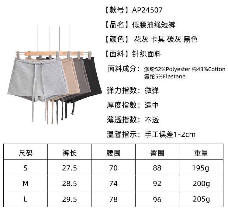 AP24507-24 Otoño Nuevo Americano Color Sólido Simple Chica Casual Cintura Baja Cordón Correa Culottes Shorts