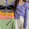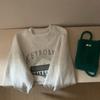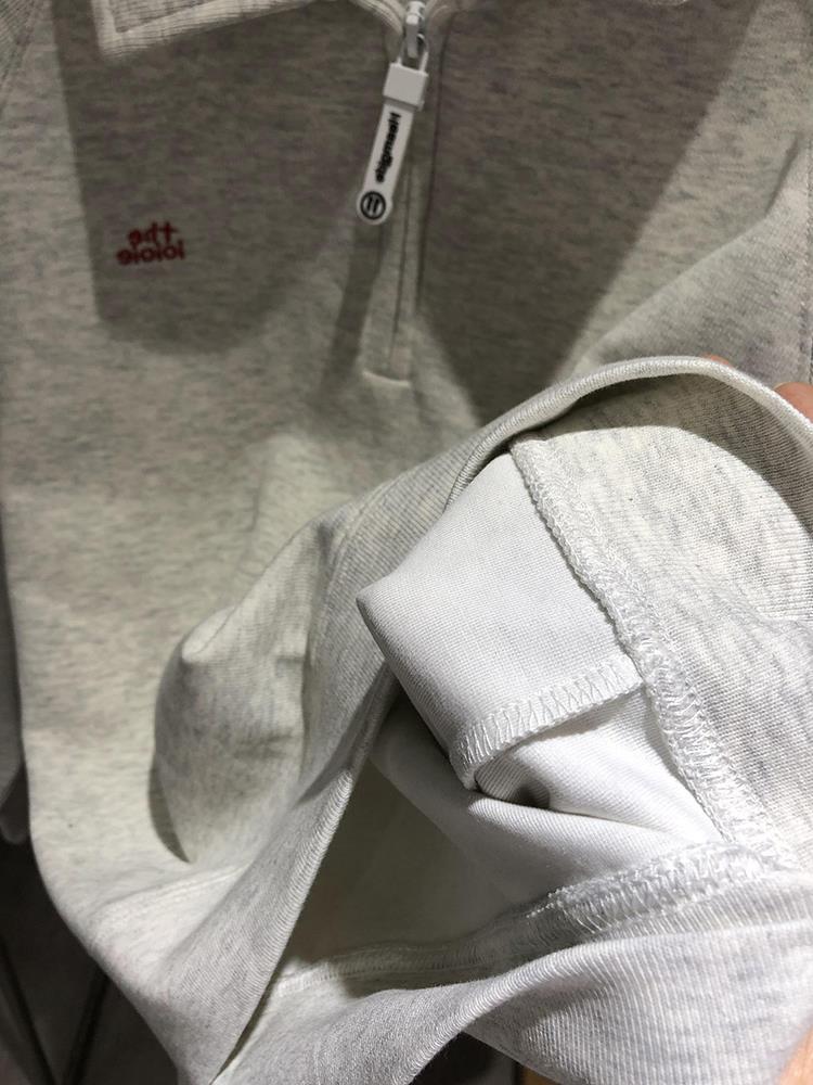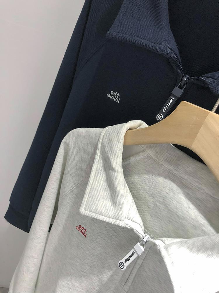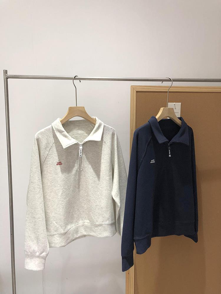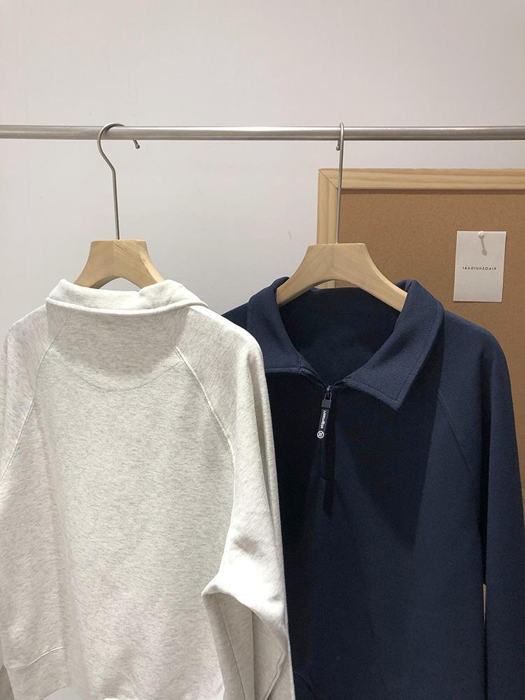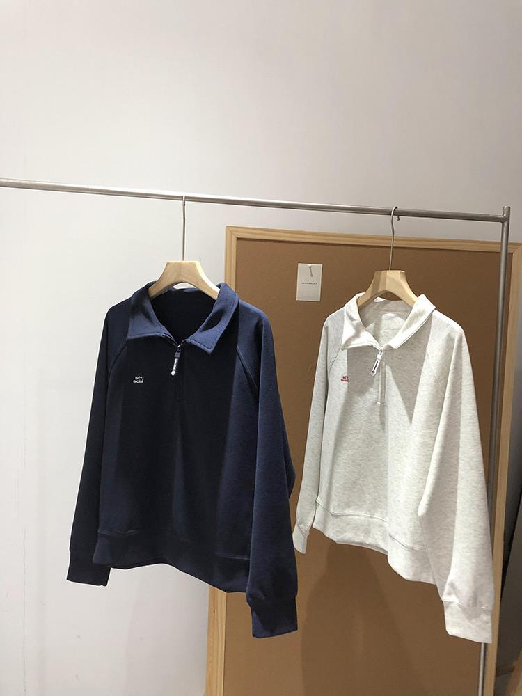 Suéter tipo polo de algodón fino estilo coreano con letras bordadas en gris y blanco, con media cremallera y solapa, holgado y adelgazante en los hombros para mujer