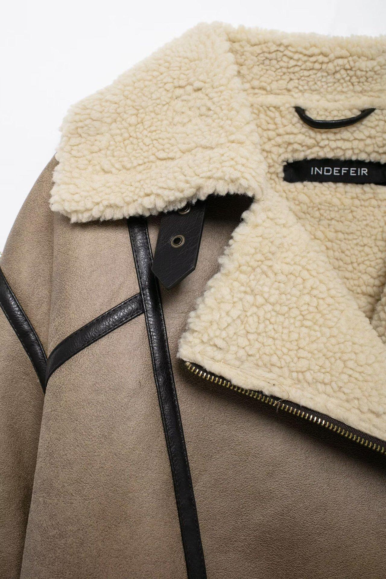 Chaqueta de doble cara con cinturón y dobladillo para mujer europea y americana de comercio exterior transfronterizo de Amazon, otoño e invierno de 2024