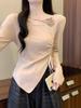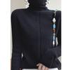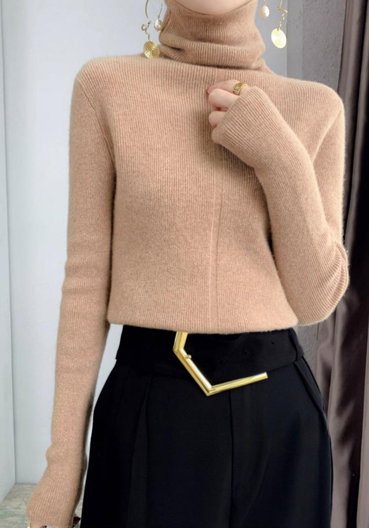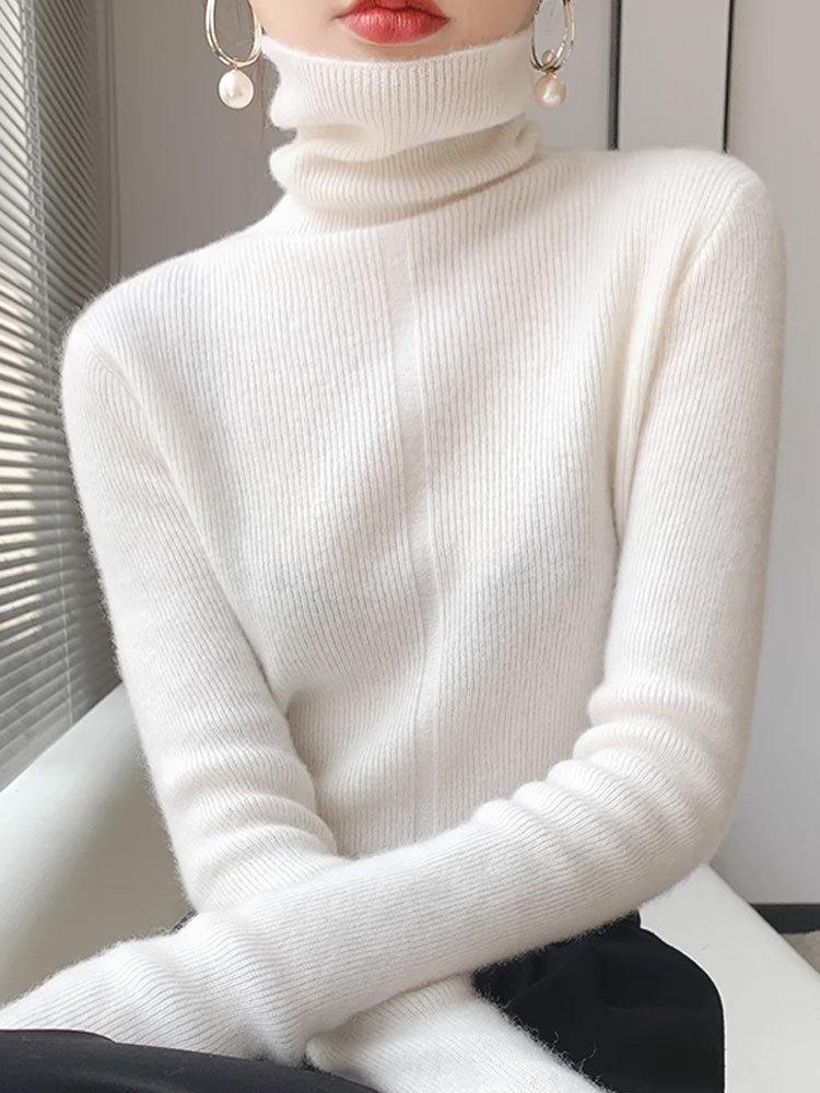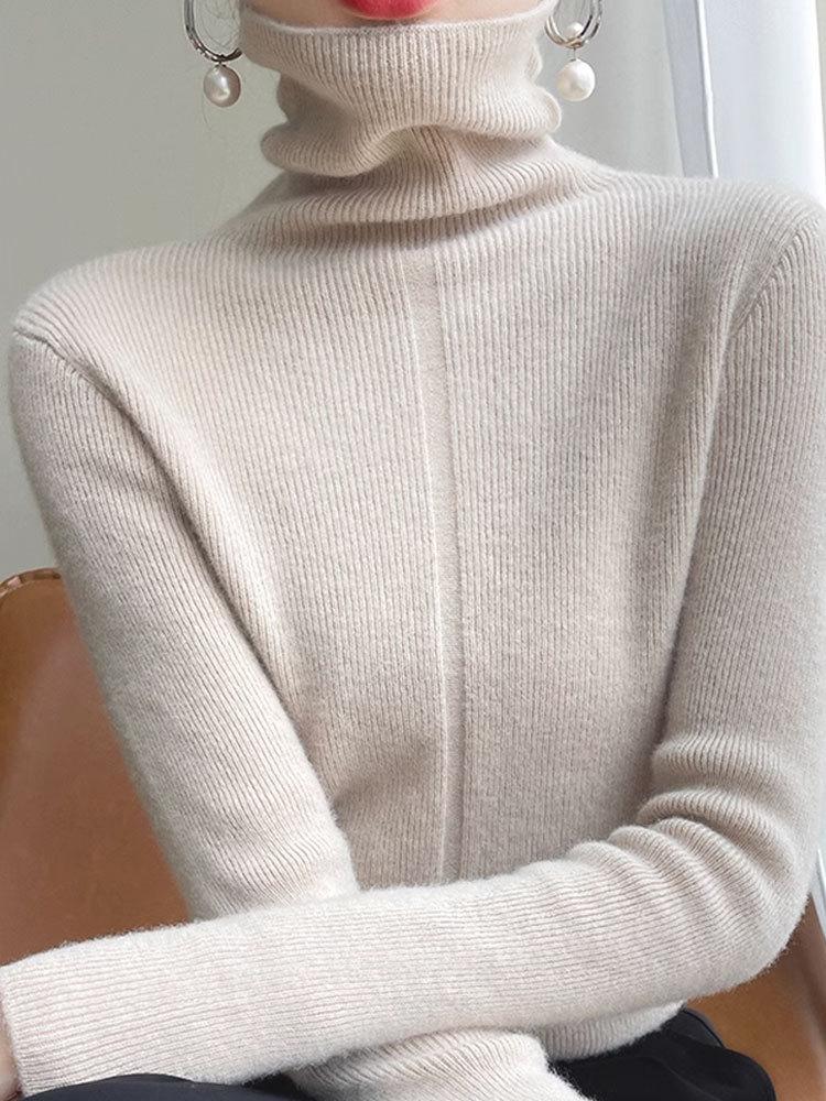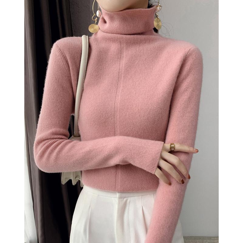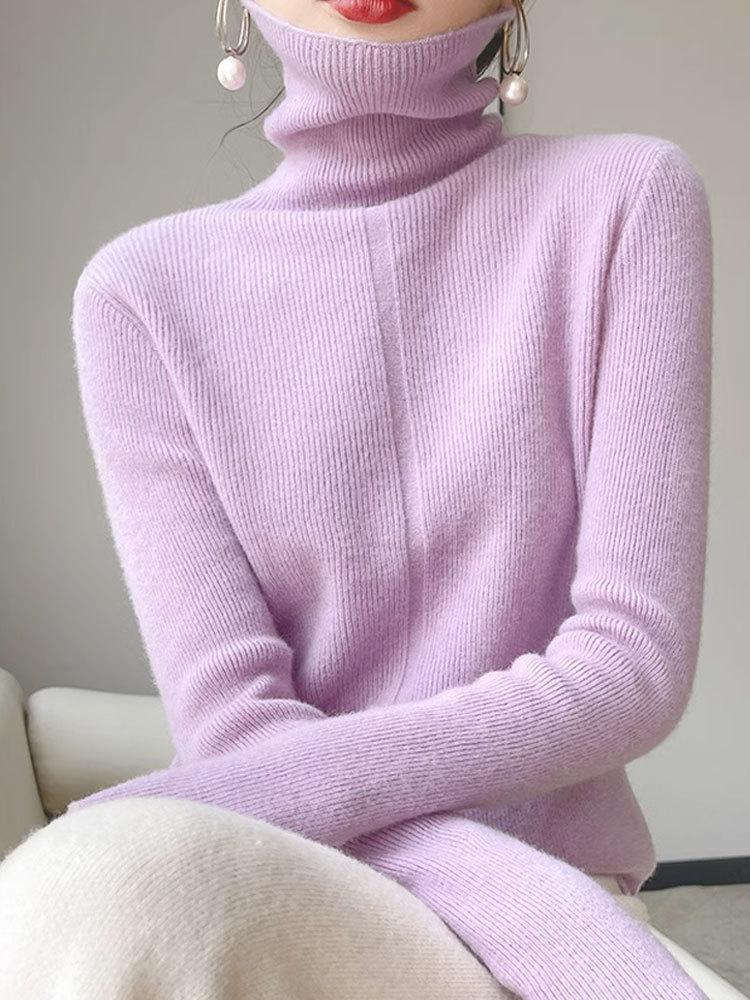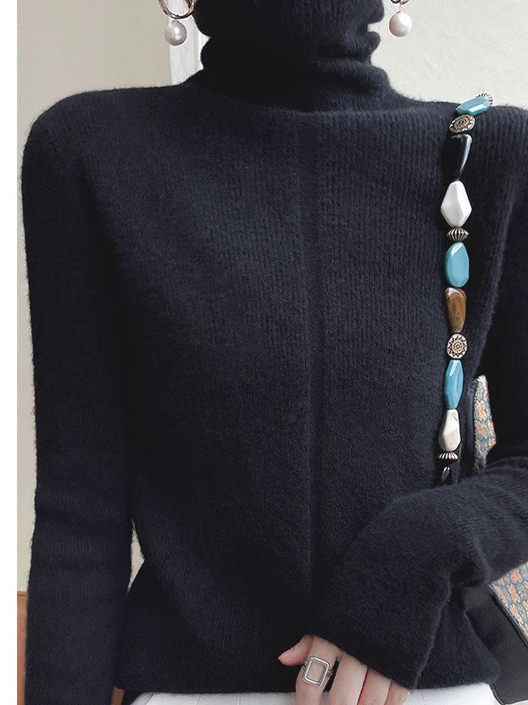 Suéter de punto con cuello alto y diseño desenfadado para mujer, otoño e invierno 2024, con base interior ajustada, estilo occidental, suave y encerado.