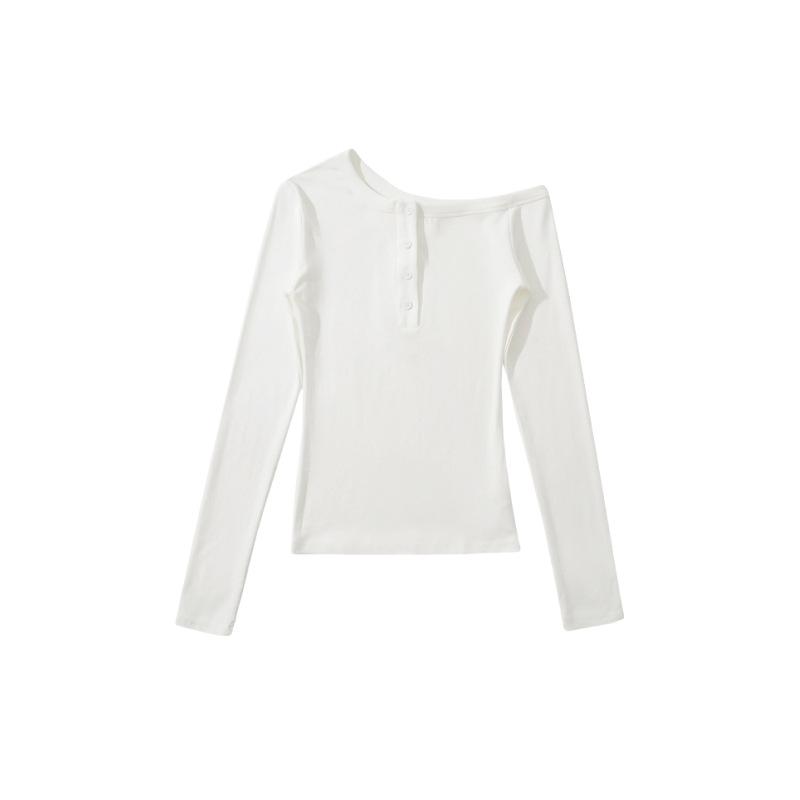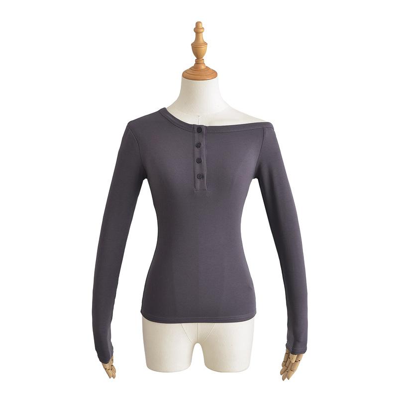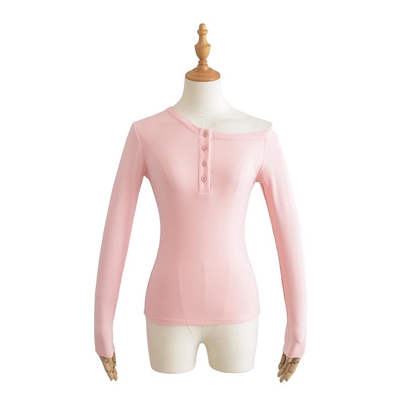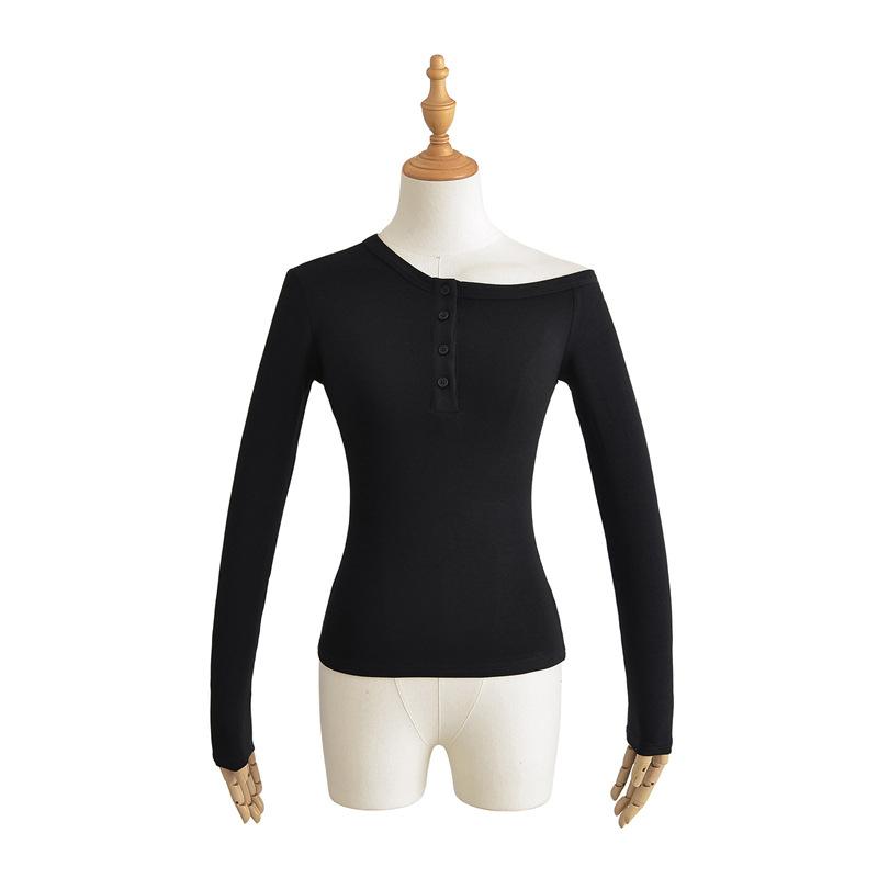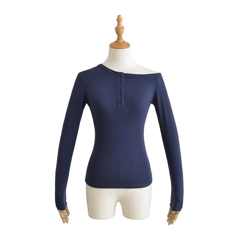 Camiseta de manga larga ajustada con hombros descubiertos y botones para mujer, estilo elegante y sexy, estilo Spice Girl, para principios de otoño