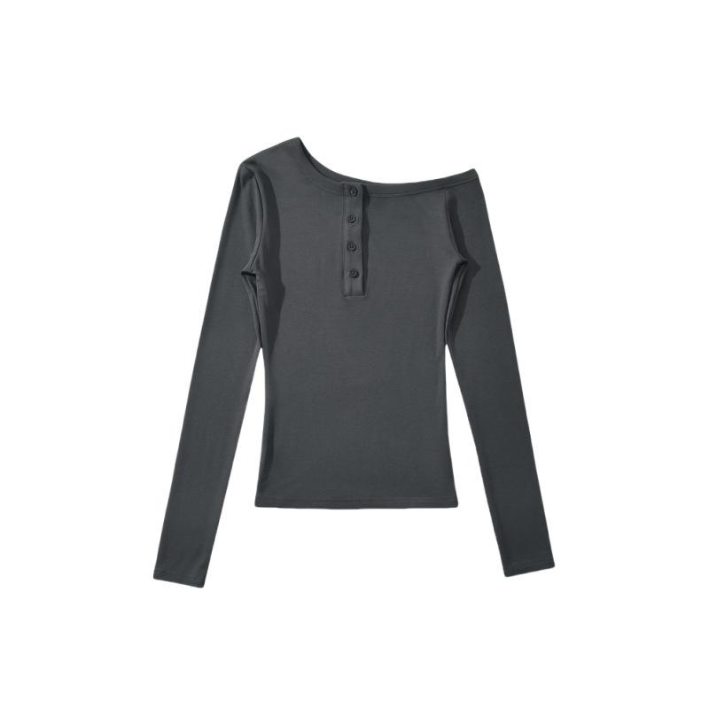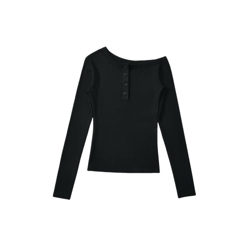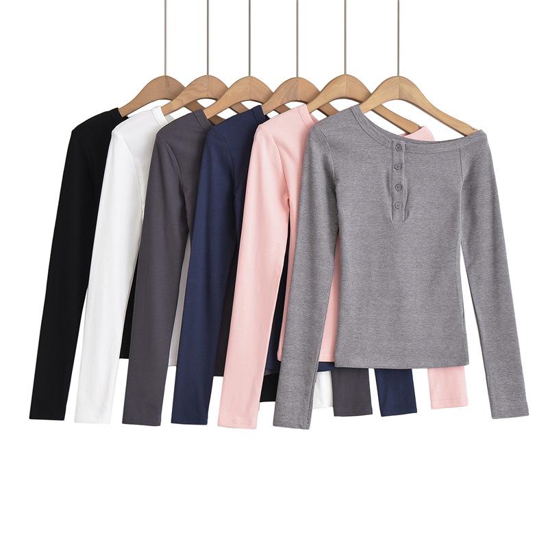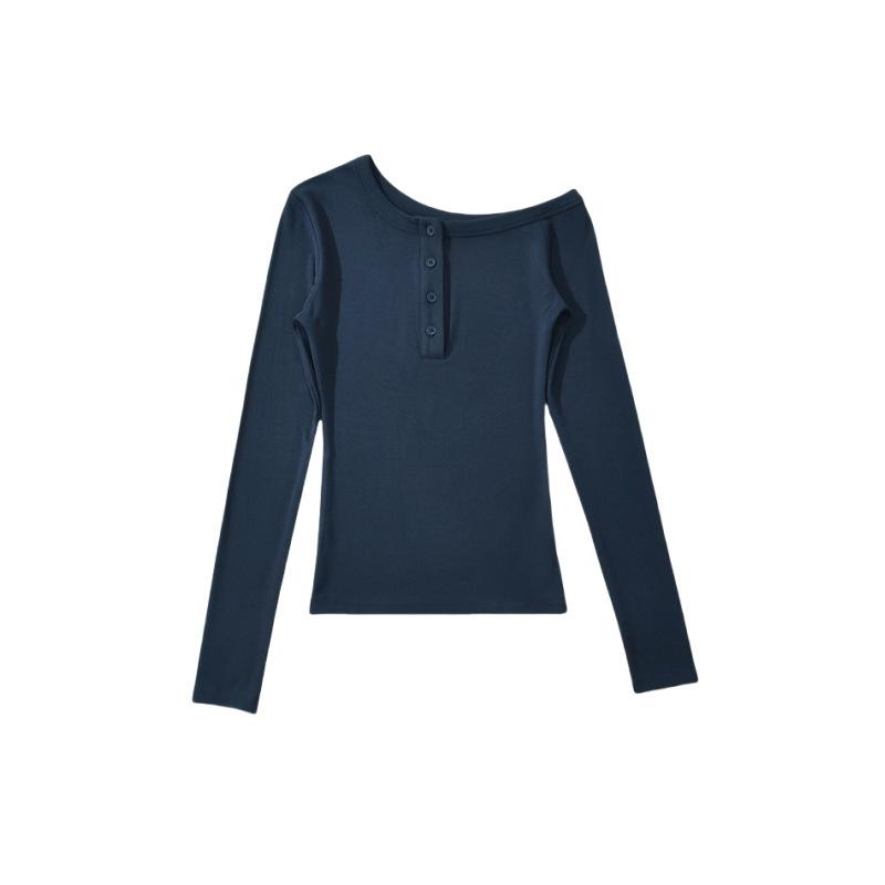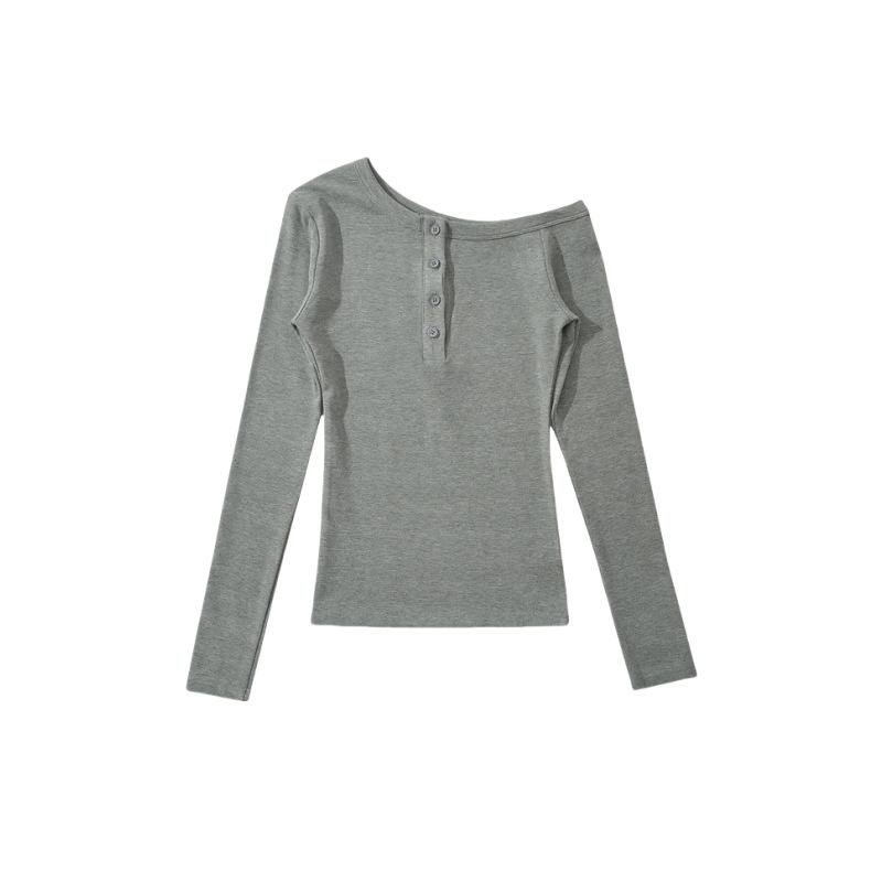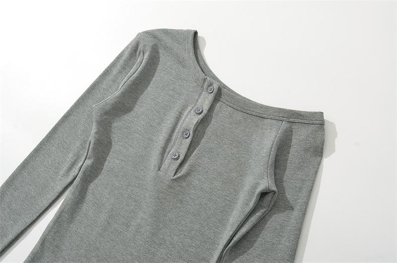 Camiseta de manga larga ajustada con hombros descubiertos y botones para mujer, estilo elegante y sexy, estilo Spice Girl, para principios de otoño
