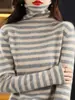Suéter de rayas con cuello alto para mujer, otoño e invierno, nuevo, de alta gama, estilo extranjero, base interior, cuello alto grueso
