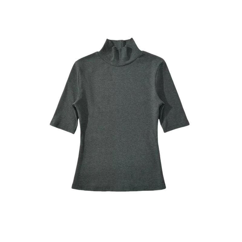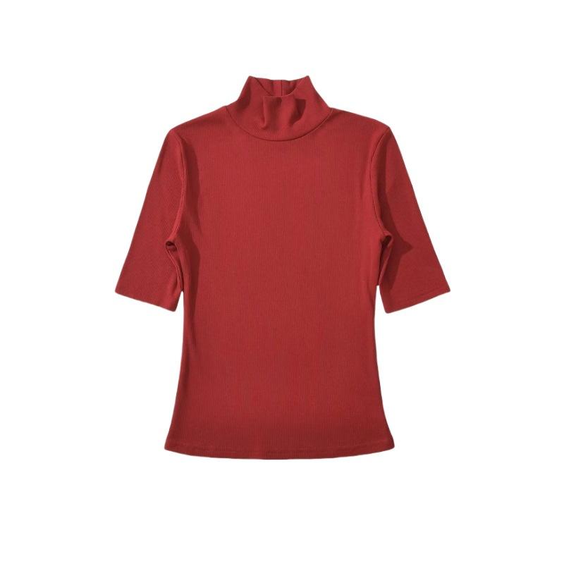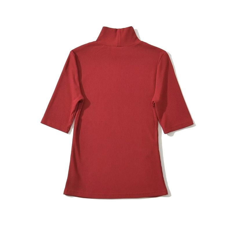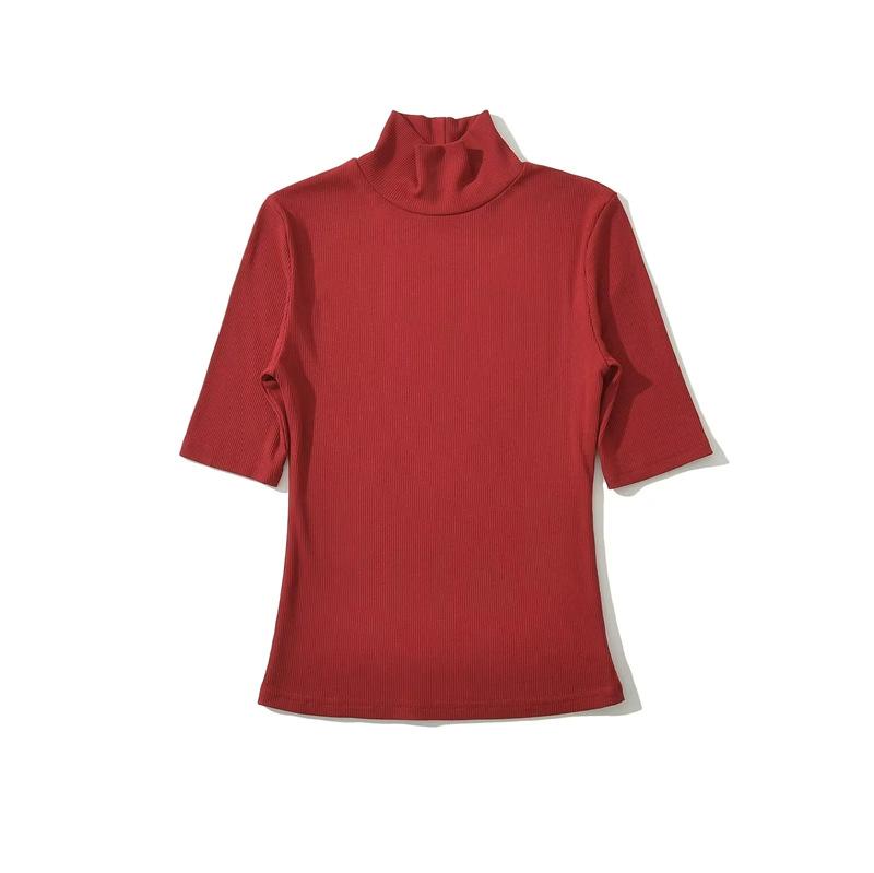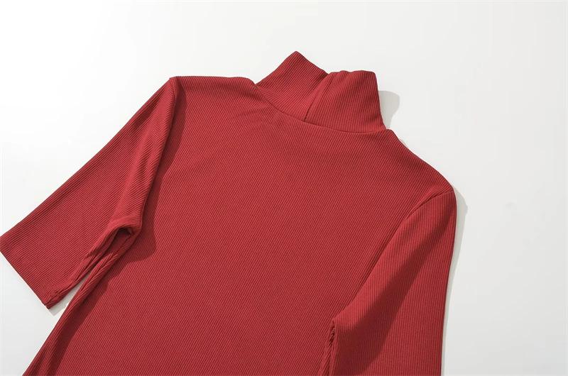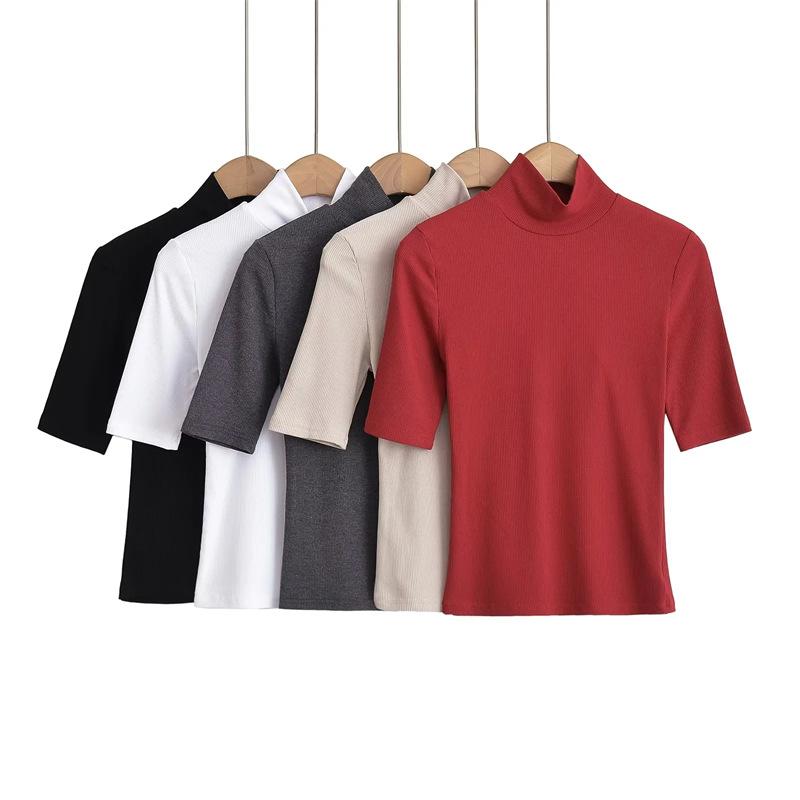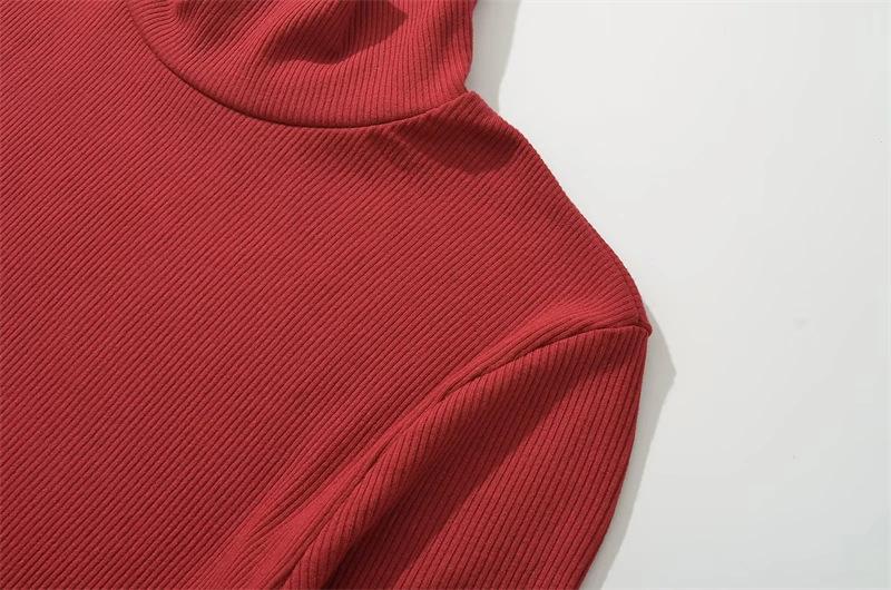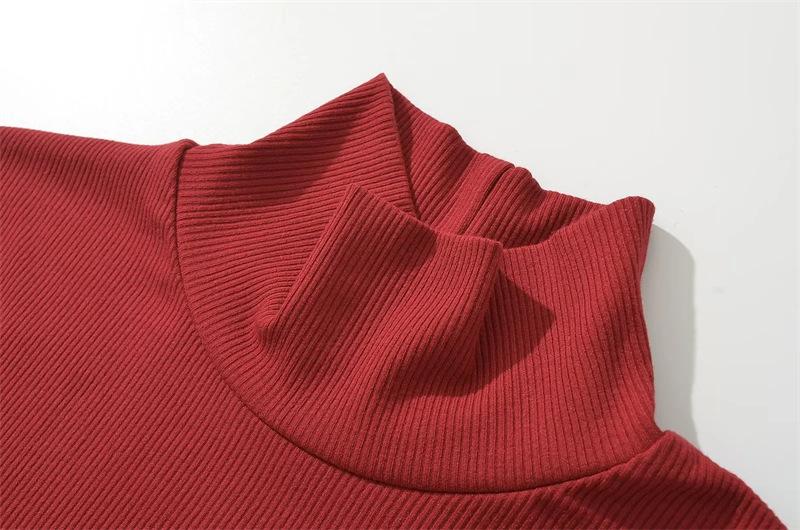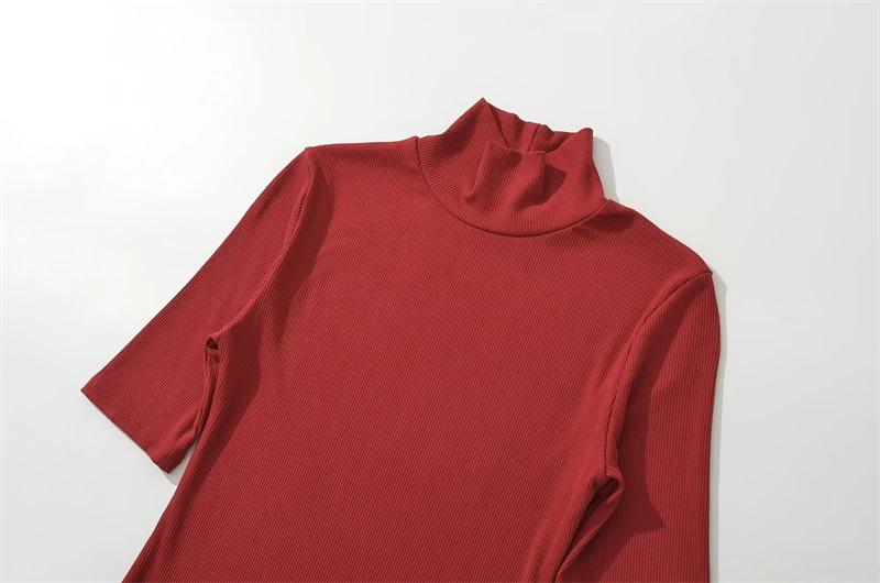 Camiseta de otoño con cuello alto y mangas a los hombros para mujer, estilo europeo y americano, elástica, ajustada, sexy, de base corta.