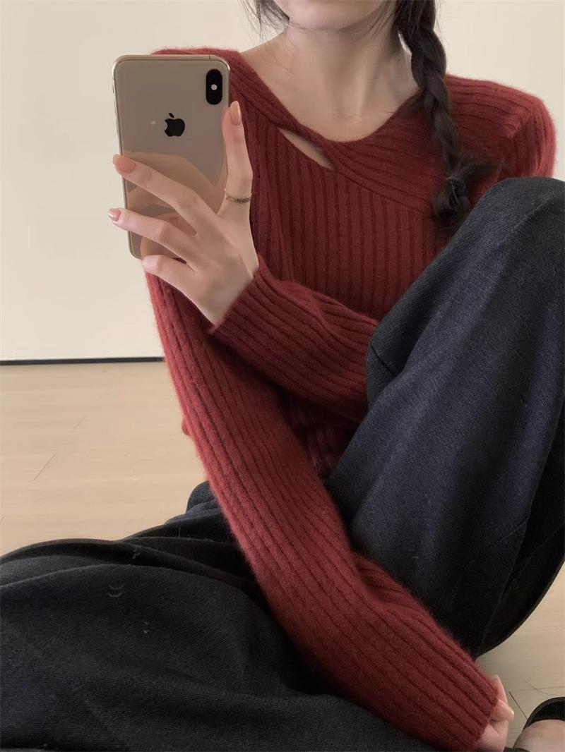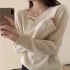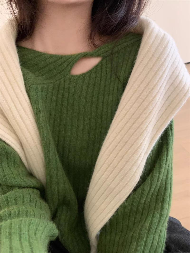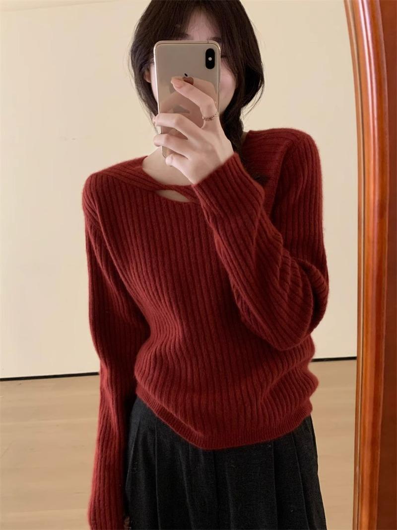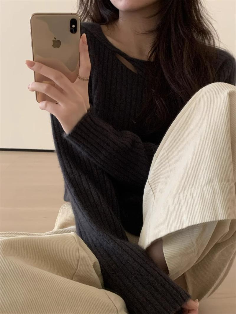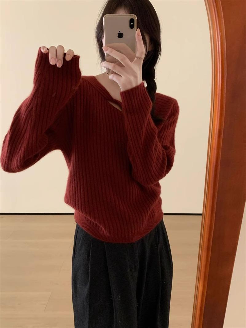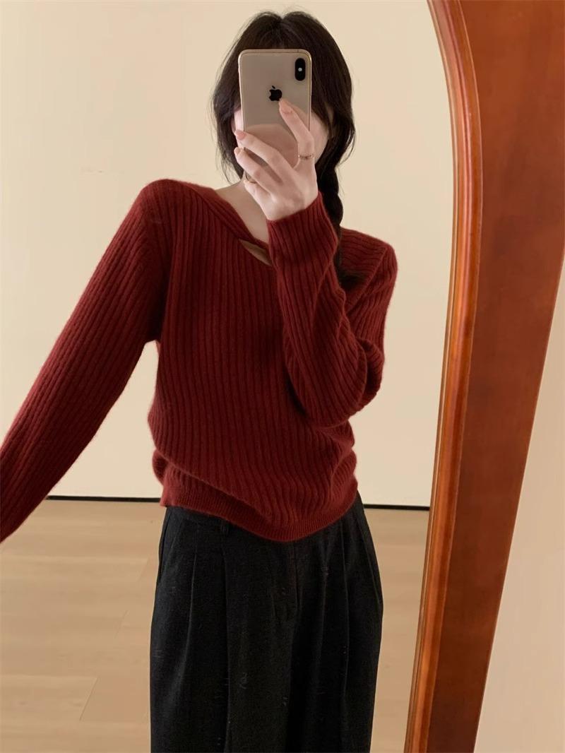 Suéter de punto de lana pura con flores retorcidas a rayas de color sólido nuevo de otoño e invierno para mujer, suéter holgado y ajustado con respaldo