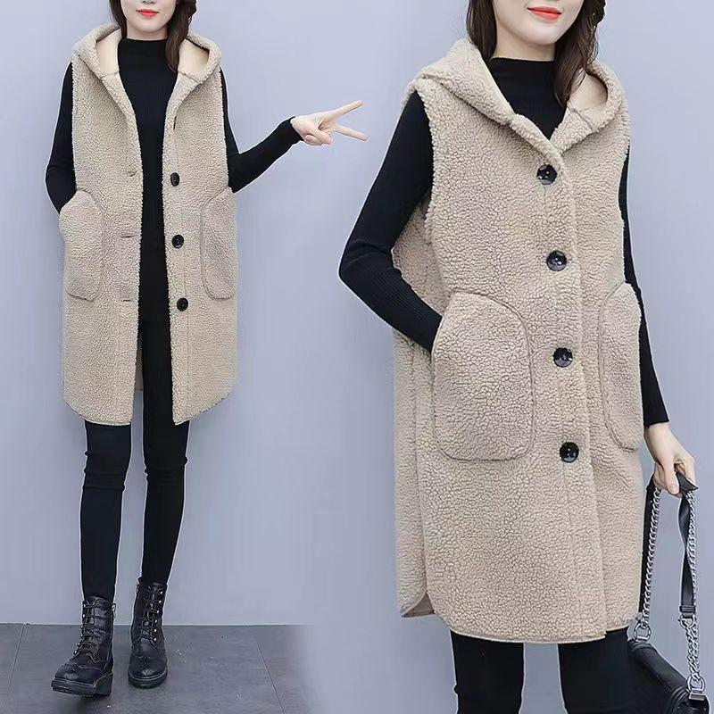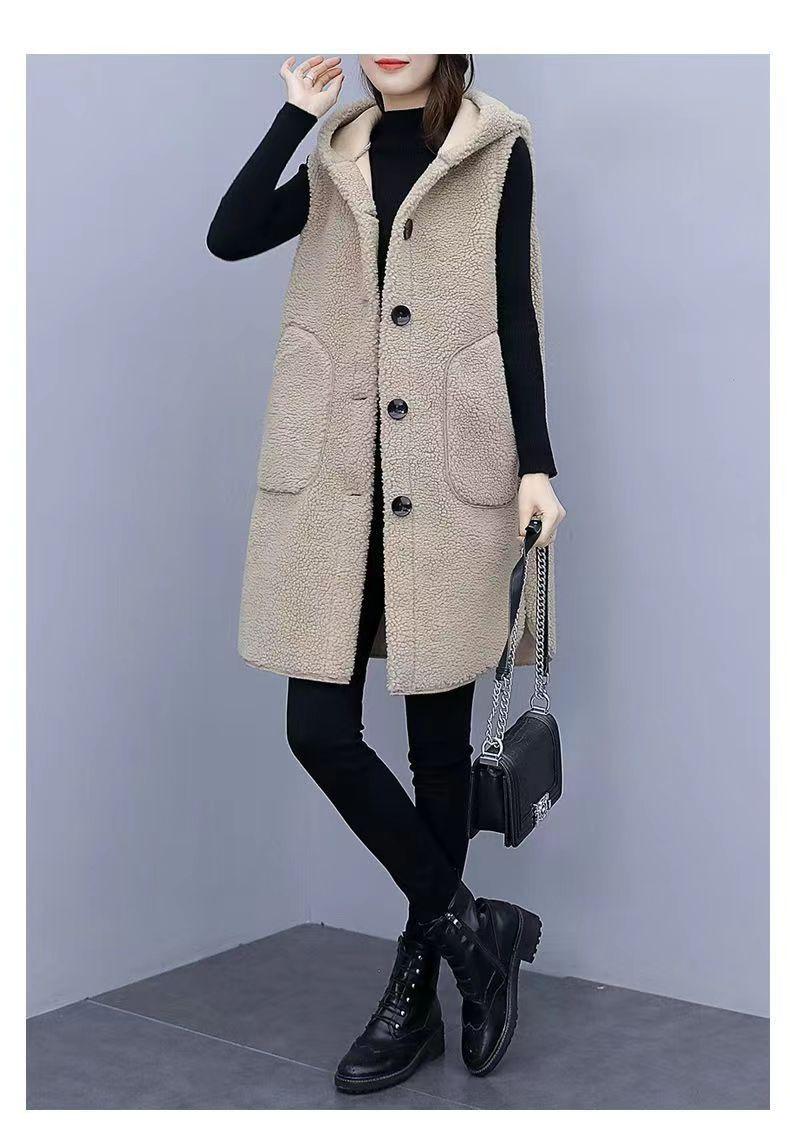 Abrigo de piel de cordero para mujer, invierno 2024, nuevo, talla grande, holgado, largo medio, con capucha, cálido, moderno.