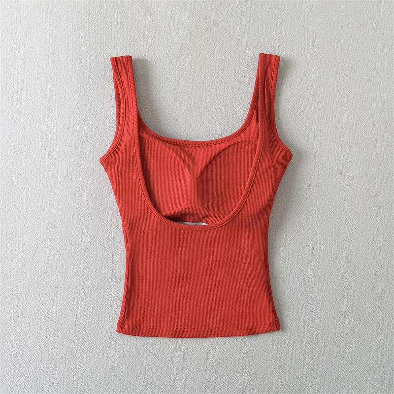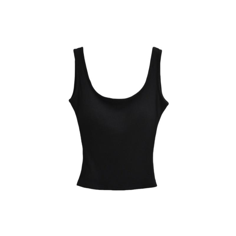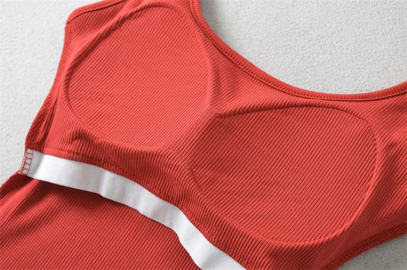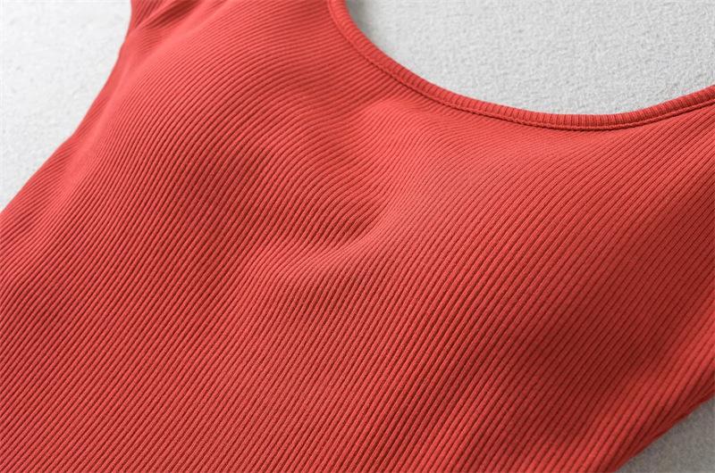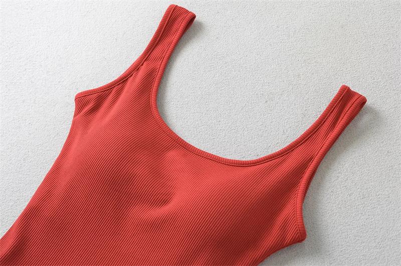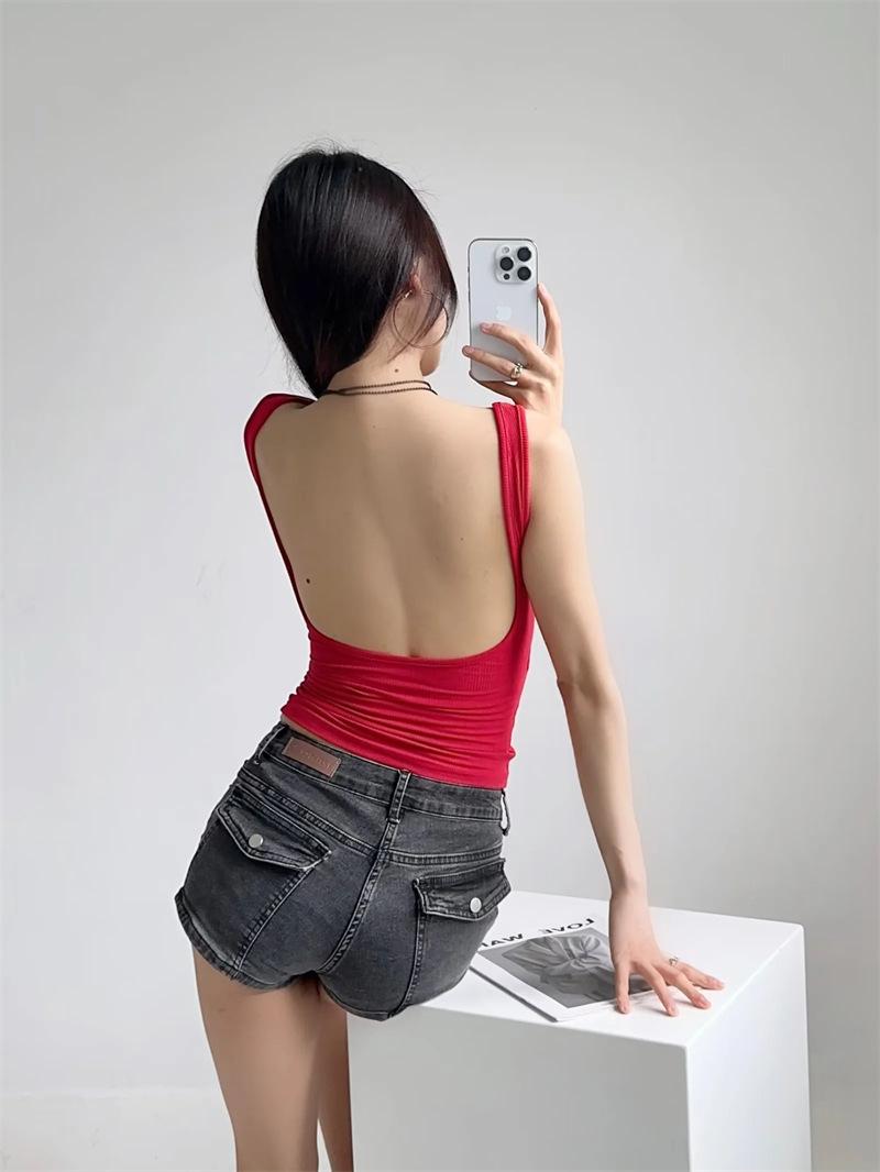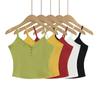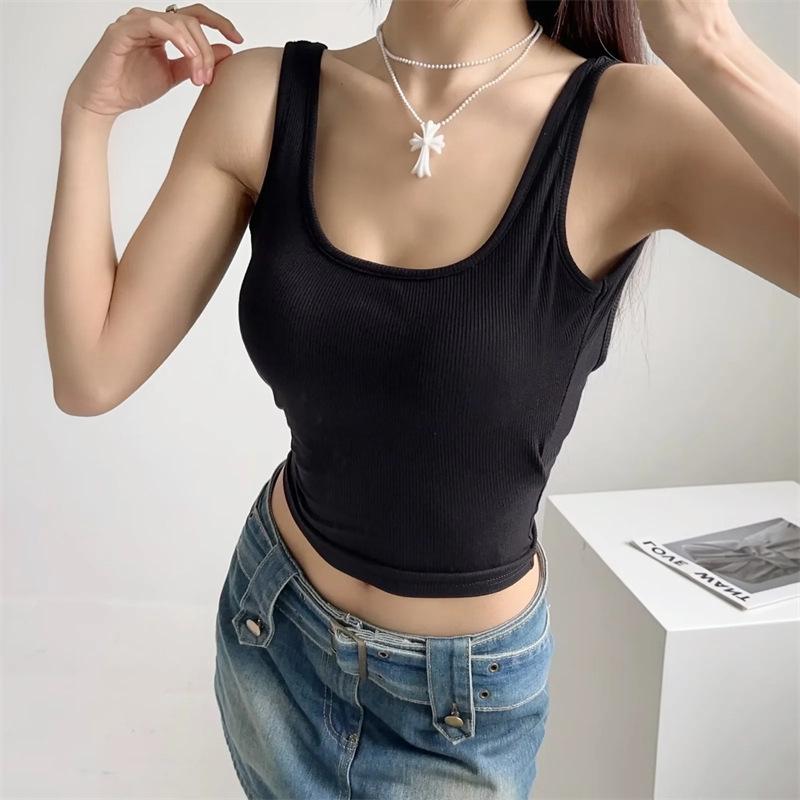 Camisola sexy estilo americano grande sin mangas con espalda descubierta y almohadilla para el pecho, básica, simple, ajustada, de color sólido, base corta.