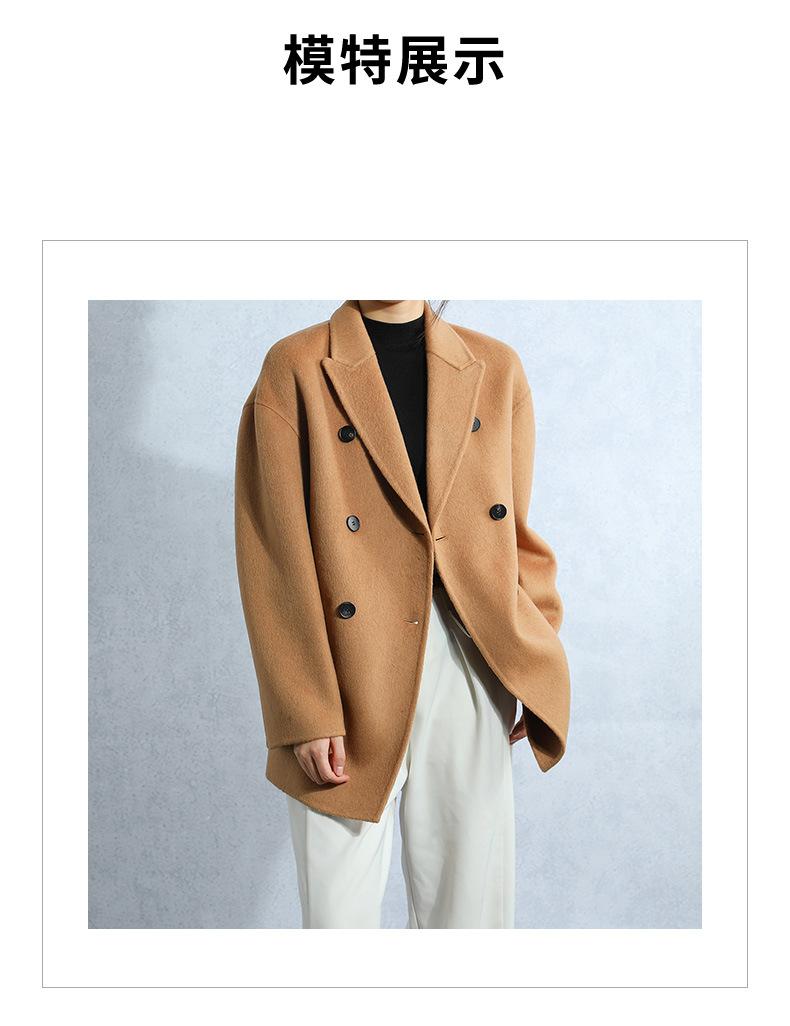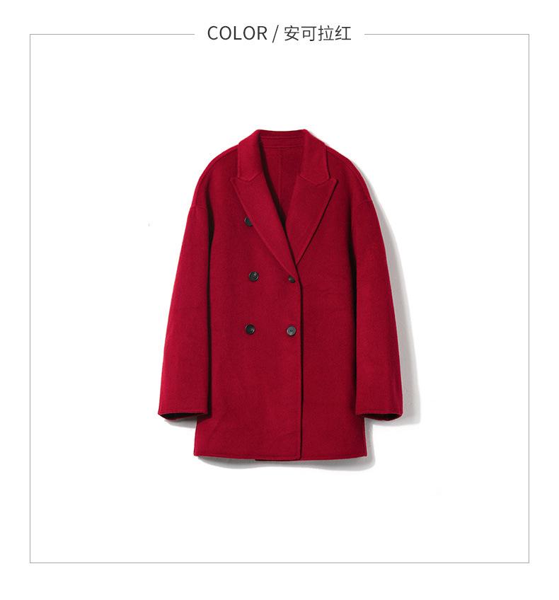 Abrigo nuevo de otoño e invierno, abrigo de lana de doble cara, abrigo de lana de cachemira, elegante abrigo informal cruzado para mujer