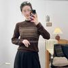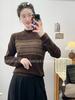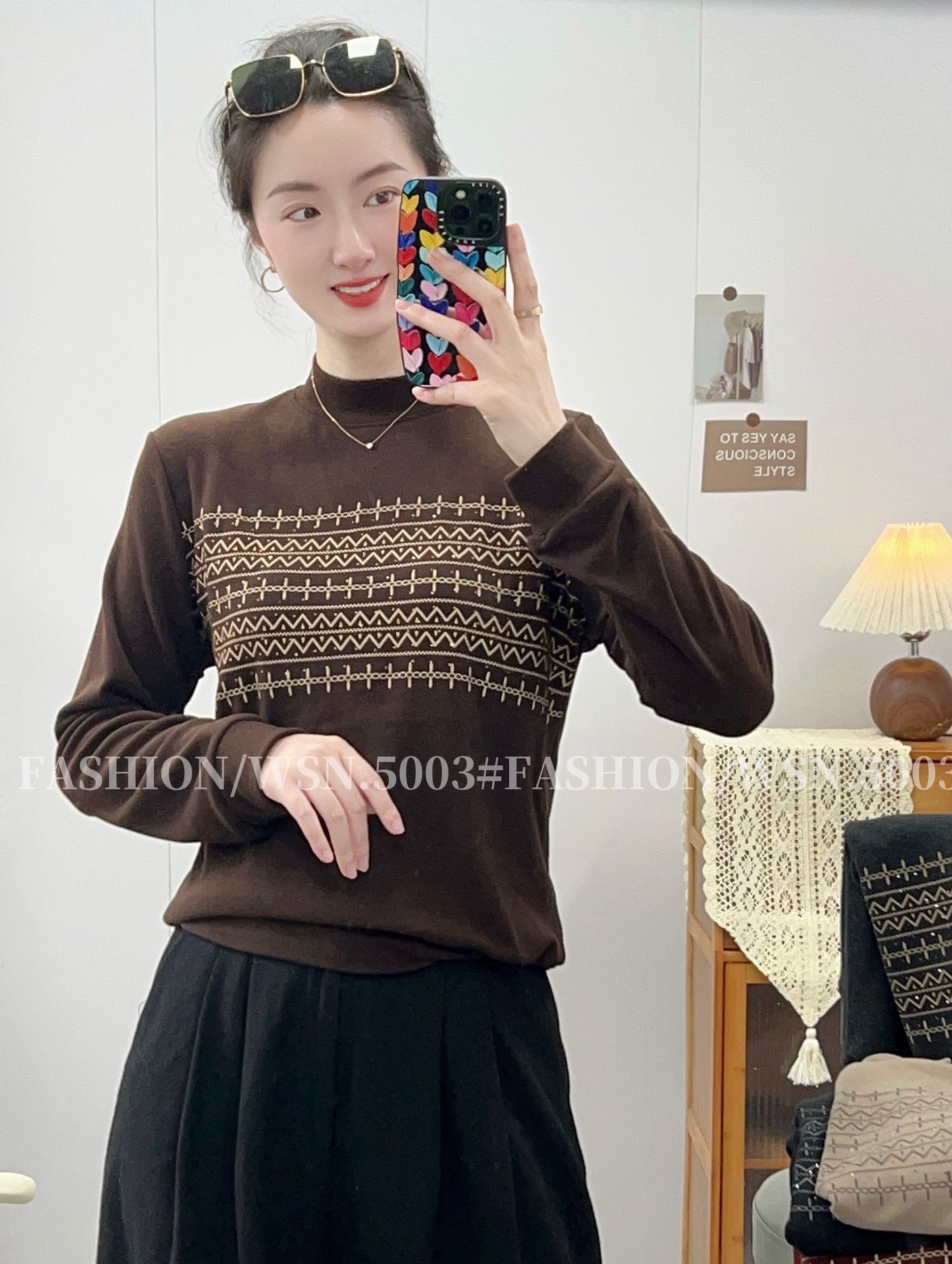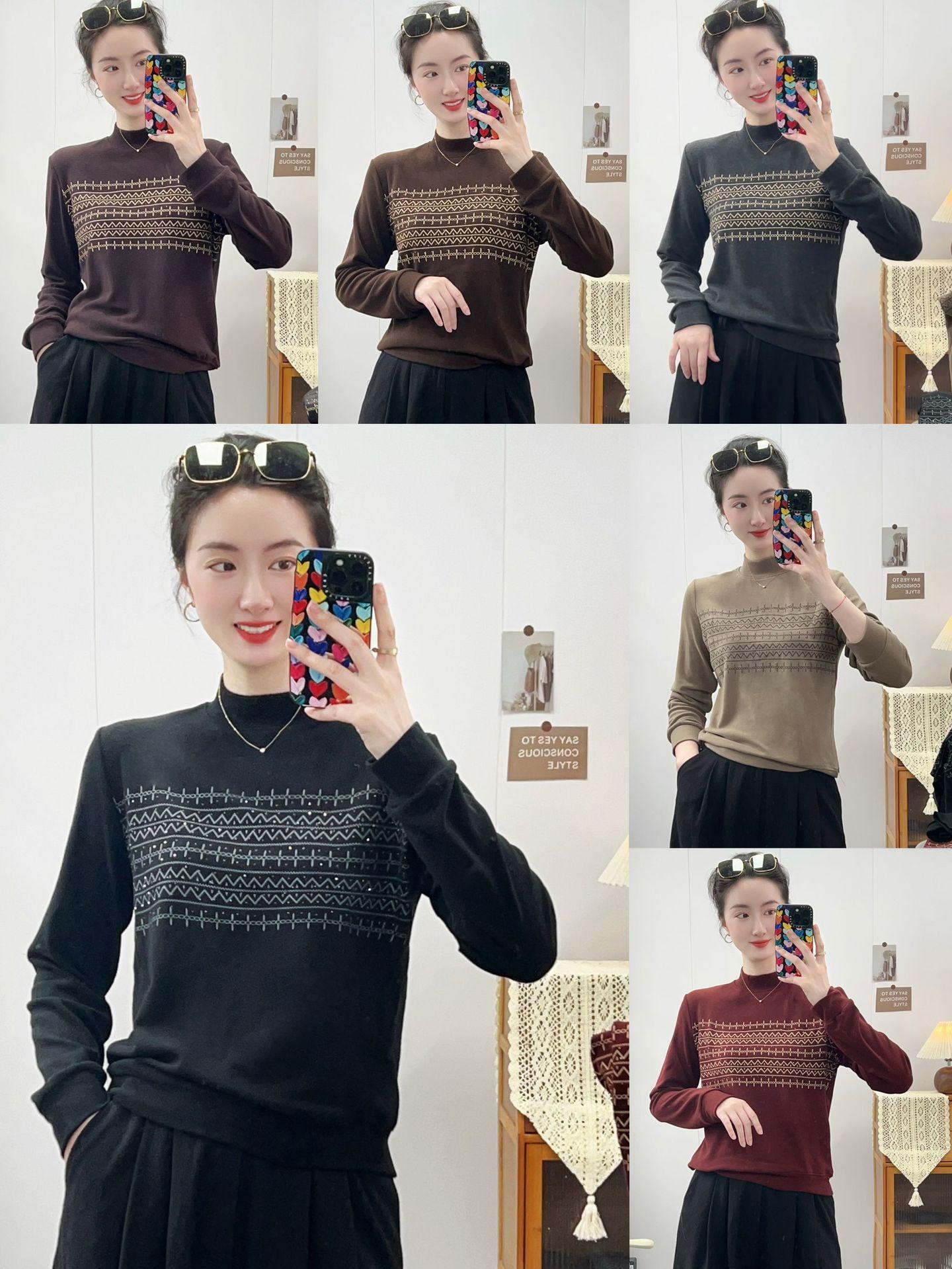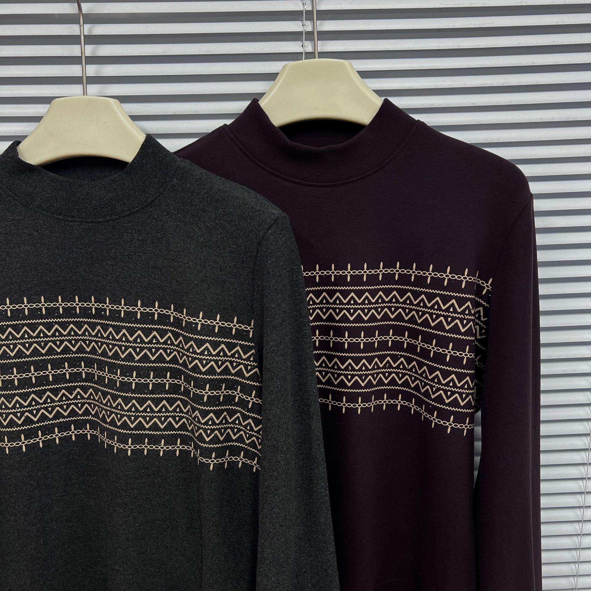 2024 invierno nuevo flocado casual jersey cuello alto manga larga camiseta básica para mujer top moderno 5003