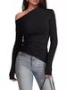 Camiseta de otoño para mujer, estilo Spice Girls, con hombros al descubierto, sexy, de manga larga, de seda color leche, estilo europeo y americano.
