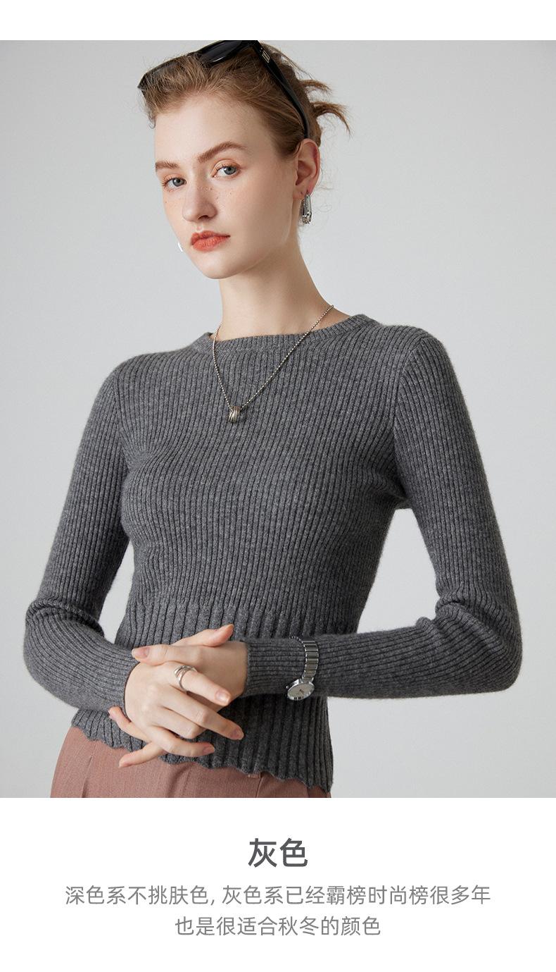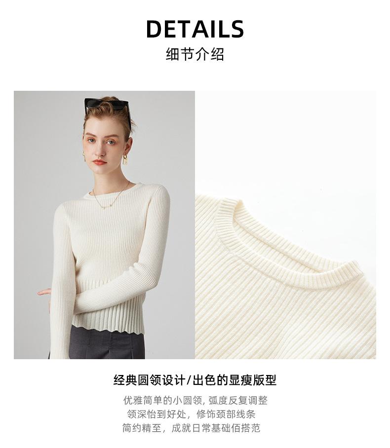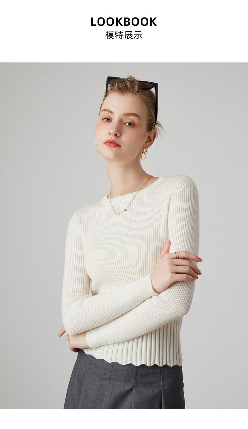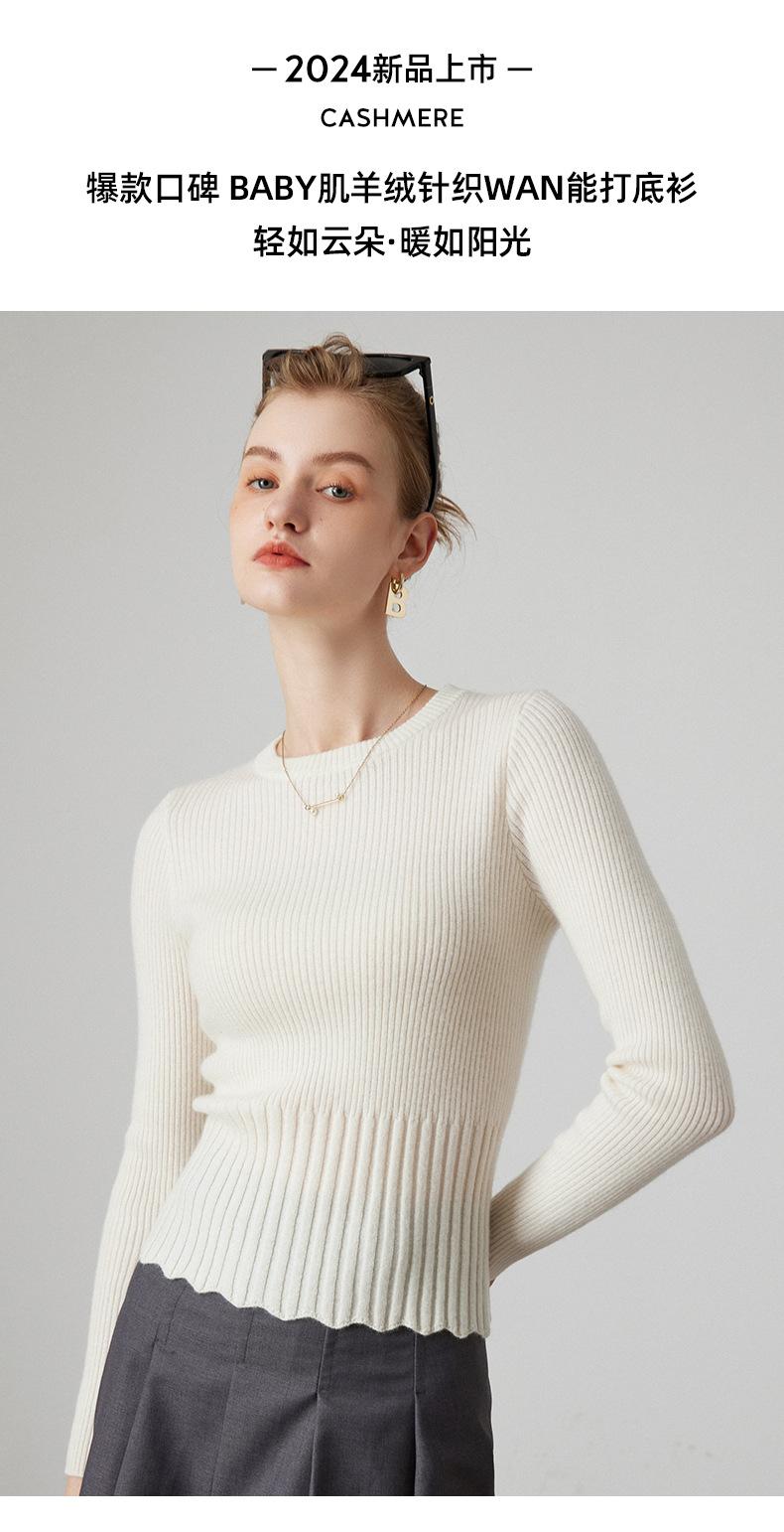 Suéter de Cachemira para Mujer Jersey Ajustado Interior Cálido Suéter para Mujer Otoño e Invierno Corto Cuello Redondo Manga Larga Tejido Top Base