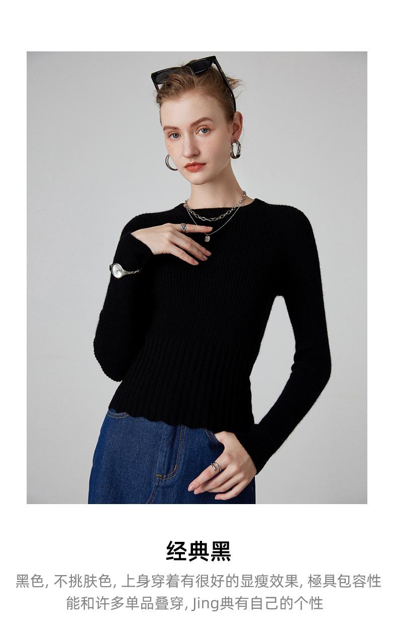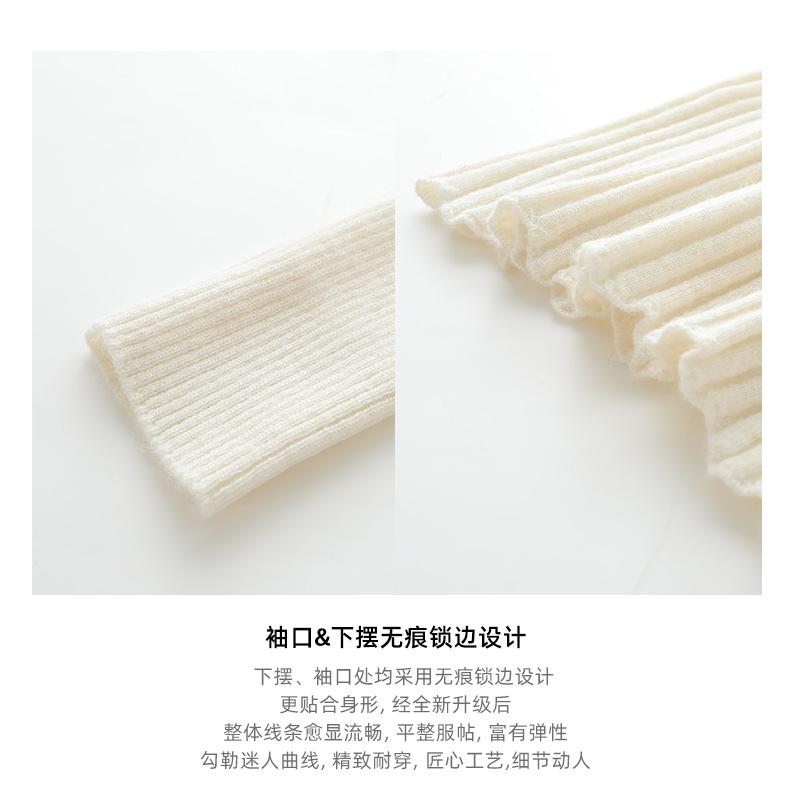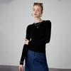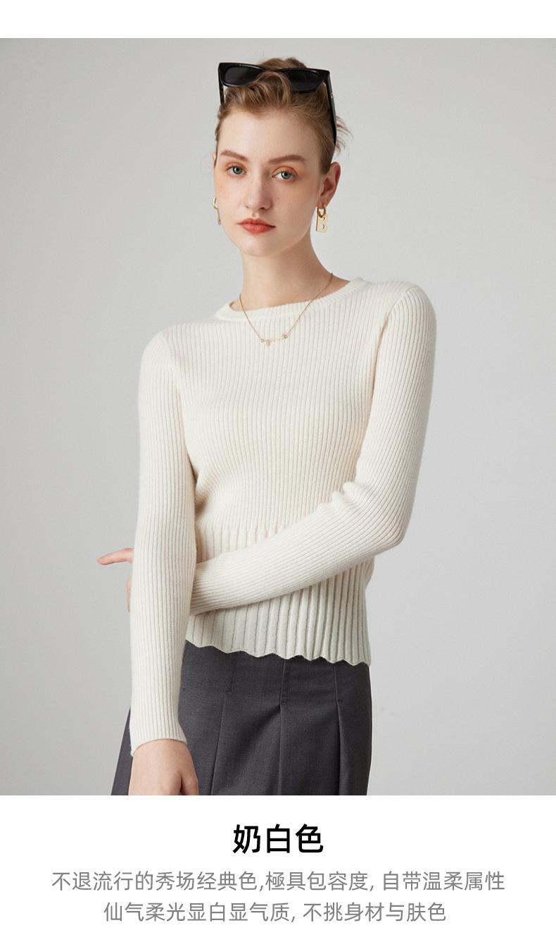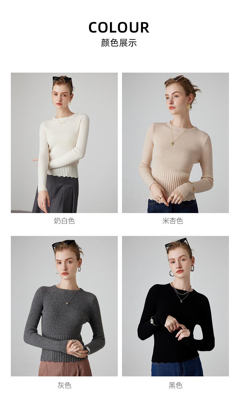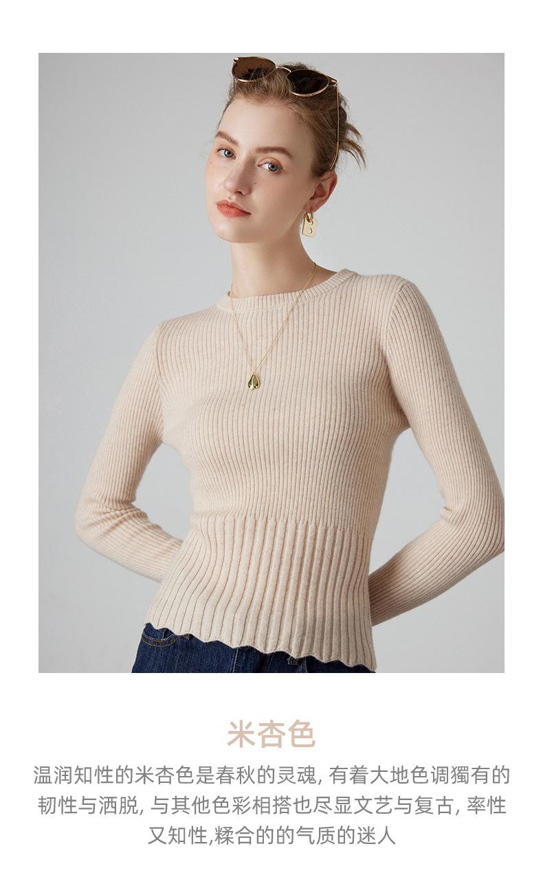 Suéter de Cachemira para Mujer Jersey Ajustado Interior Cálido Suéter para Mujer Otoño e Invierno Corto Cuello Redondo Manga Larga Tejido Top Base