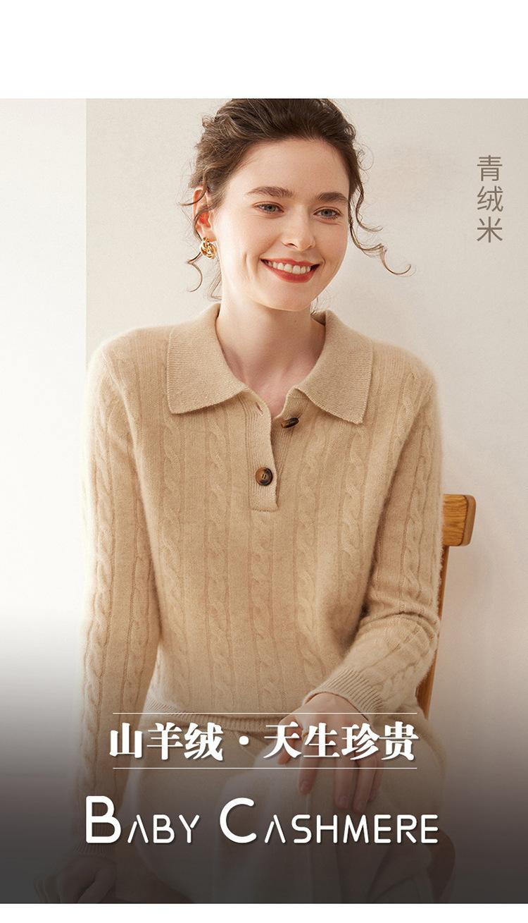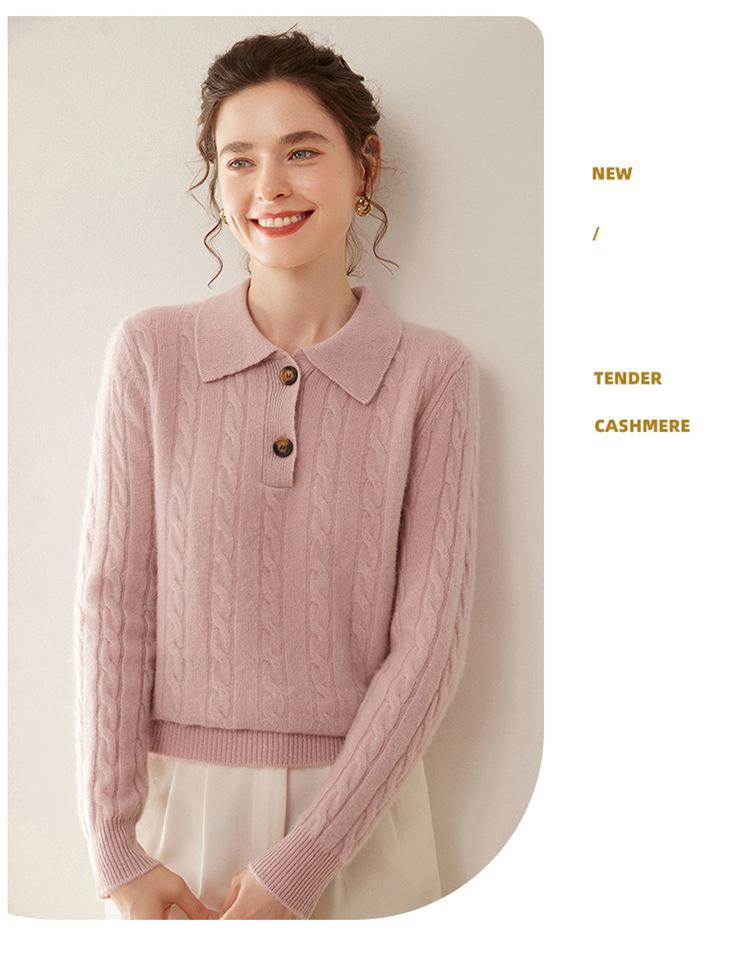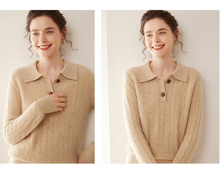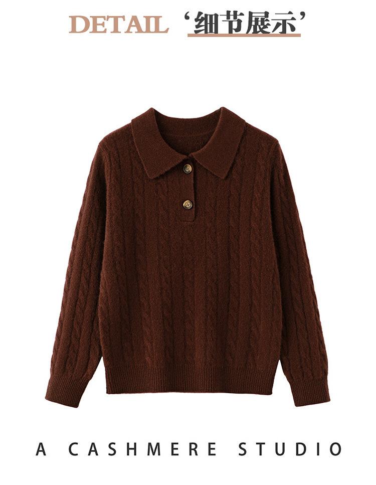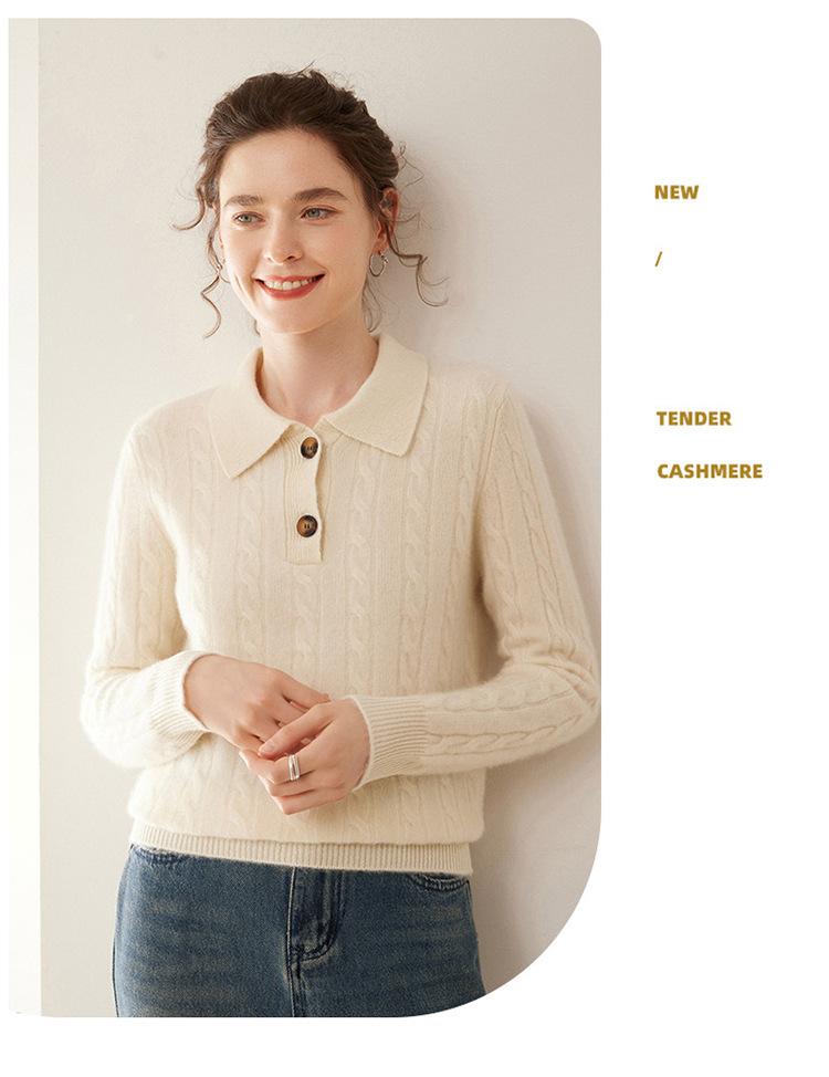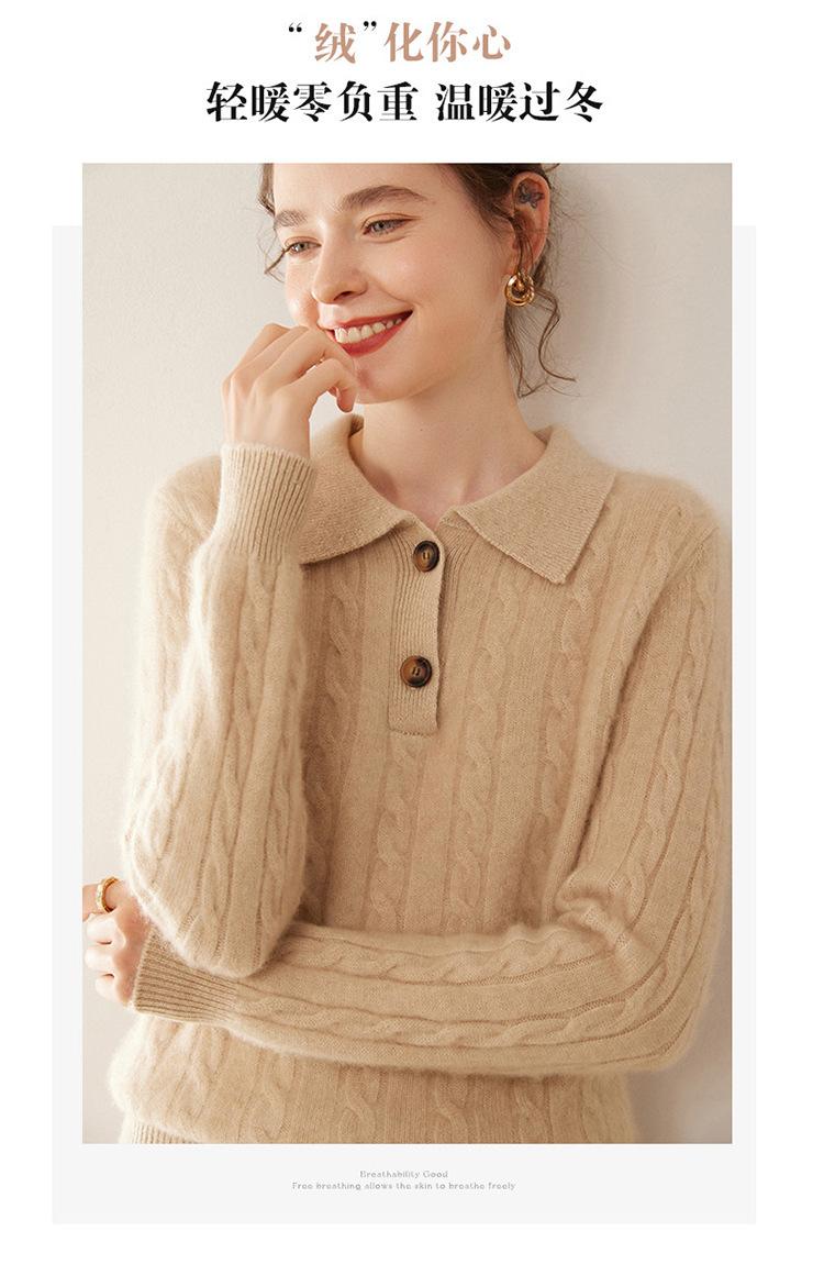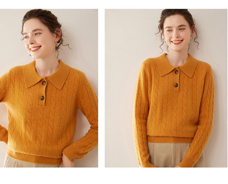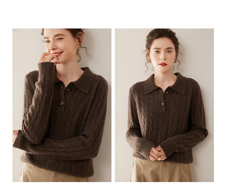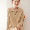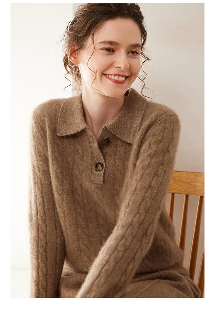Nuevo Suéter de Cachemira Grueso de Punto Cable Vintage con Cuello Polo Otoño/Invierno 2025 para Mujer Jersey Holgado de Manga Larga Camisa Básica de Punto
