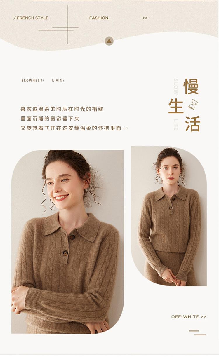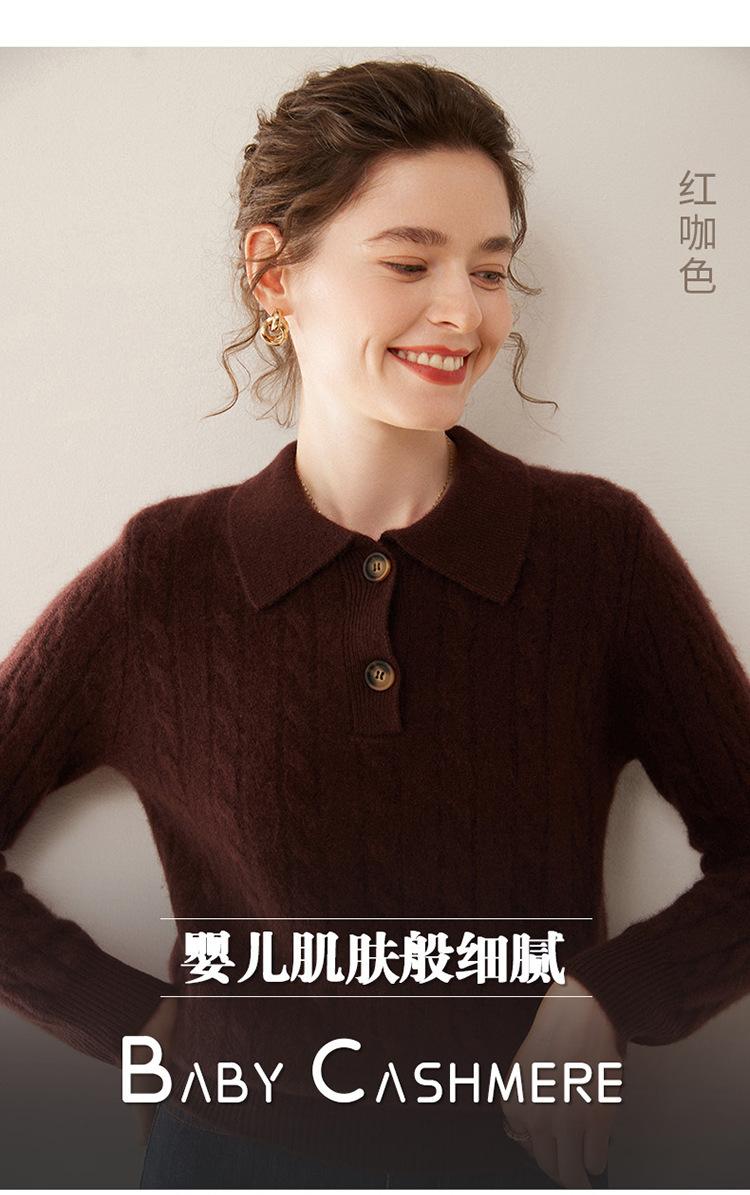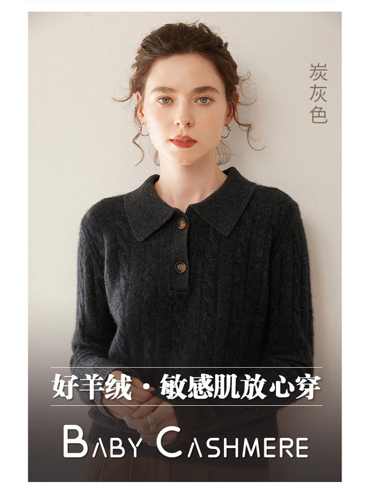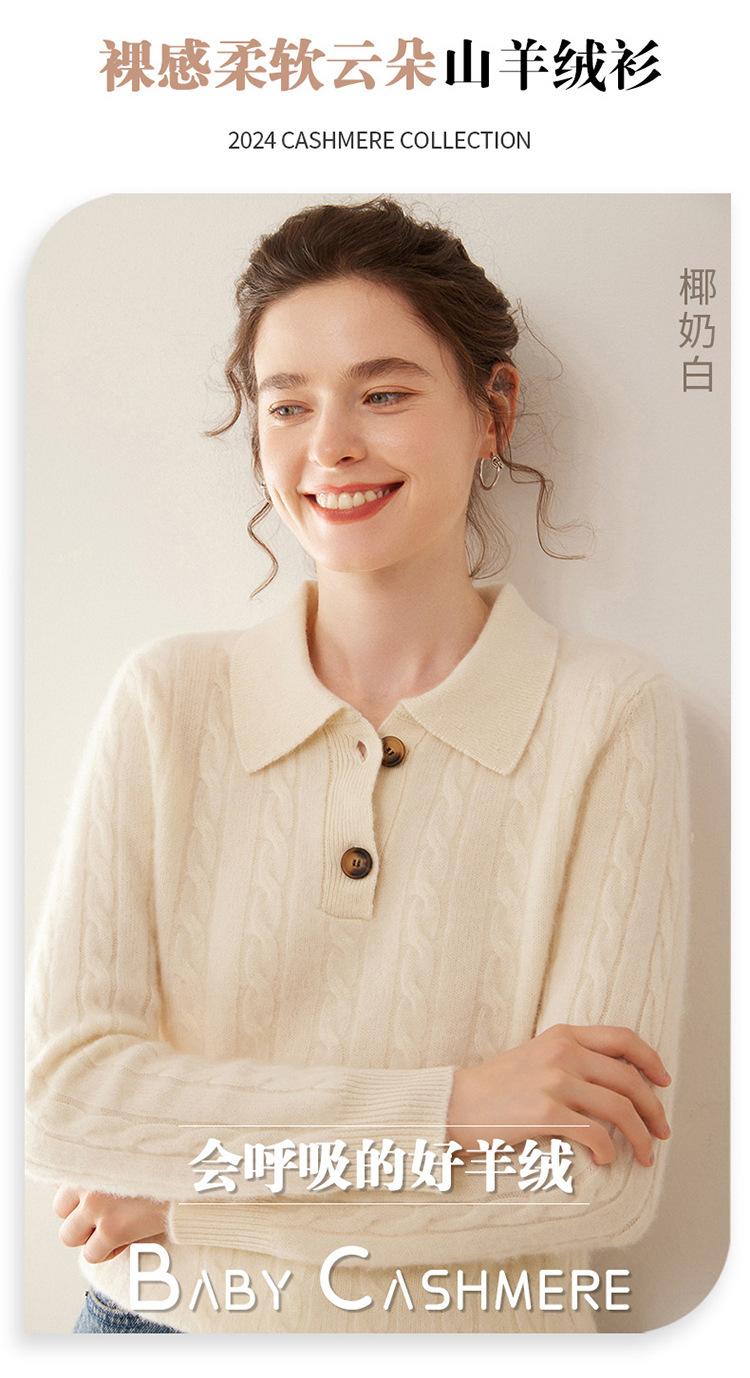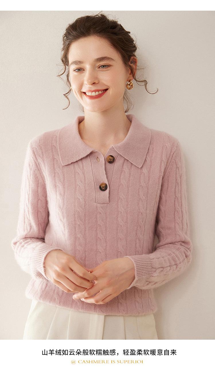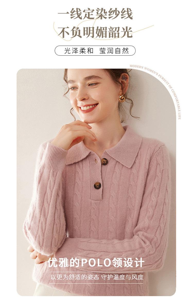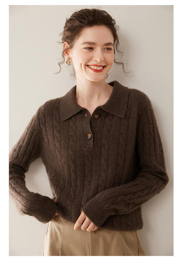 Nuevo Suéter de Cachemira Grueso de Punto Cable Vintage con Cuello Polo Otoño/Invierno 2025 para Mujer Jersey Holgado de Manga Larga Camisa Básica de Punto
