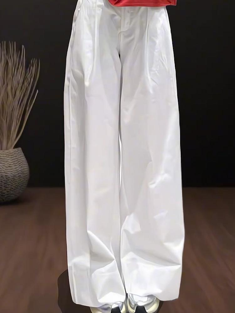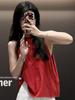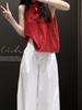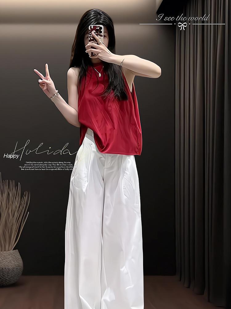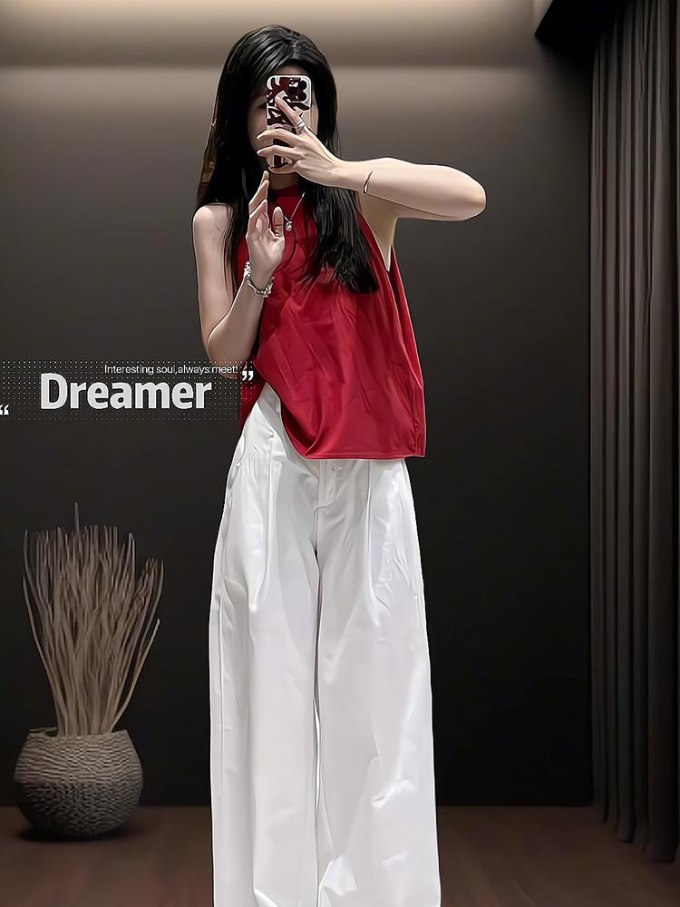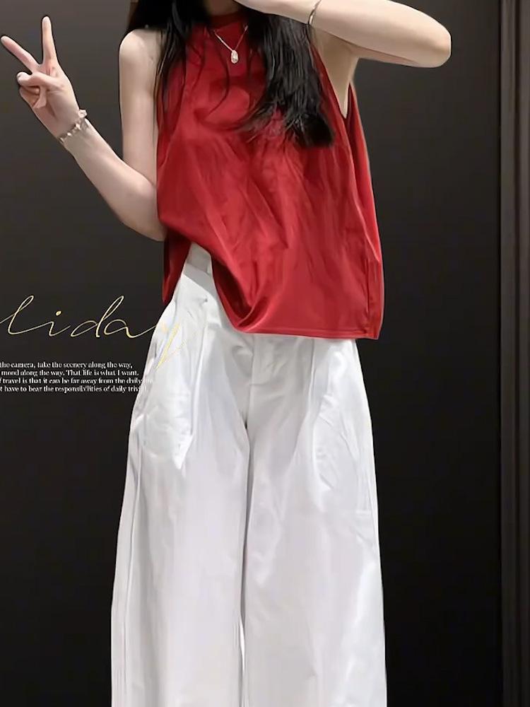 Conjunto de dos piezas de camiseta sin mangas con cuello rojo, pantalones anchos y sueltos de moda coreana informal de verano 2024