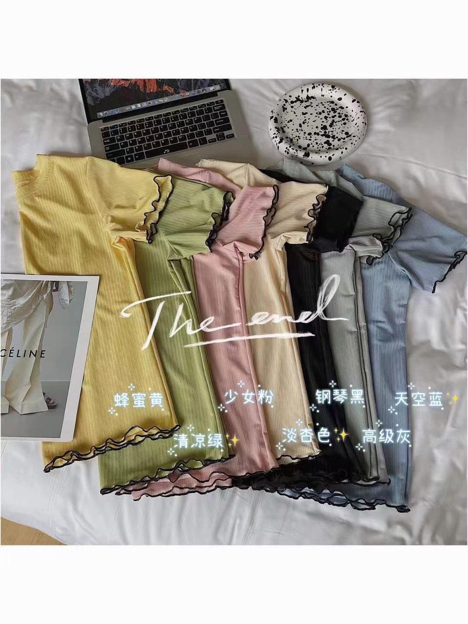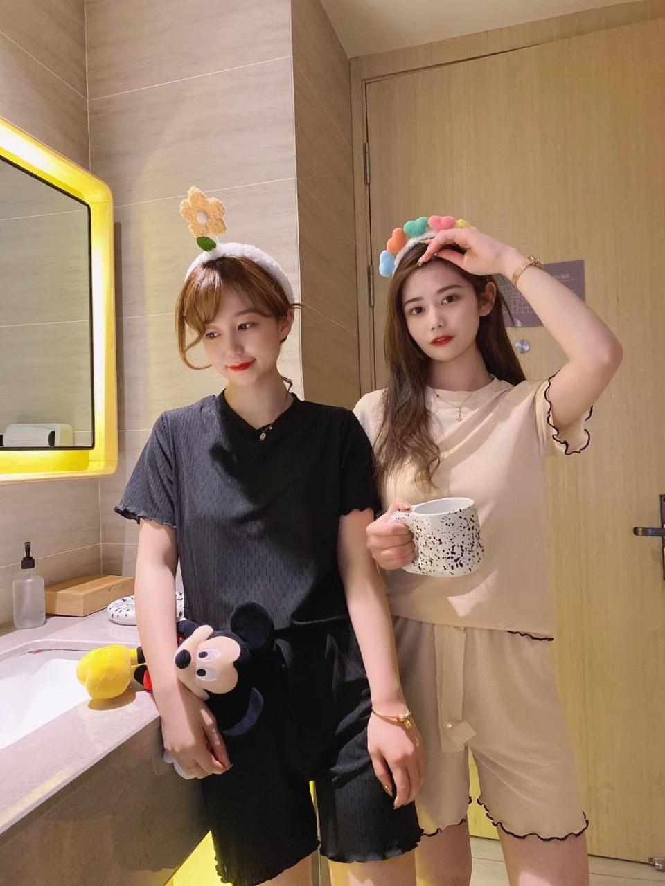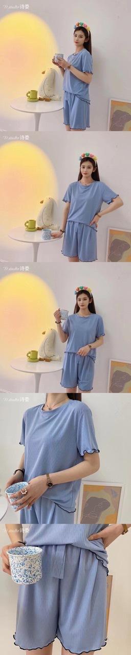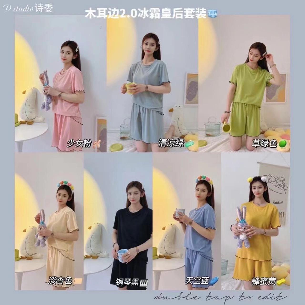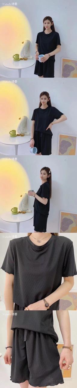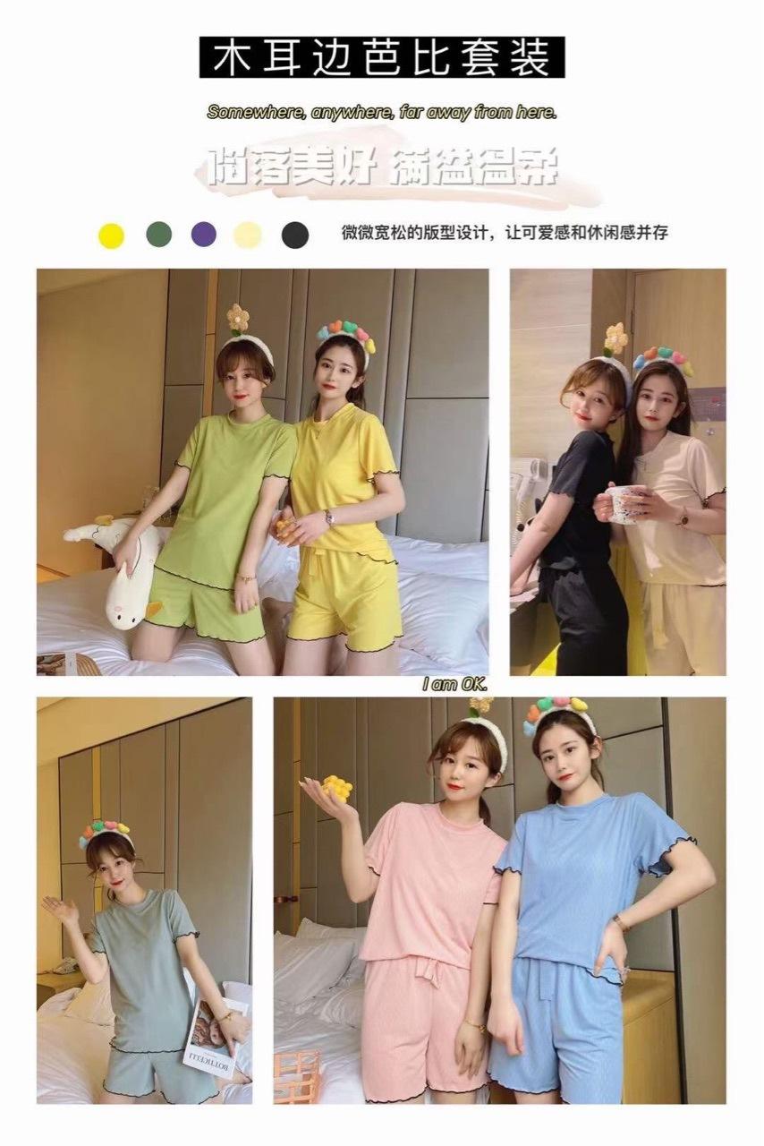 2021 Oreja de Madera para Mujer Manga Corta Shorts Traje Color Sólido Pantalones de Pierna Ancha Hogar Dos Piezas Verano Nuevo