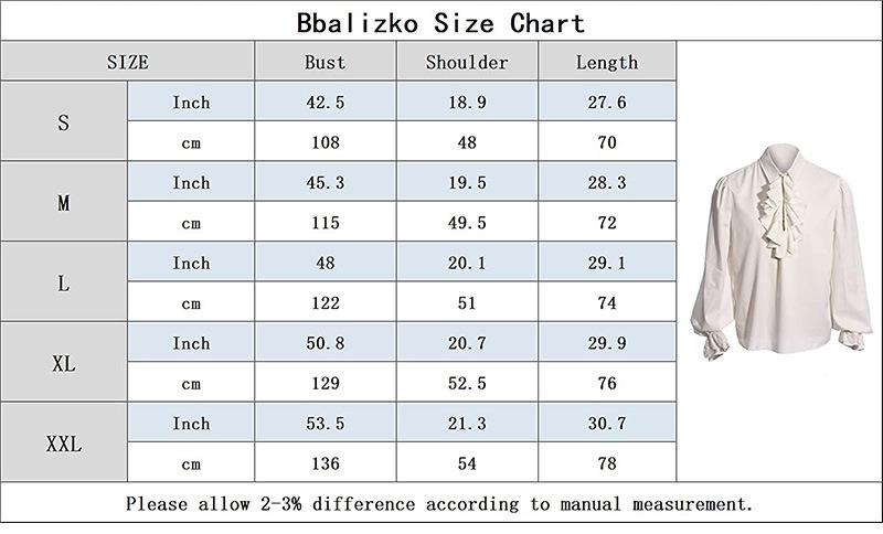 Camisa medieval europea y americana renacentista con volantes de manga larga, disfraz de Halloween, abrigo de rendimiento, interior pirata multicolor
