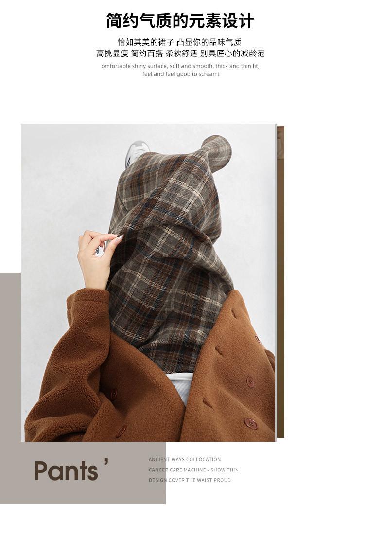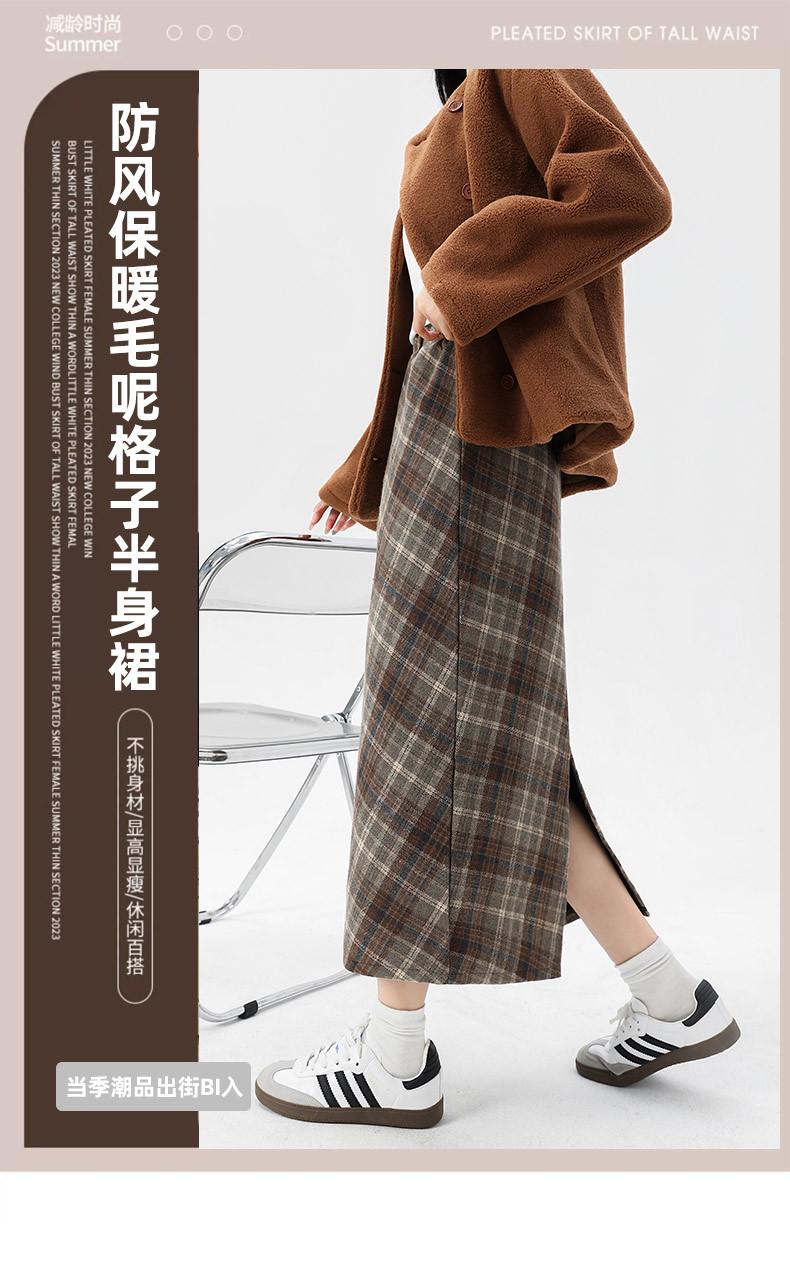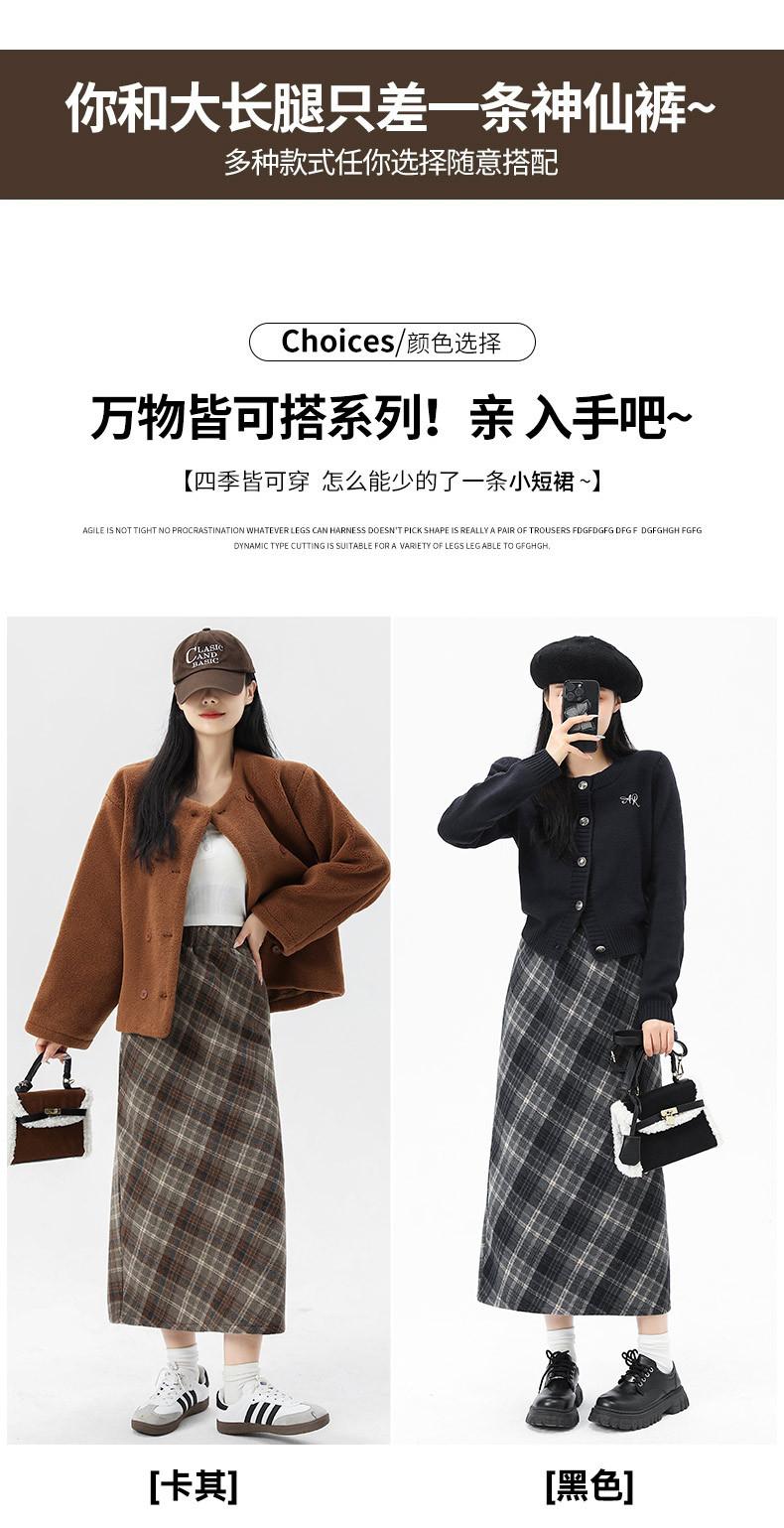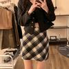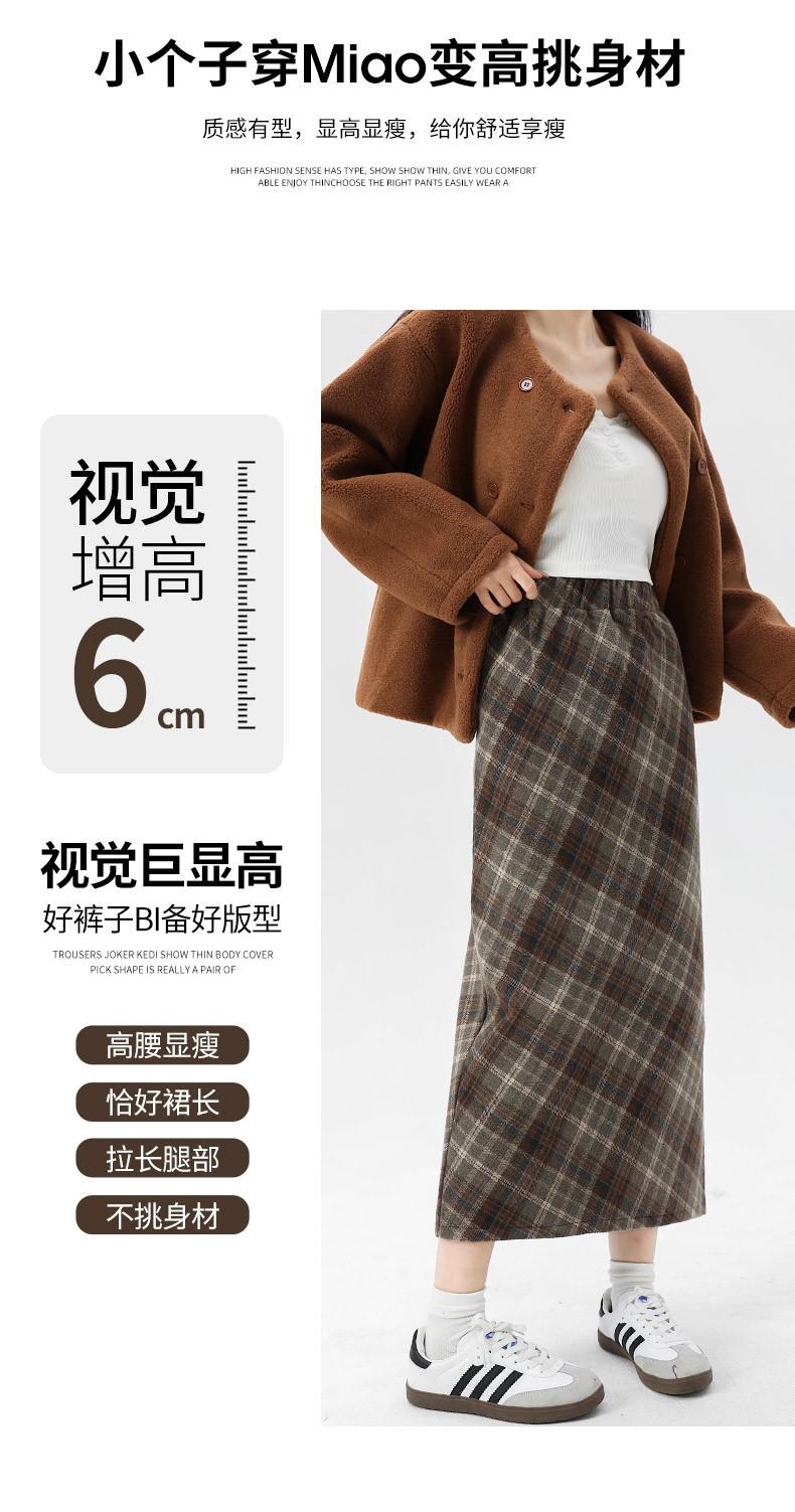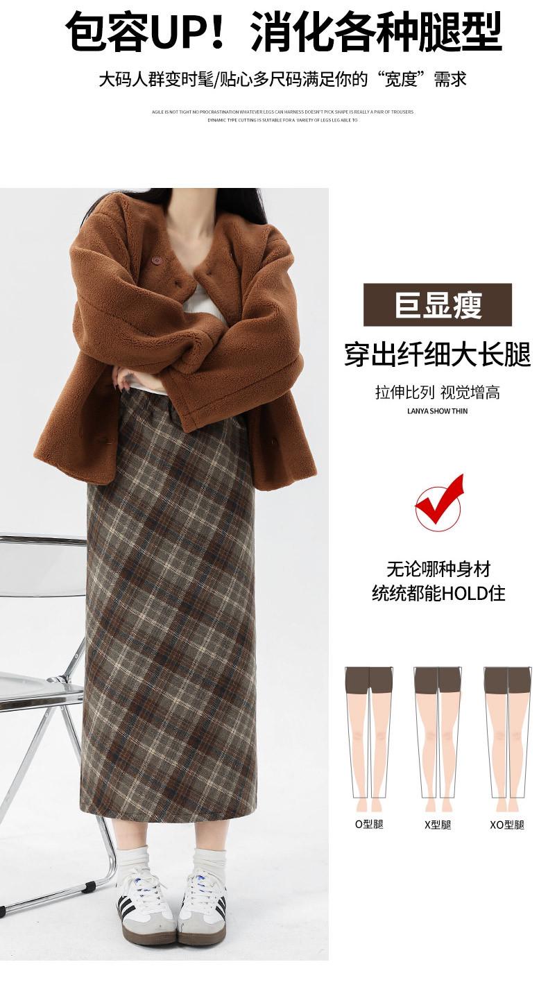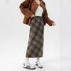 Falda a cuadros retro estilo americano para mujer, de talla grande, gordita, de lana, de longitud media, en forma de A, para otoño e invierno