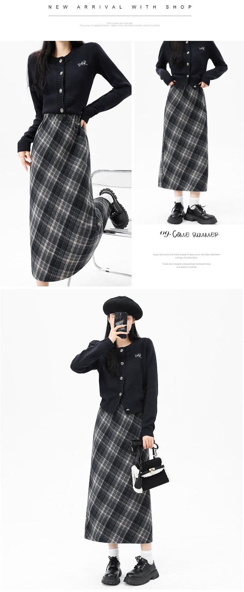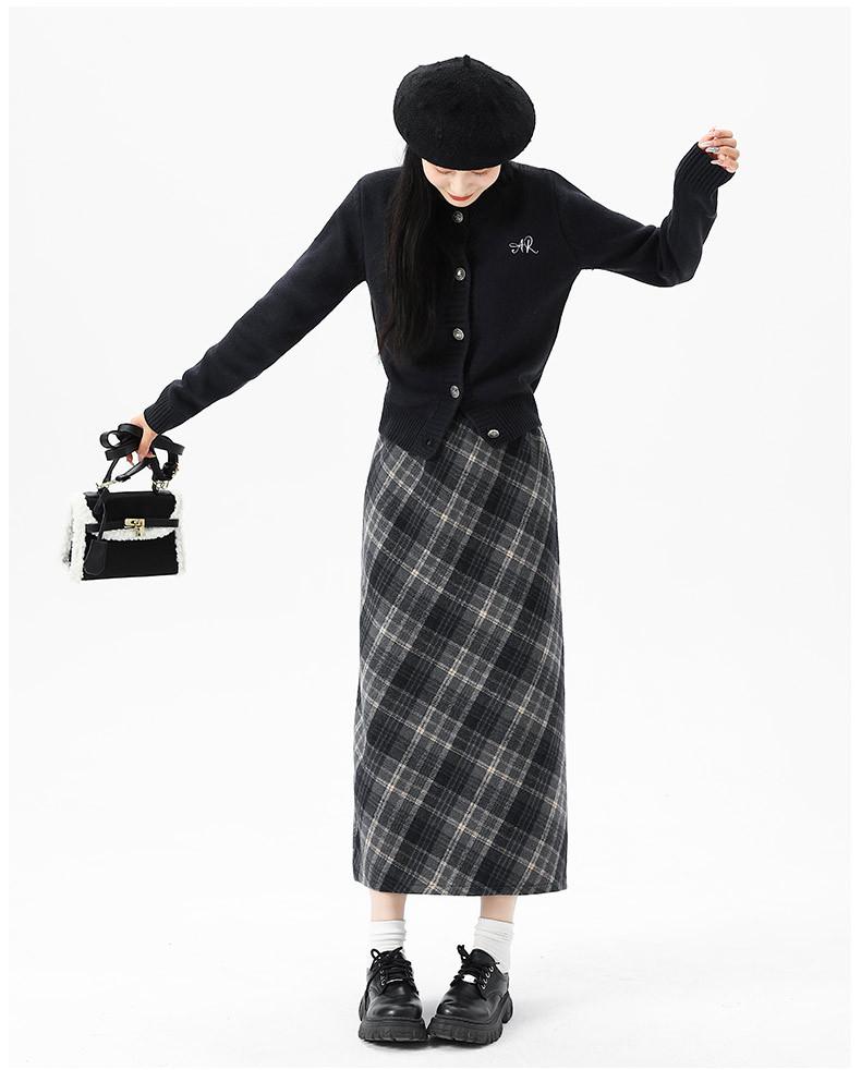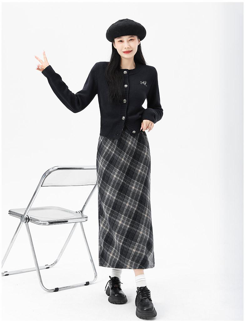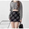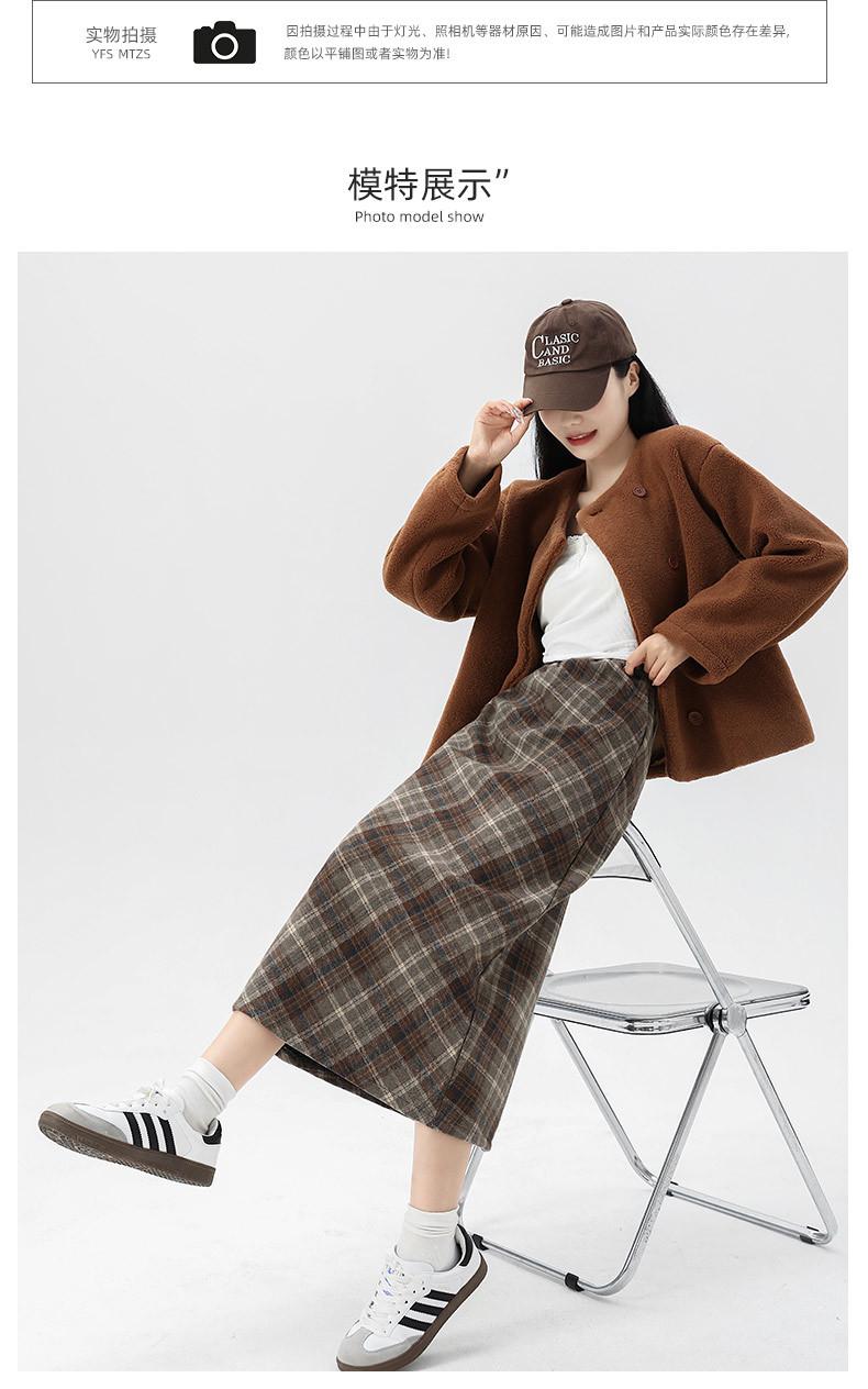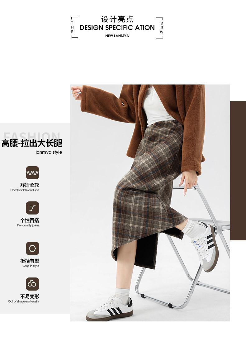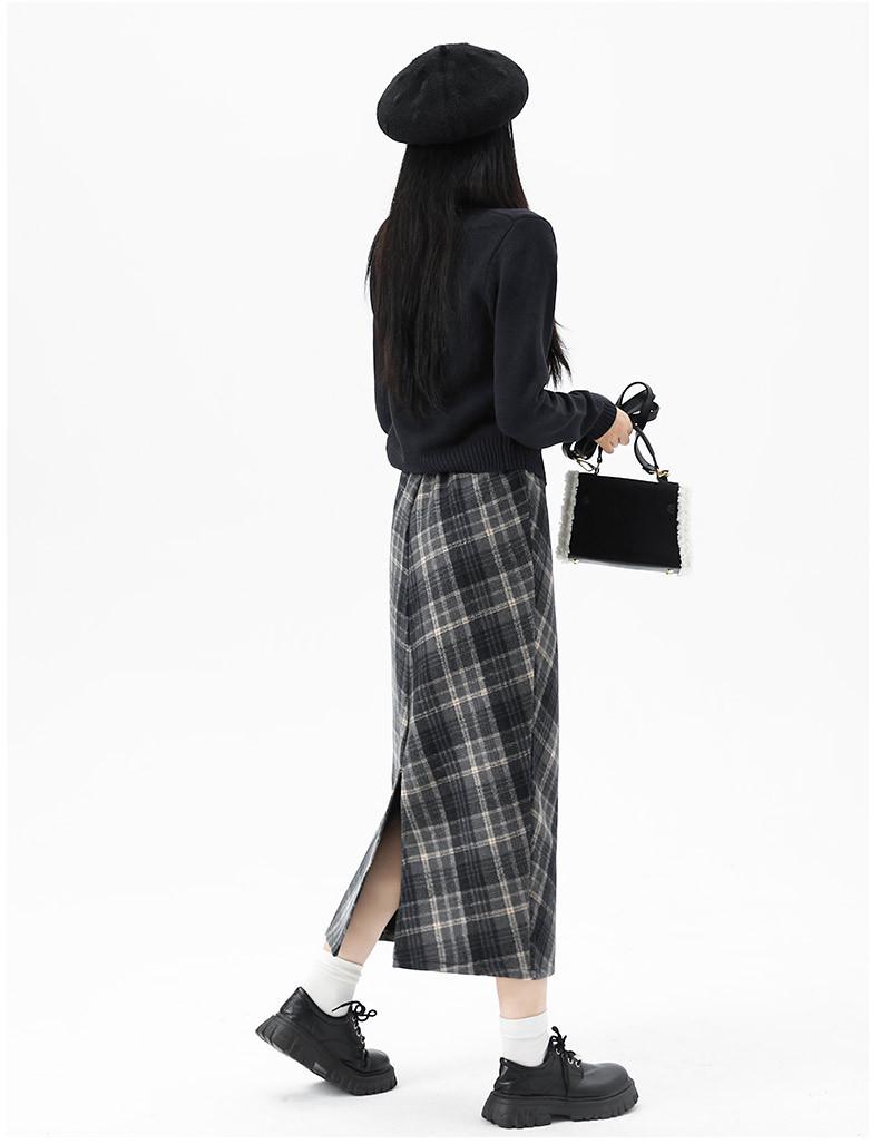 Falda a cuadros retro estilo americano para mujer, de talla grande, gordita, de lana, de longitud media, en forma de A, para otoño e invierno