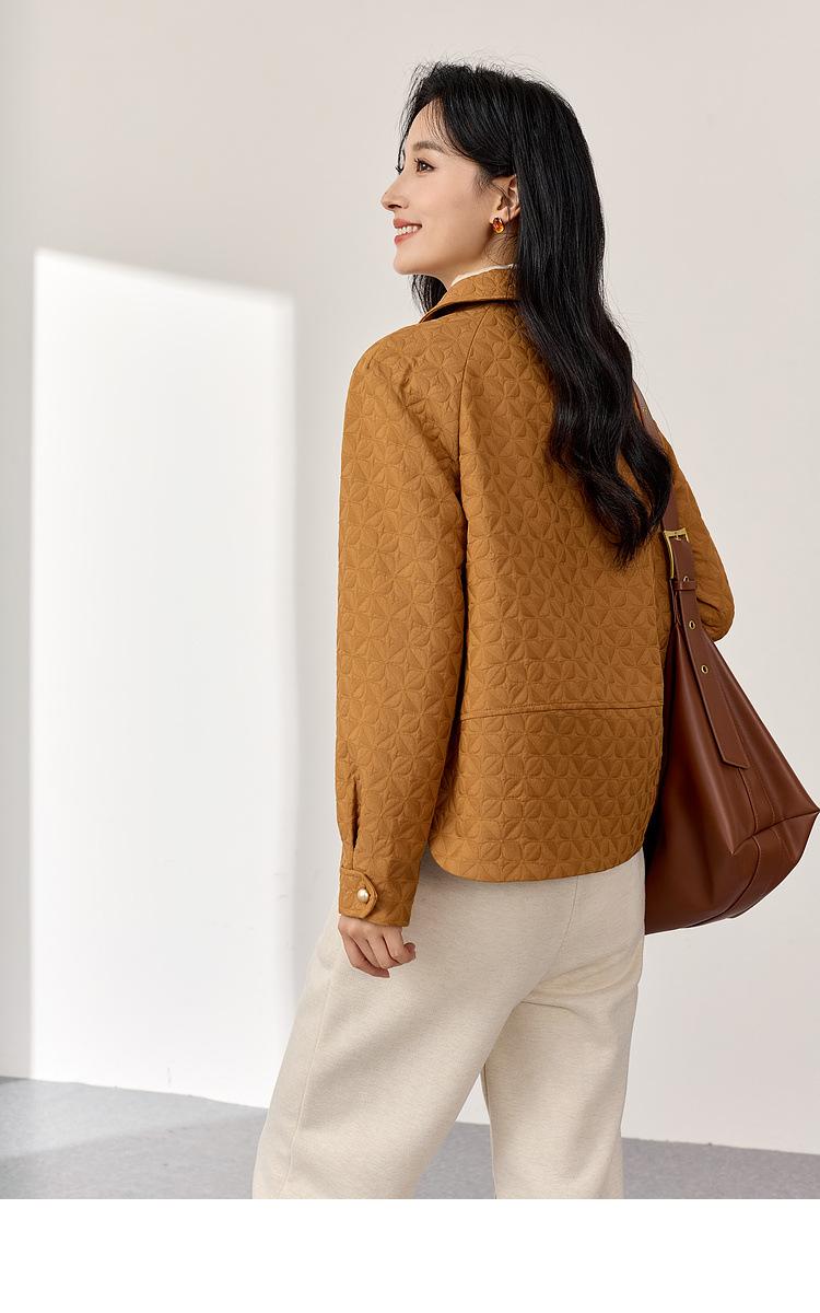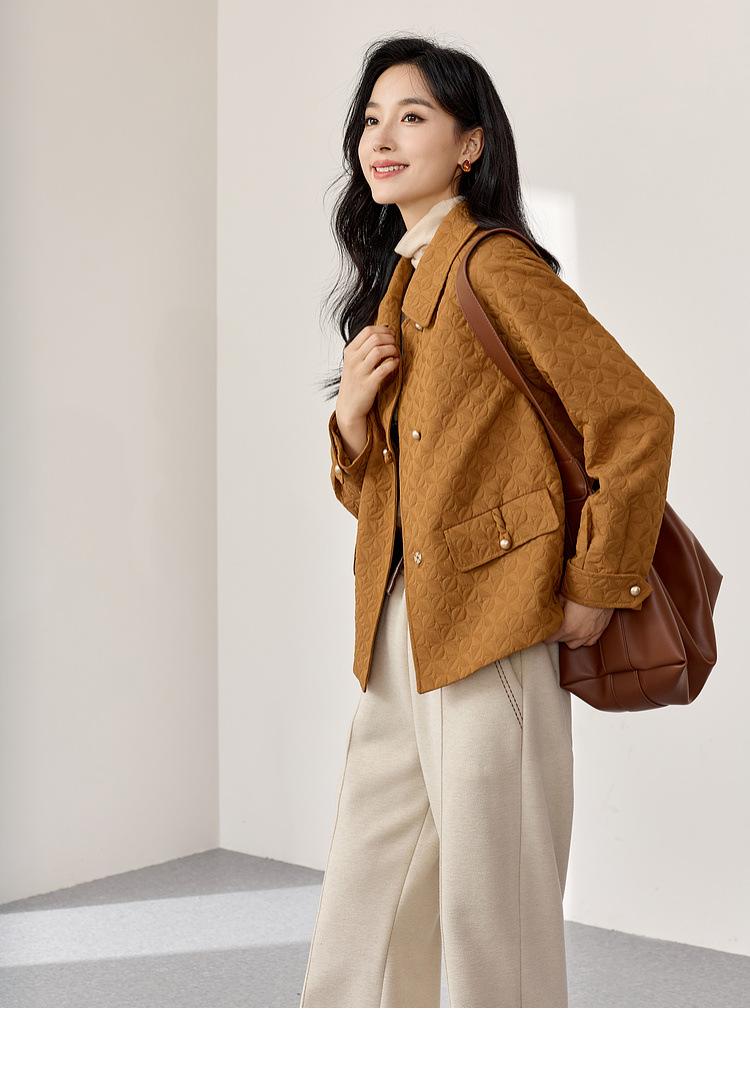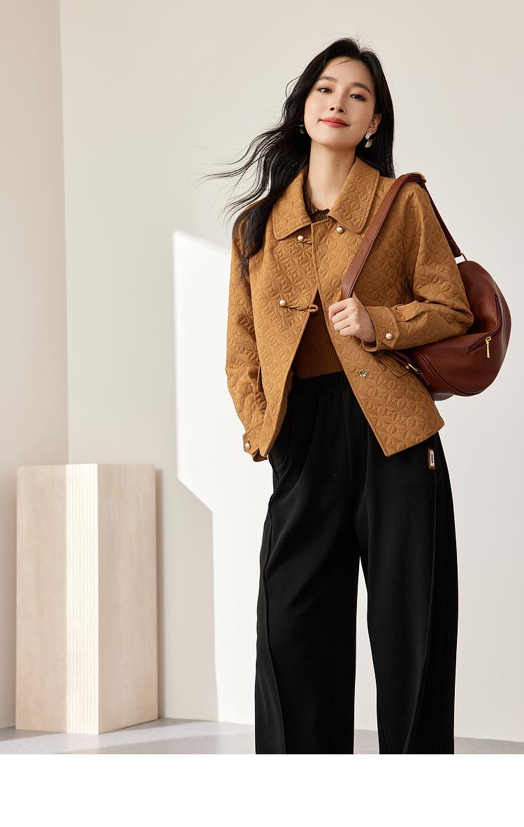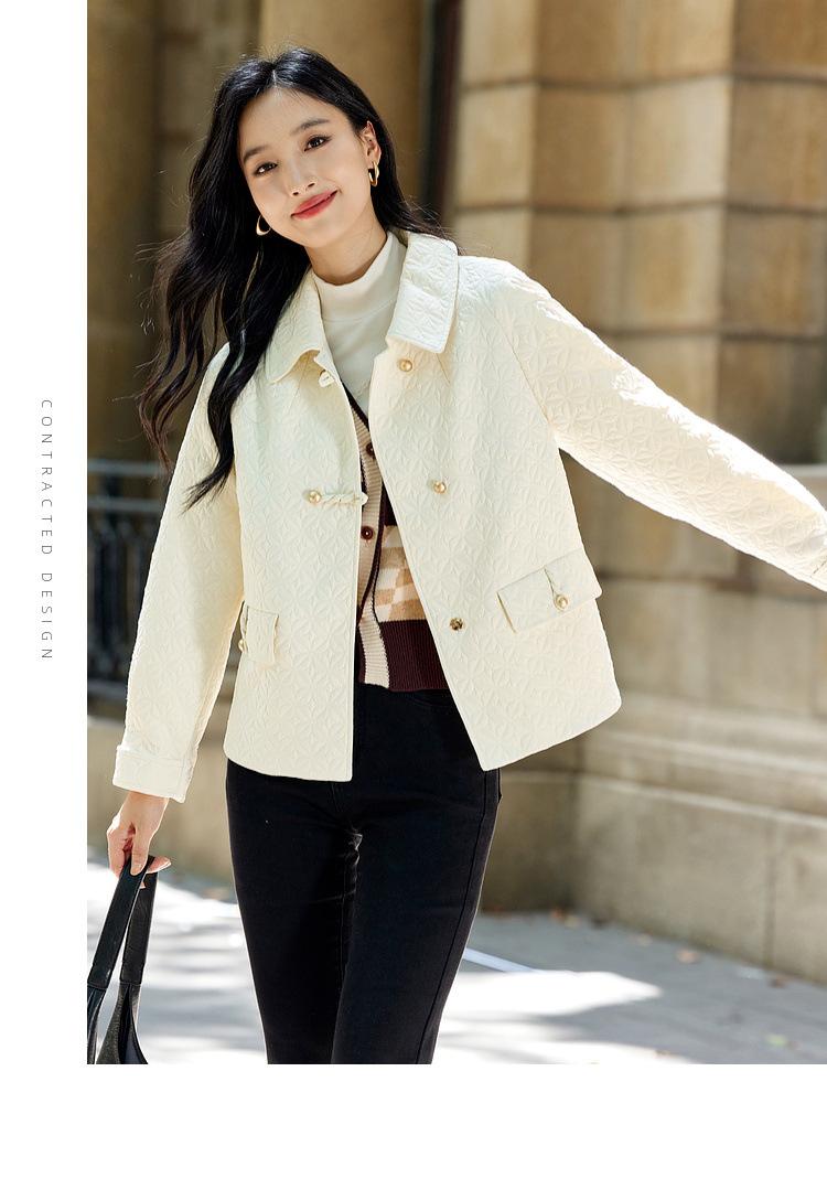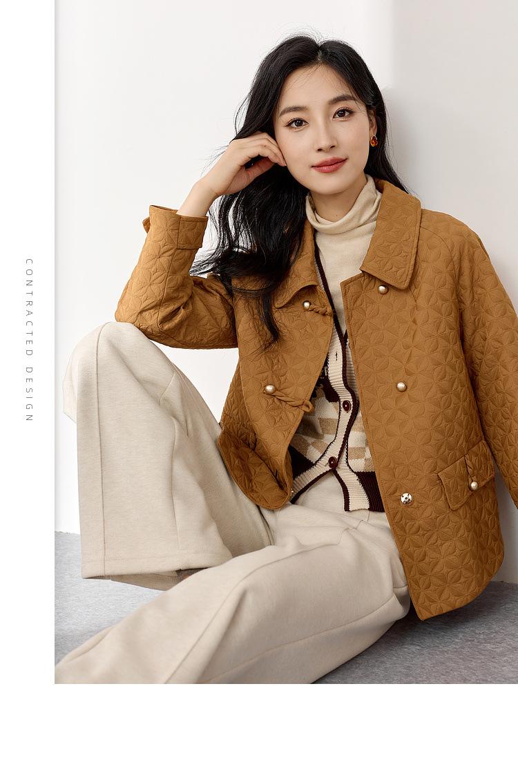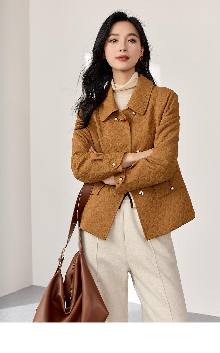Abrigo corto Zhen Xi de manga larga con solapa y acolchado de jacquard para mujer, top informal recto a la moda WP630
