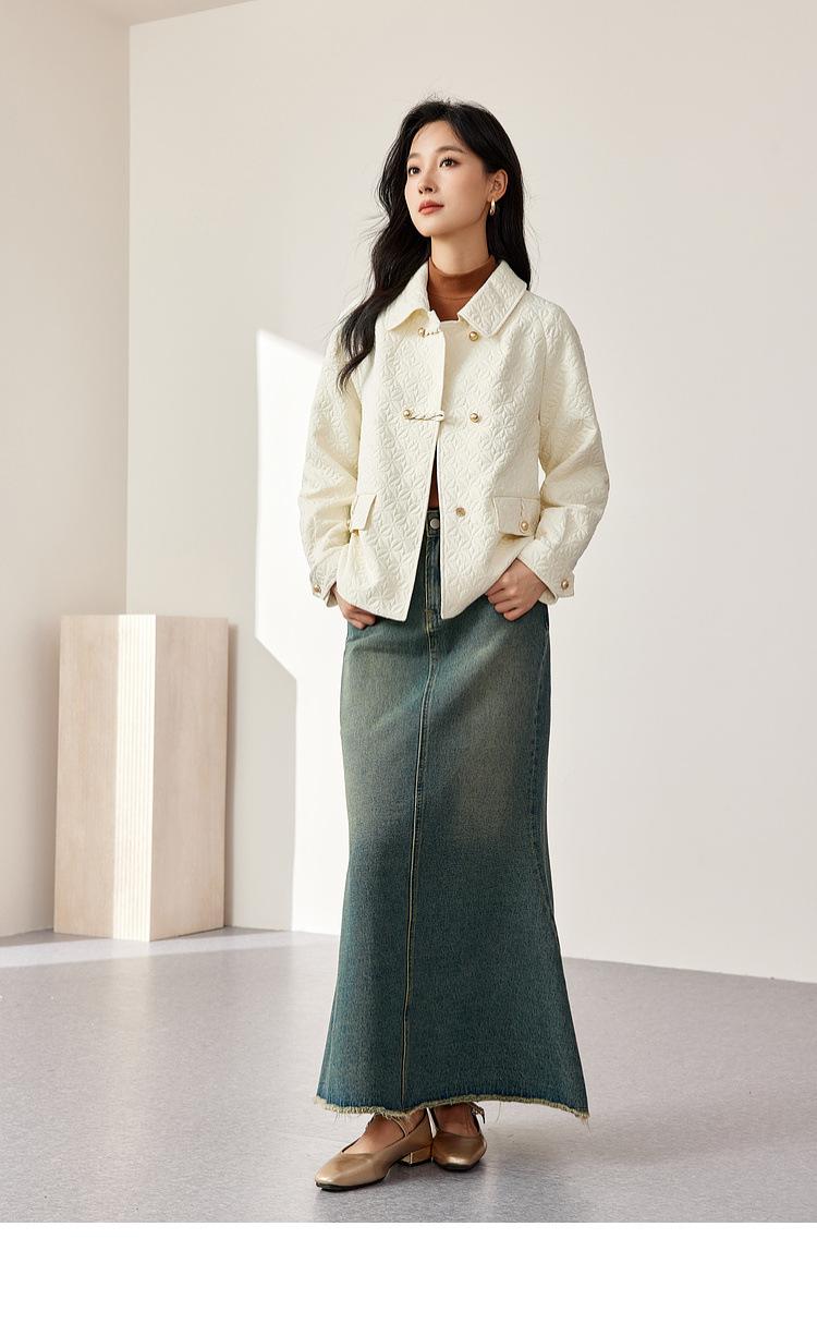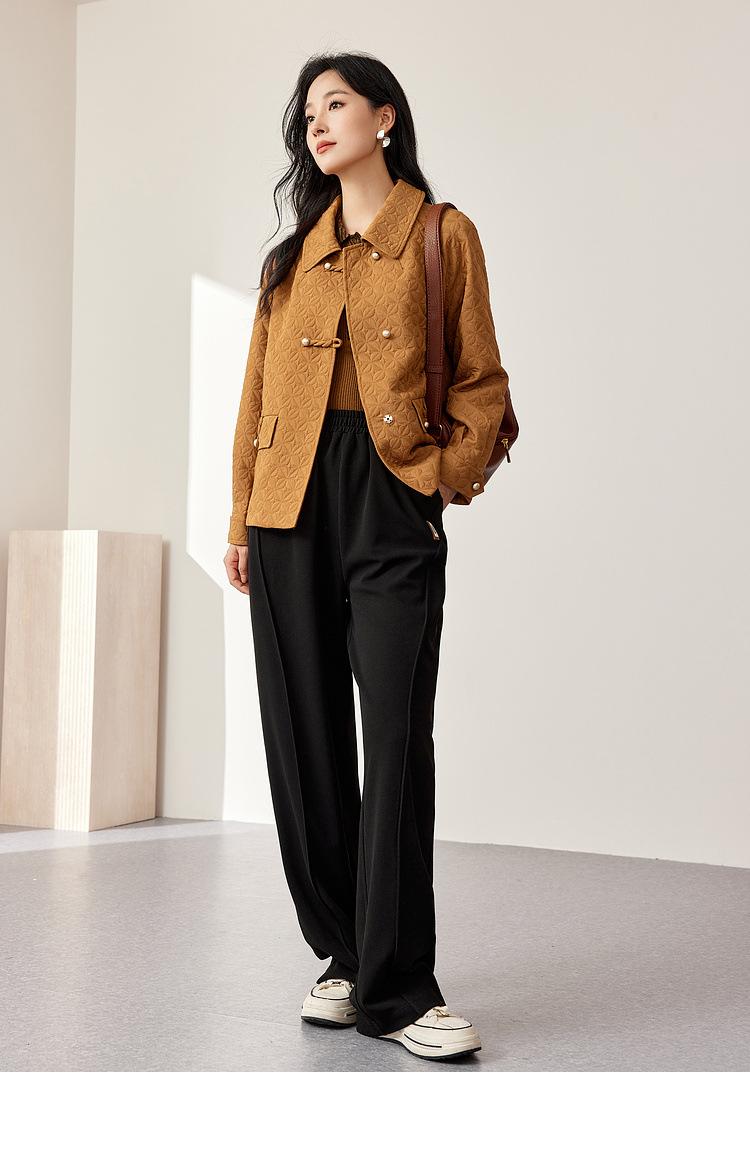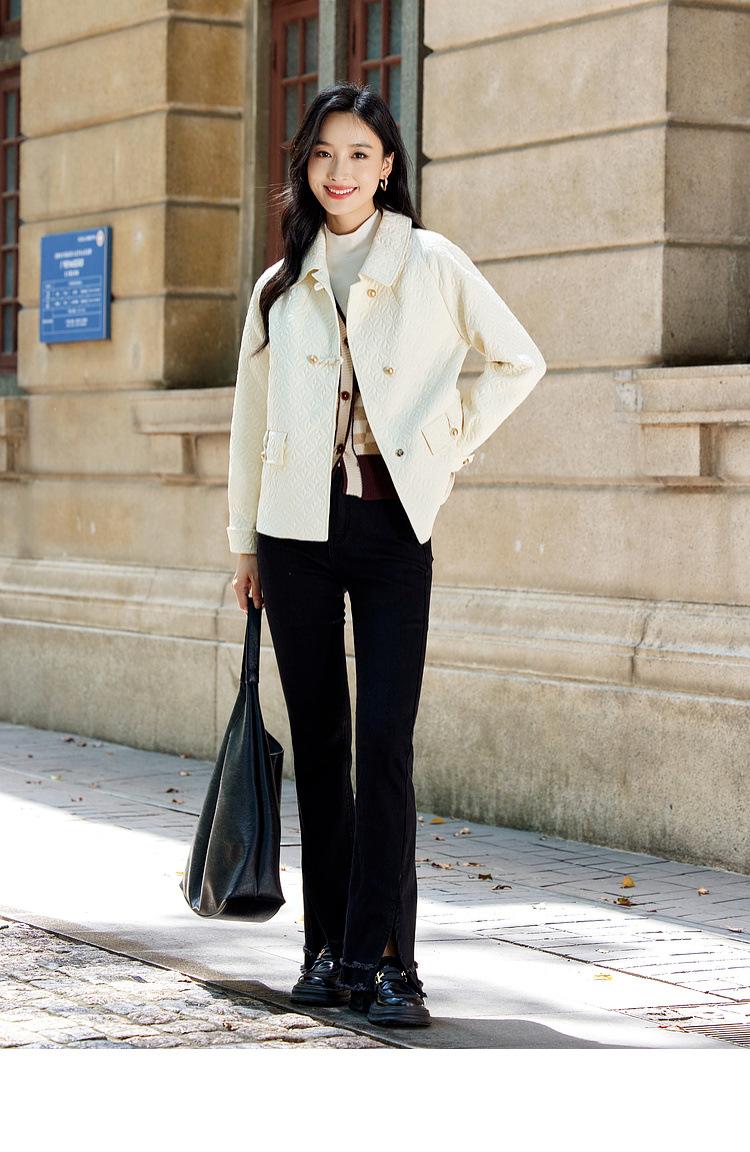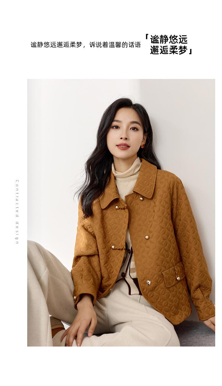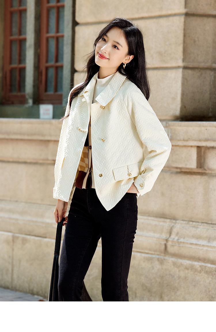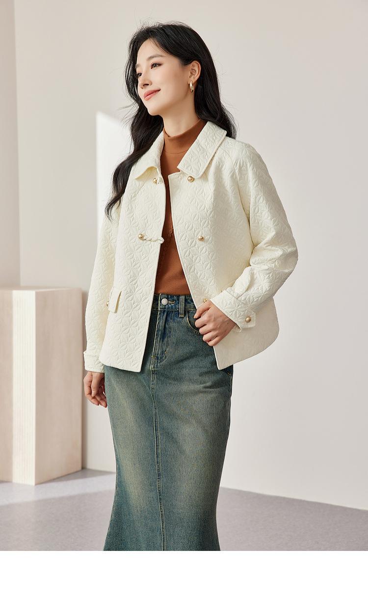 Abrigo corto Zhen Xi de manga larga con solapa y acolchado de jacquard para mujer, top informal recto a la moda WP630