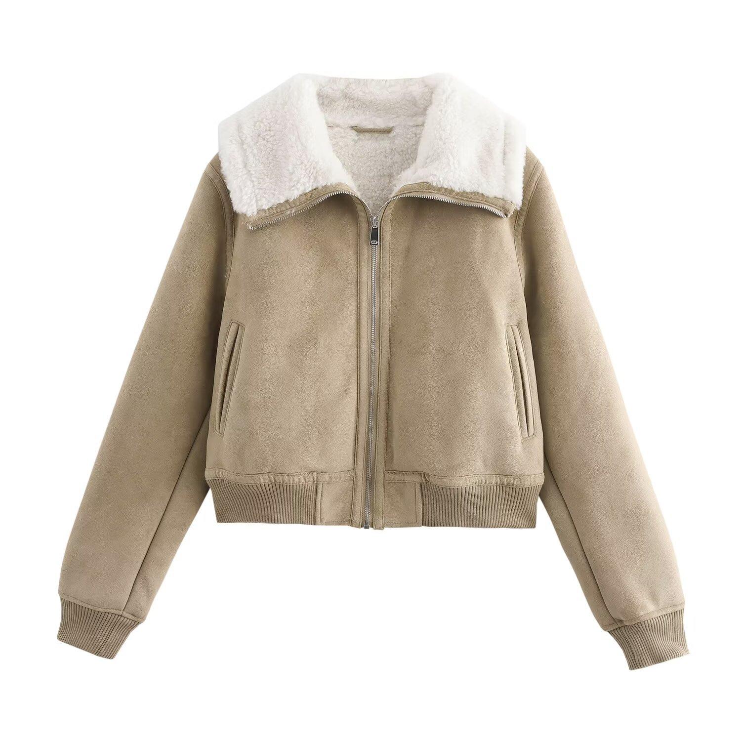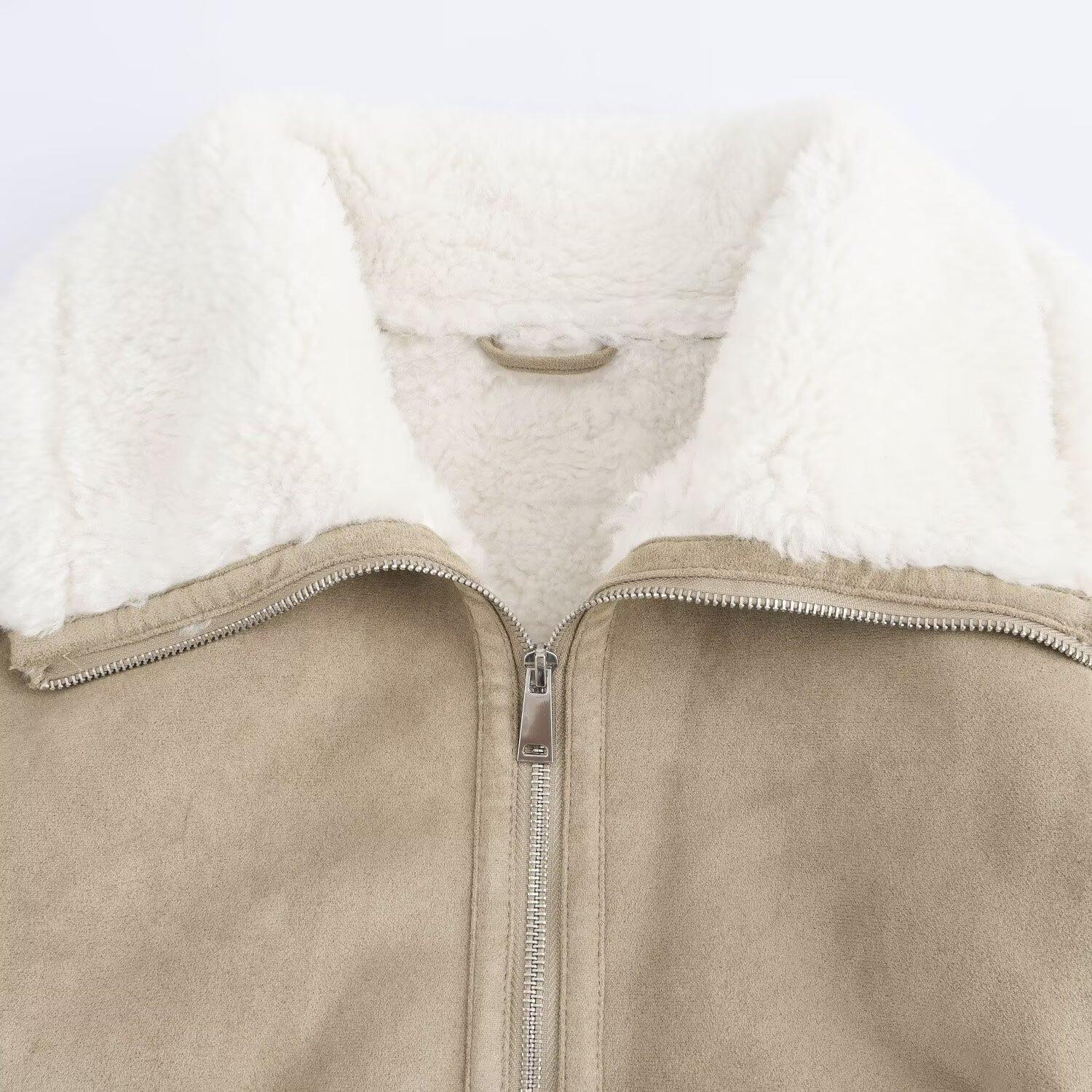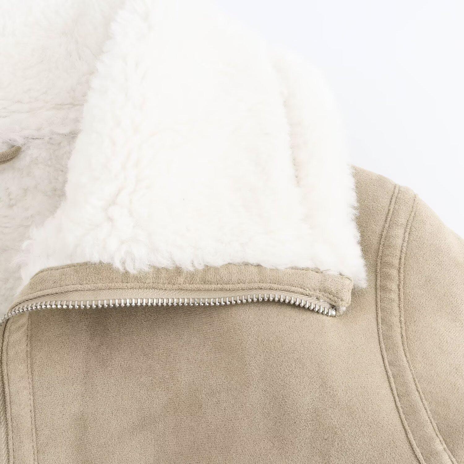 Ropa de mujer de estilo europeo y americano transfronteriza 2024 nueva piel integrada dobladillo acanalado forro polar de doble cara chaqueta abrigo de lana de cordero