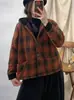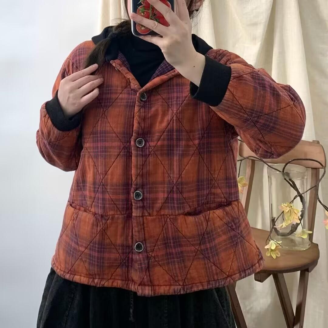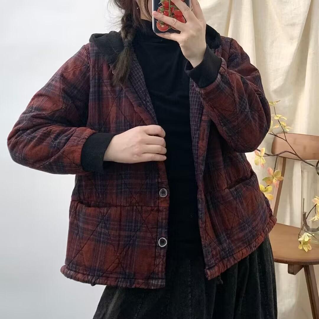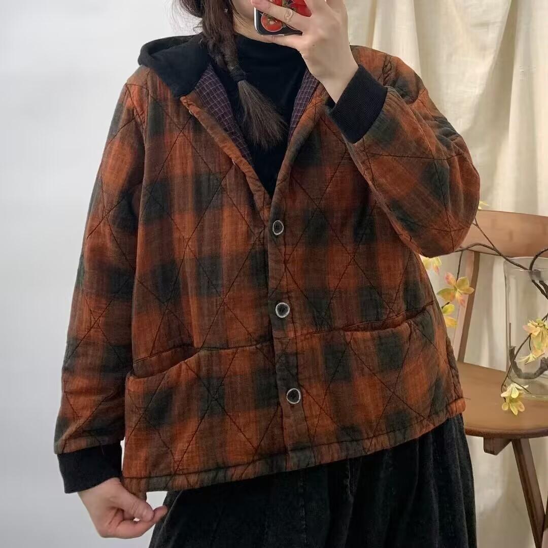 Chamarra Acolchada de Algodón con Capucha para Mujer Invierno 2024 Nuevo Color Salteado a Cuadros Traje de Béisbol Holgado Adelgazante Abrigo Vintage Grueso
