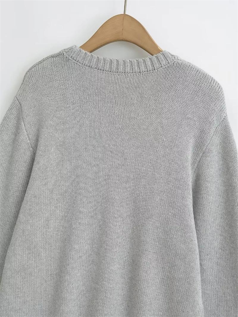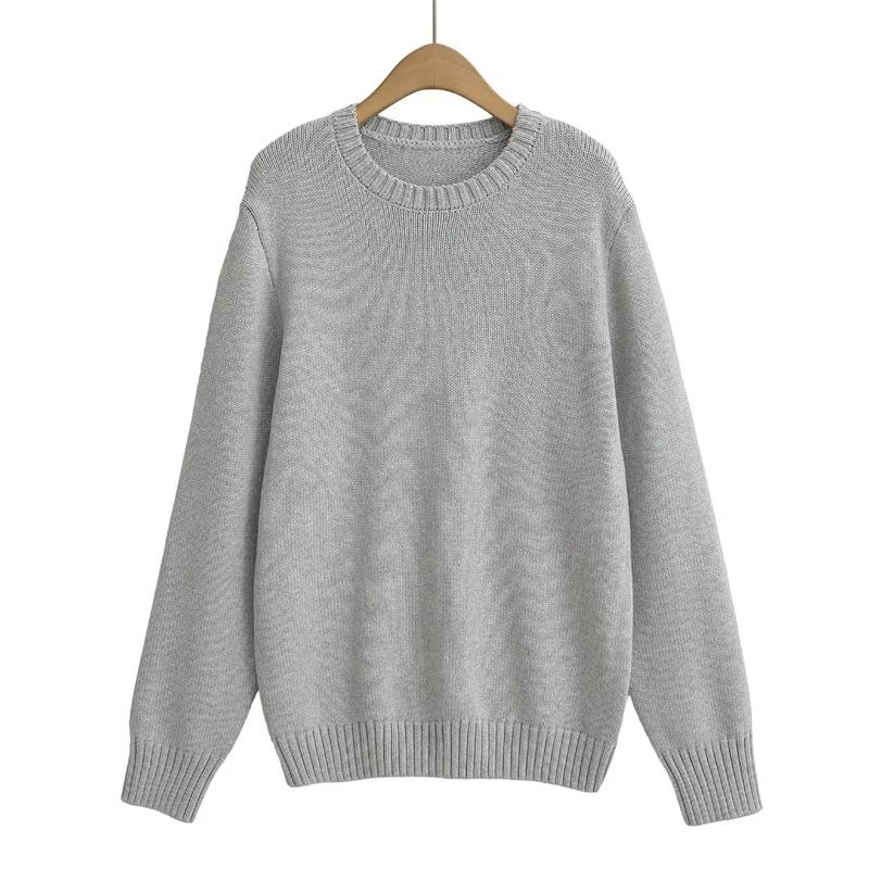 Suéter de cuello redondo para mujer, informal, cómodo, sencillo, de punto, de color sólido, para otoño e invierno