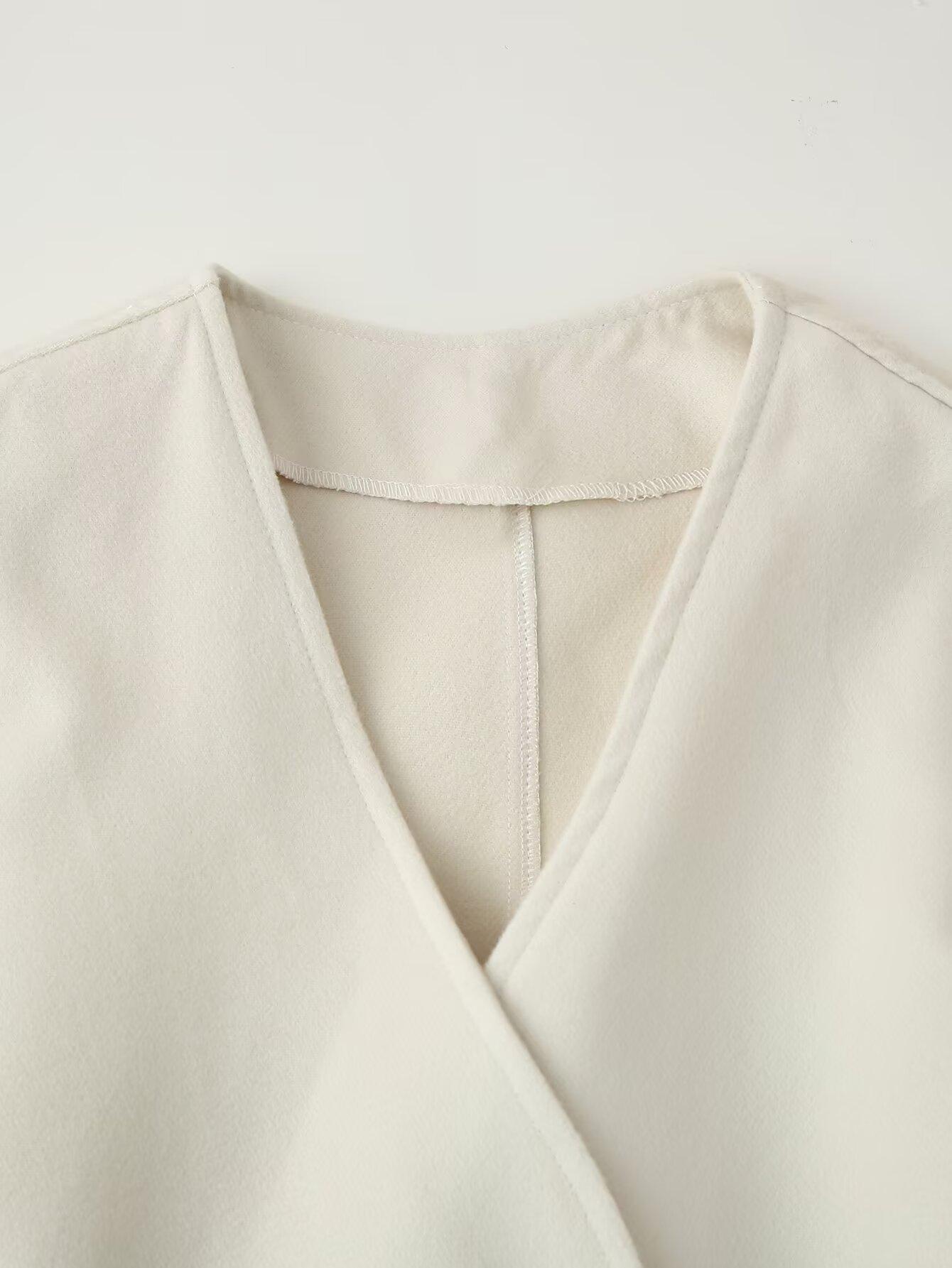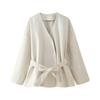 Amazon comercio exterior transfronterizo abrigo de tweed de doble cara para mujer europeo y americano otoño e invierno 2024 nuevo cinturón de moda callejera decorado