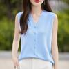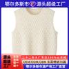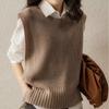 Chaleco vintage de cachemira con cuello redondo pequeño para mujer, estilo urbano, sin mangas, apilado, suéter elegante y grueso para otoño e invierno.