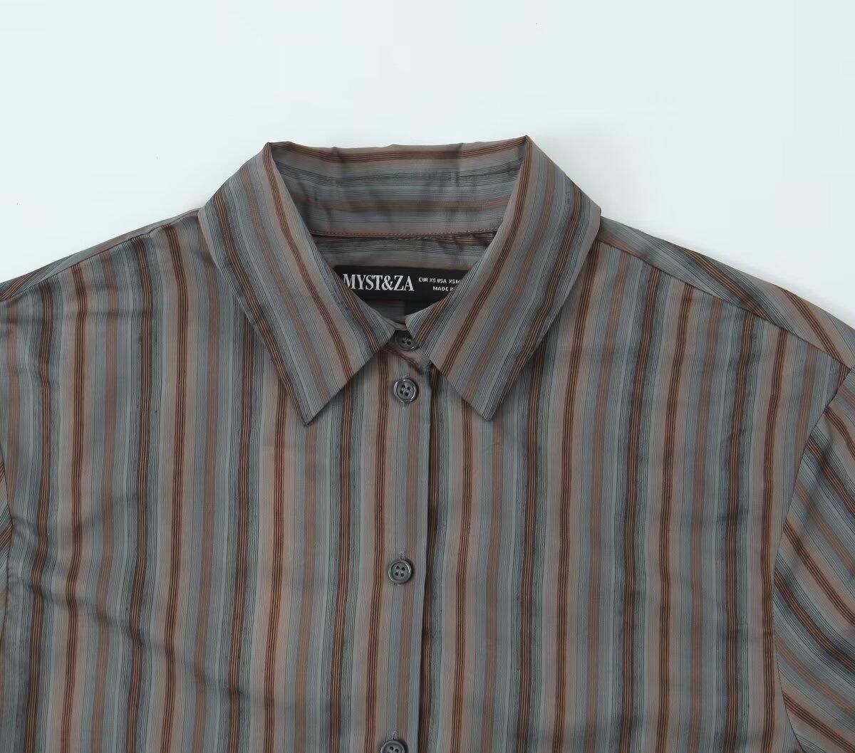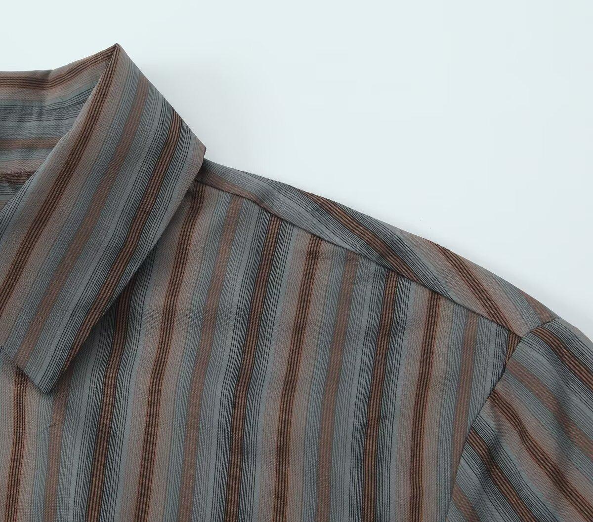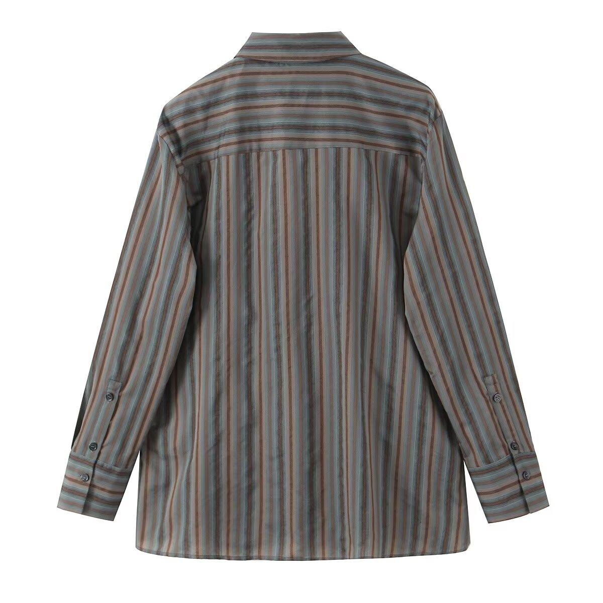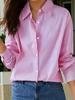 Ropa de Mujer Transfronteriza Europea y Americana al por Mayor 2024 Otoño Nuevo Camisas a Rayas Holgadas de Largo Medio de Manga Larga con Solapa para Mujer