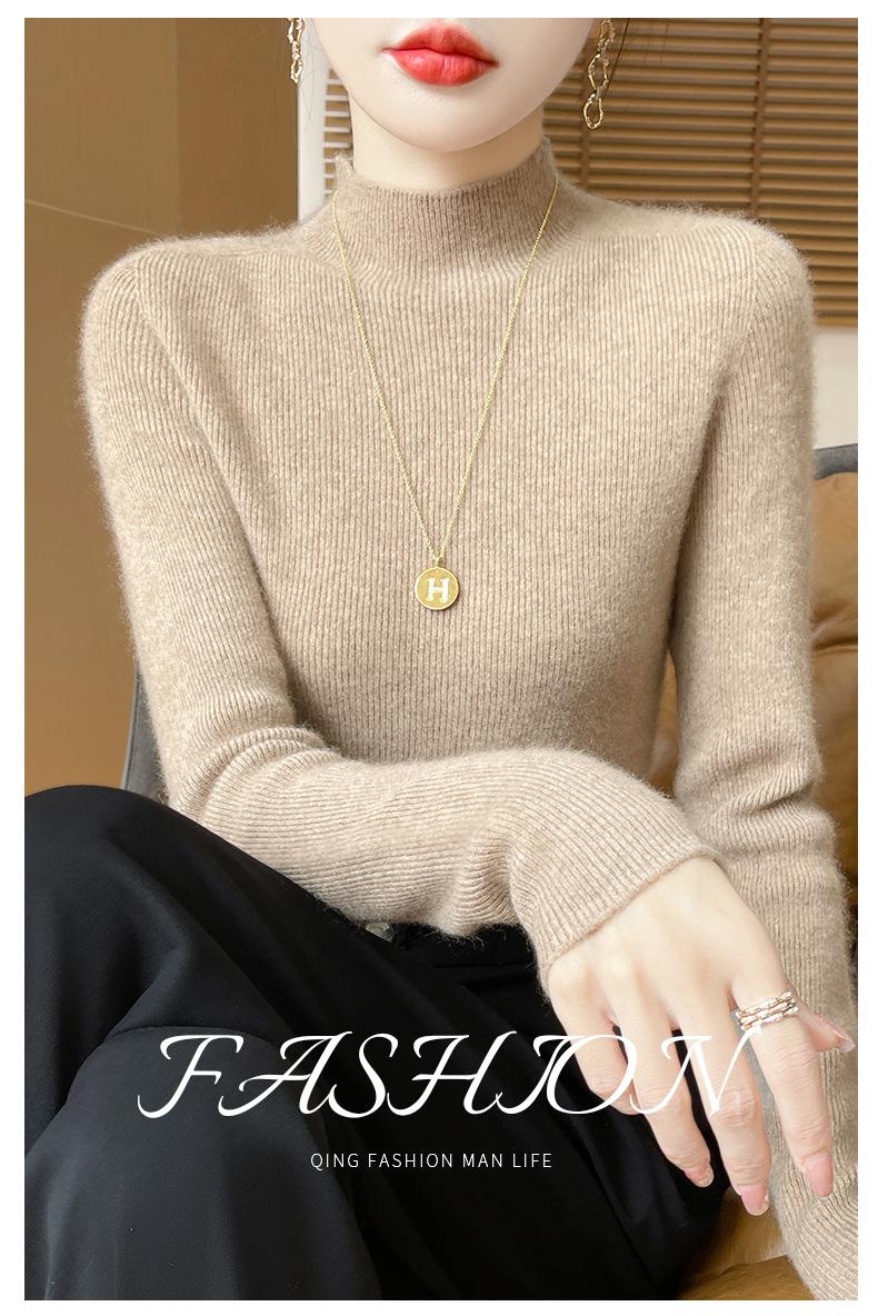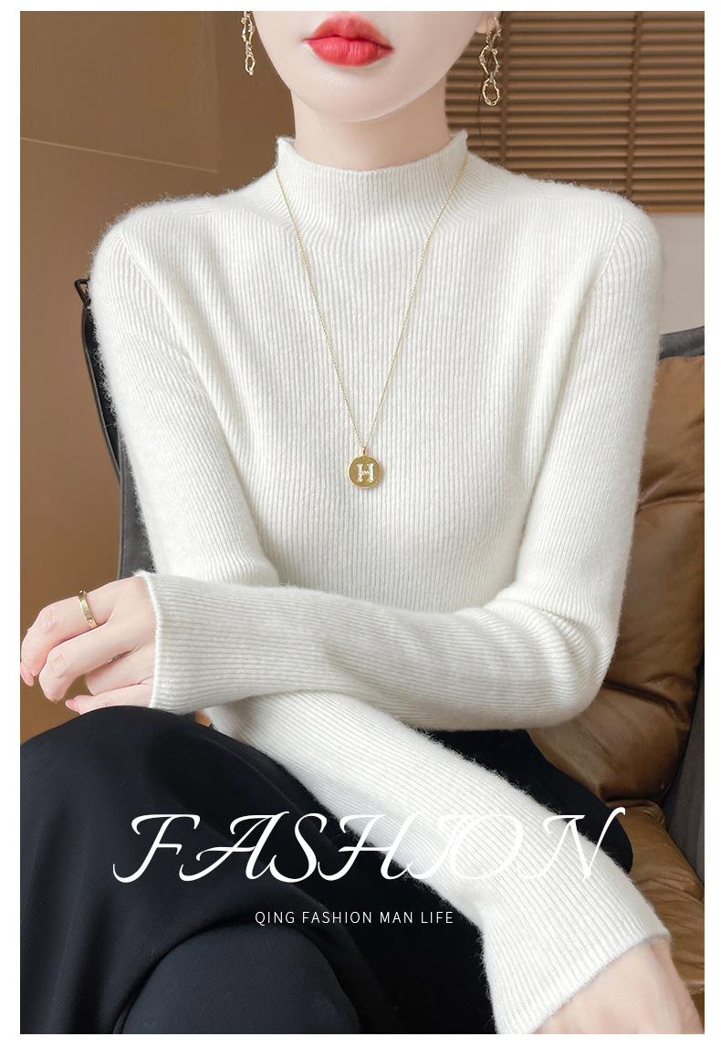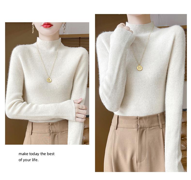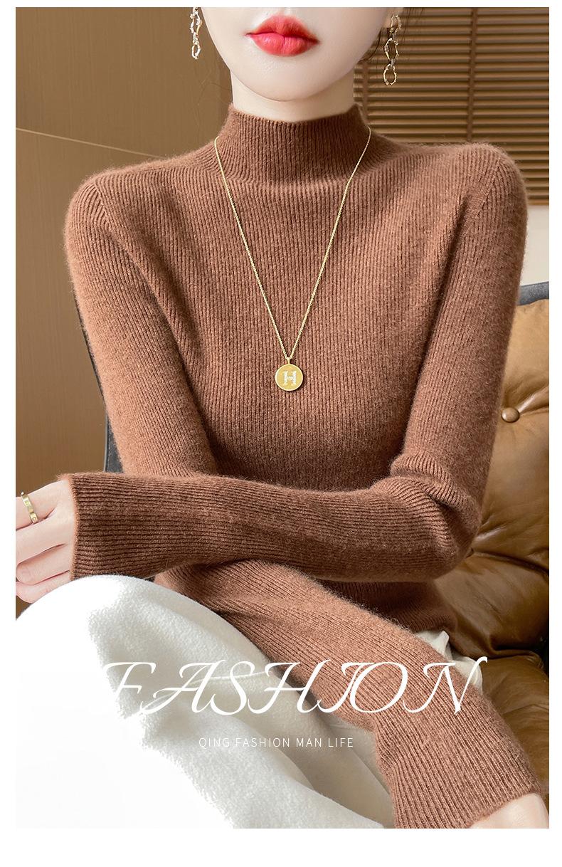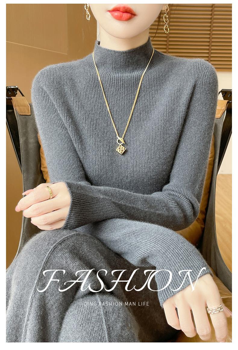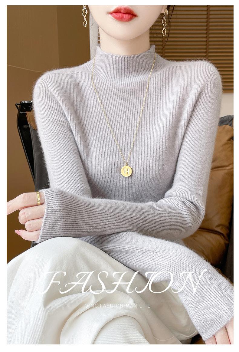Suéter de Cachemira 100% Puro de Cuello Alto Medio para Mujer Nuevo Suéter Pulóver de Manga Larga de Color Puro para Mujer Suéter de Fondo de Cachemira para Mujer Otoño e Invierno